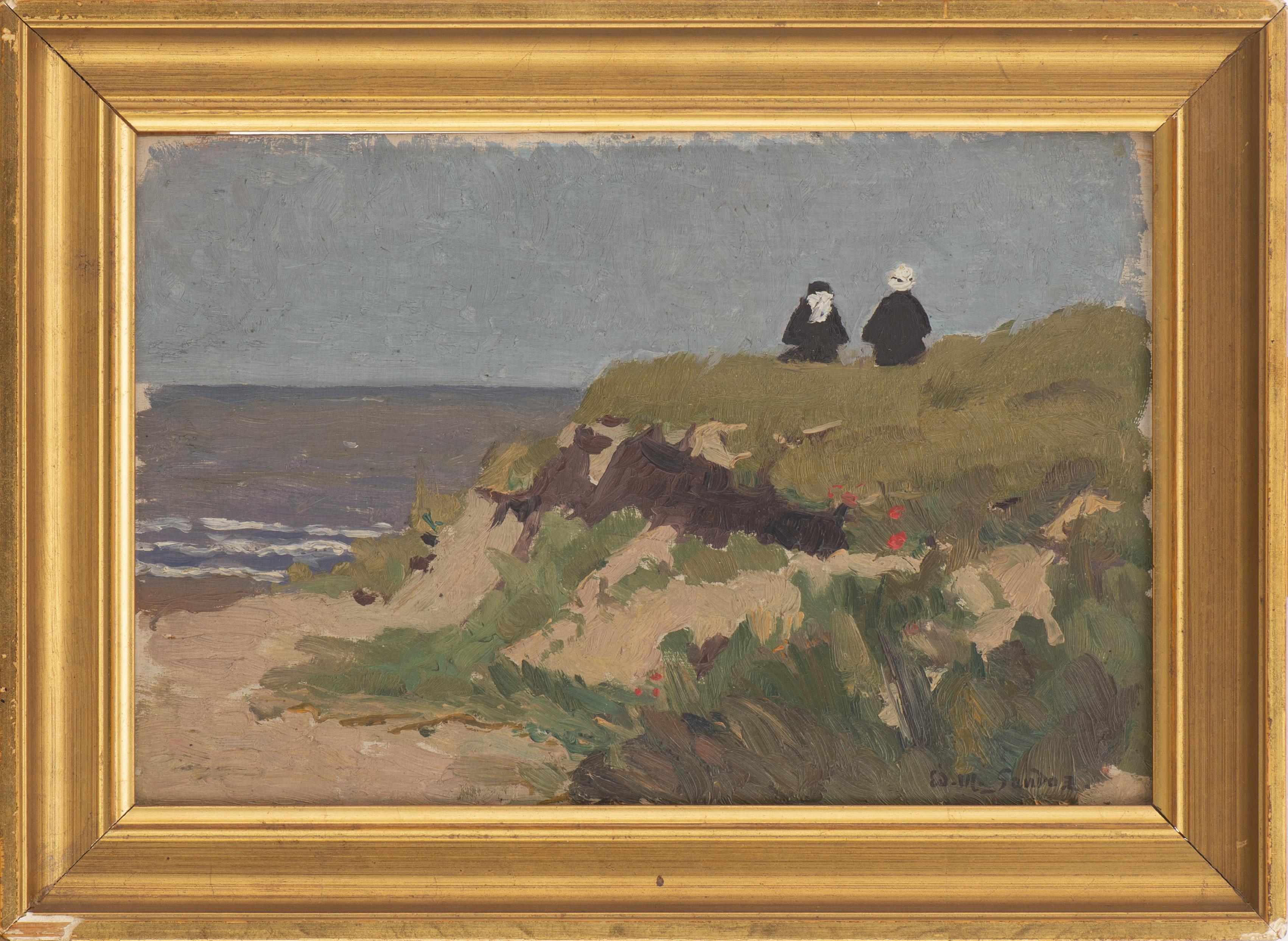 Edouard Marcel SANDOZ (1881-1971) "Deux personnages regardant la mer", huile sur bois sbd.