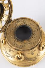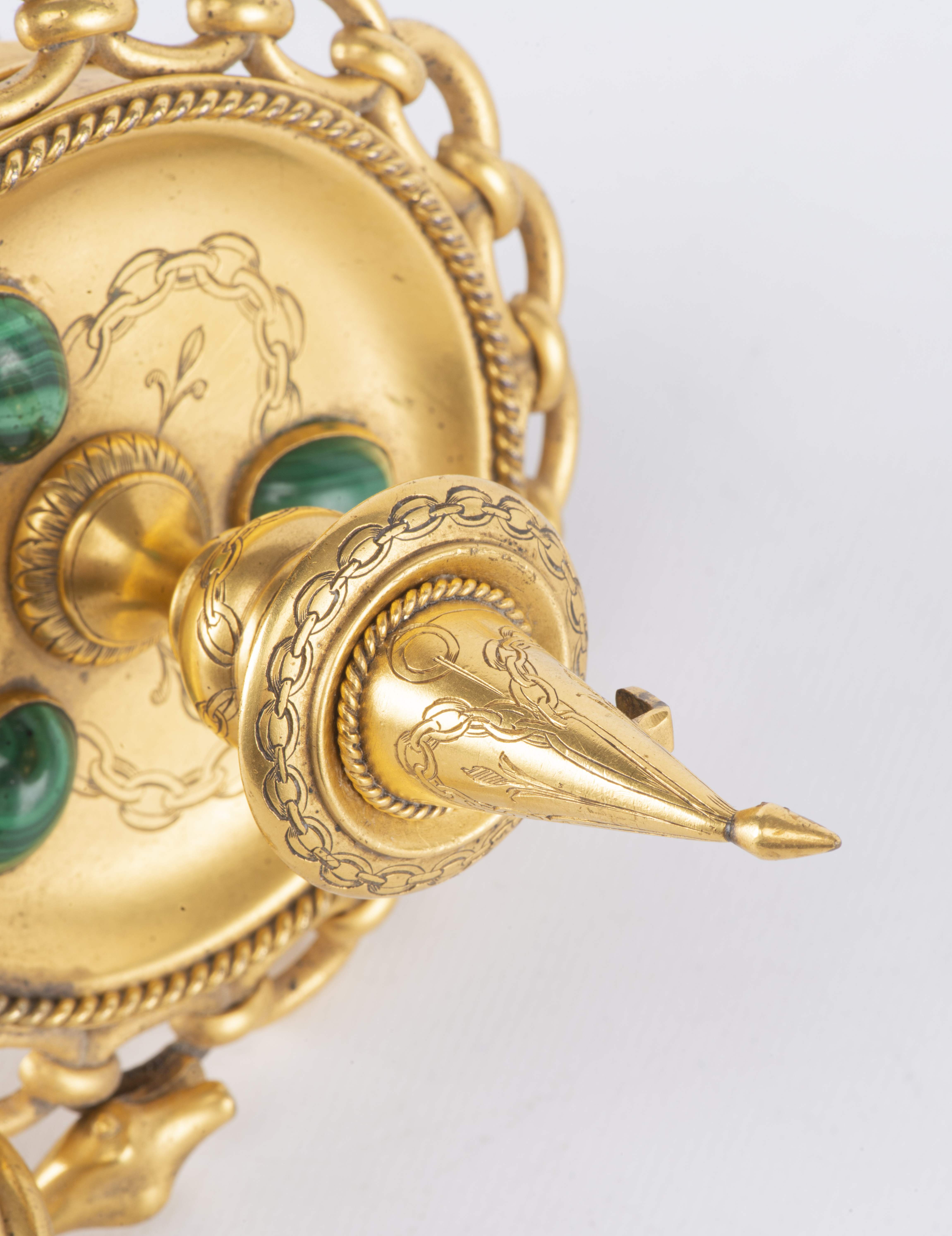 Encrier et bougeoir pour la cire à cacheter en bronze doré et malachite.