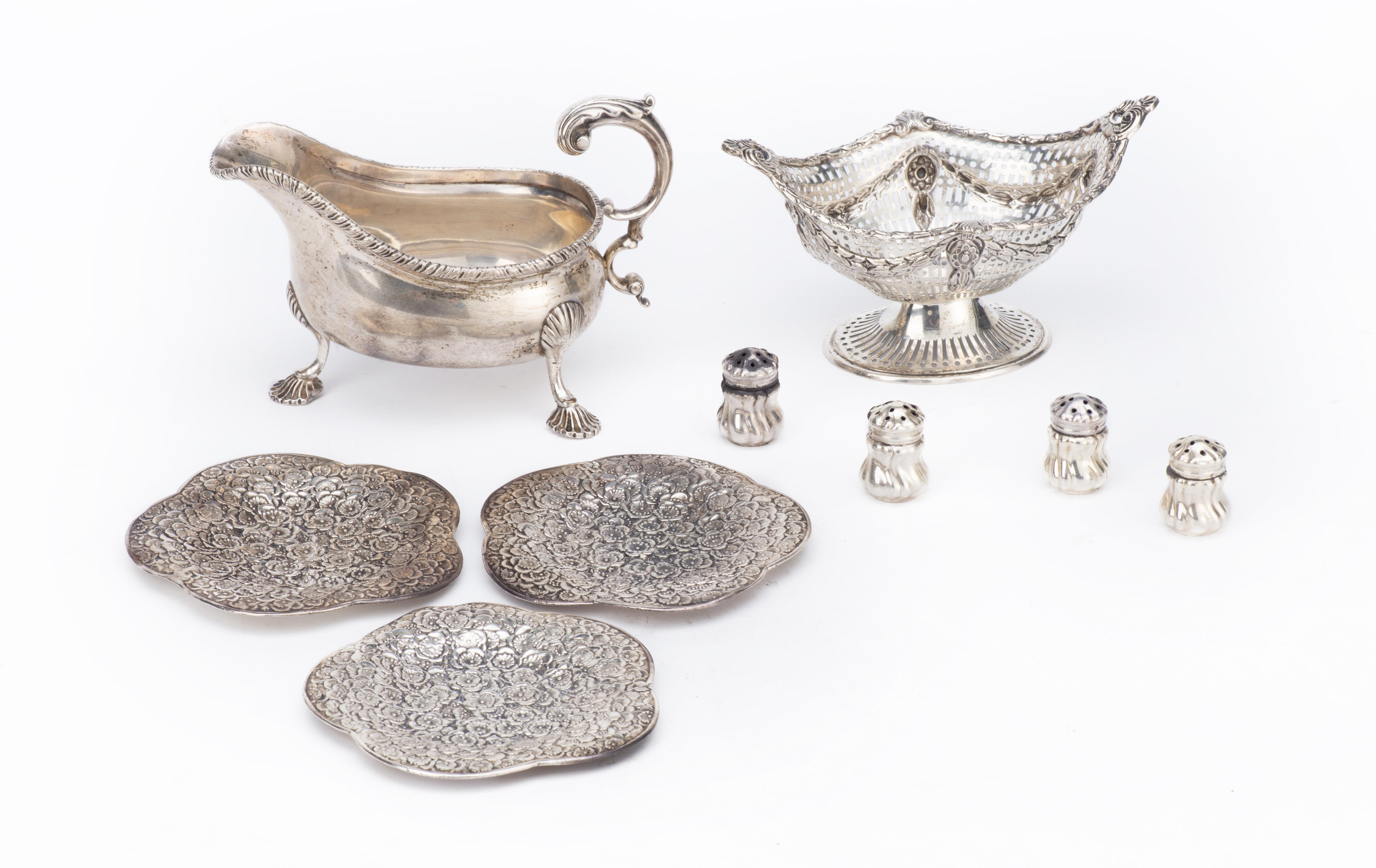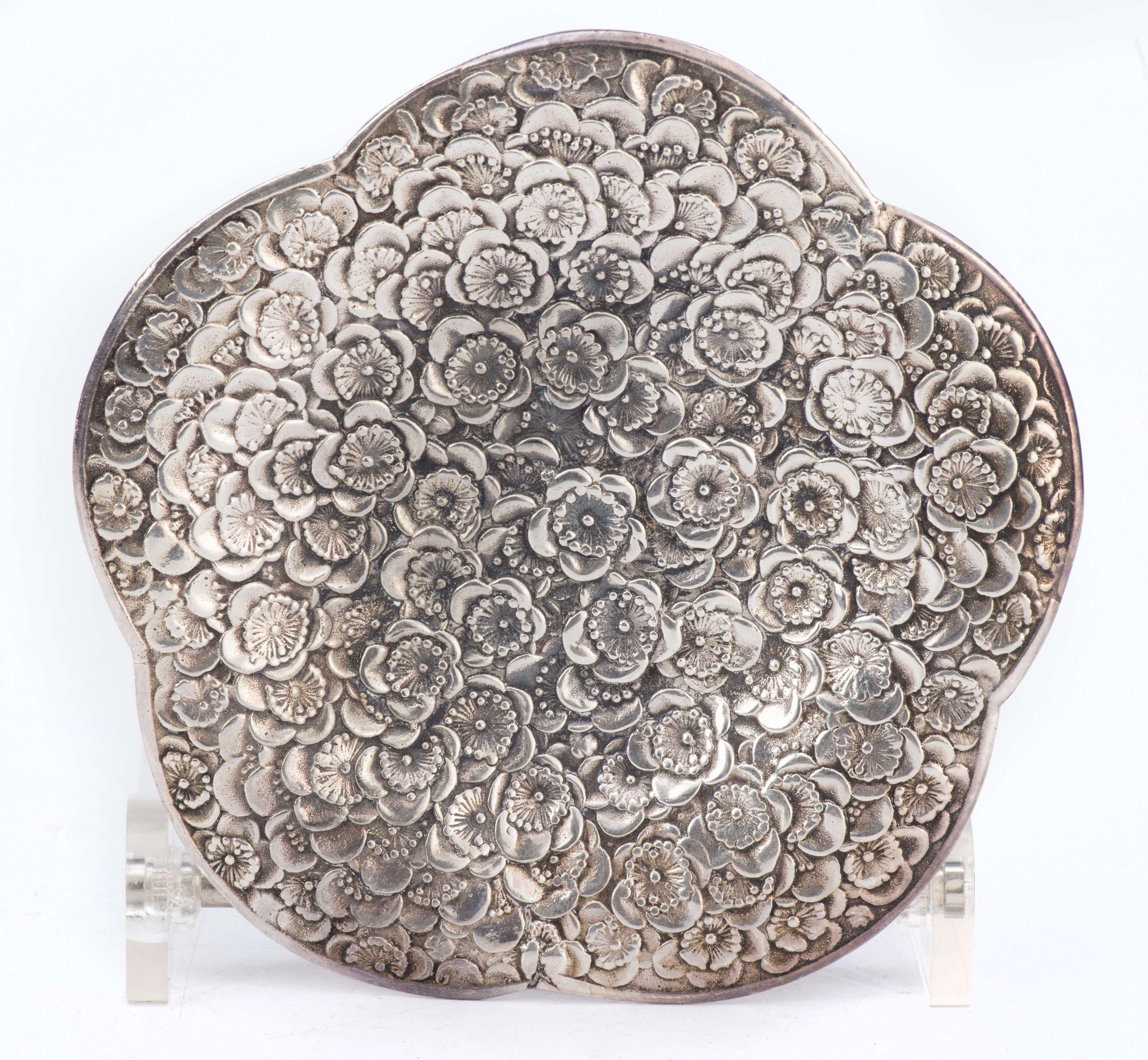 3 sous-tasses en argent .900 à décor de fleurs