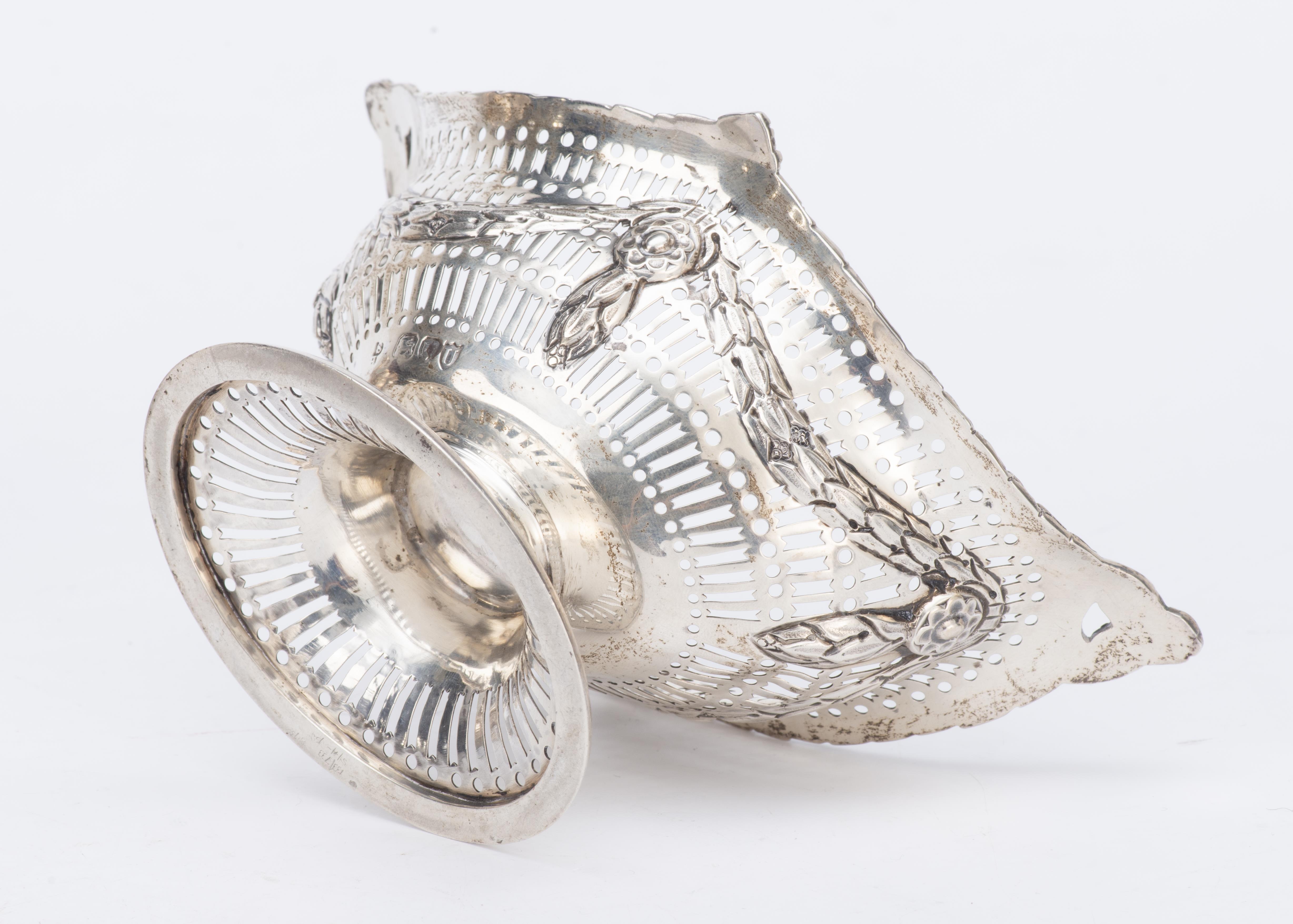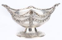 Panier à bonbons sur pied en argent sterling anglais à décor de ruban de laurier