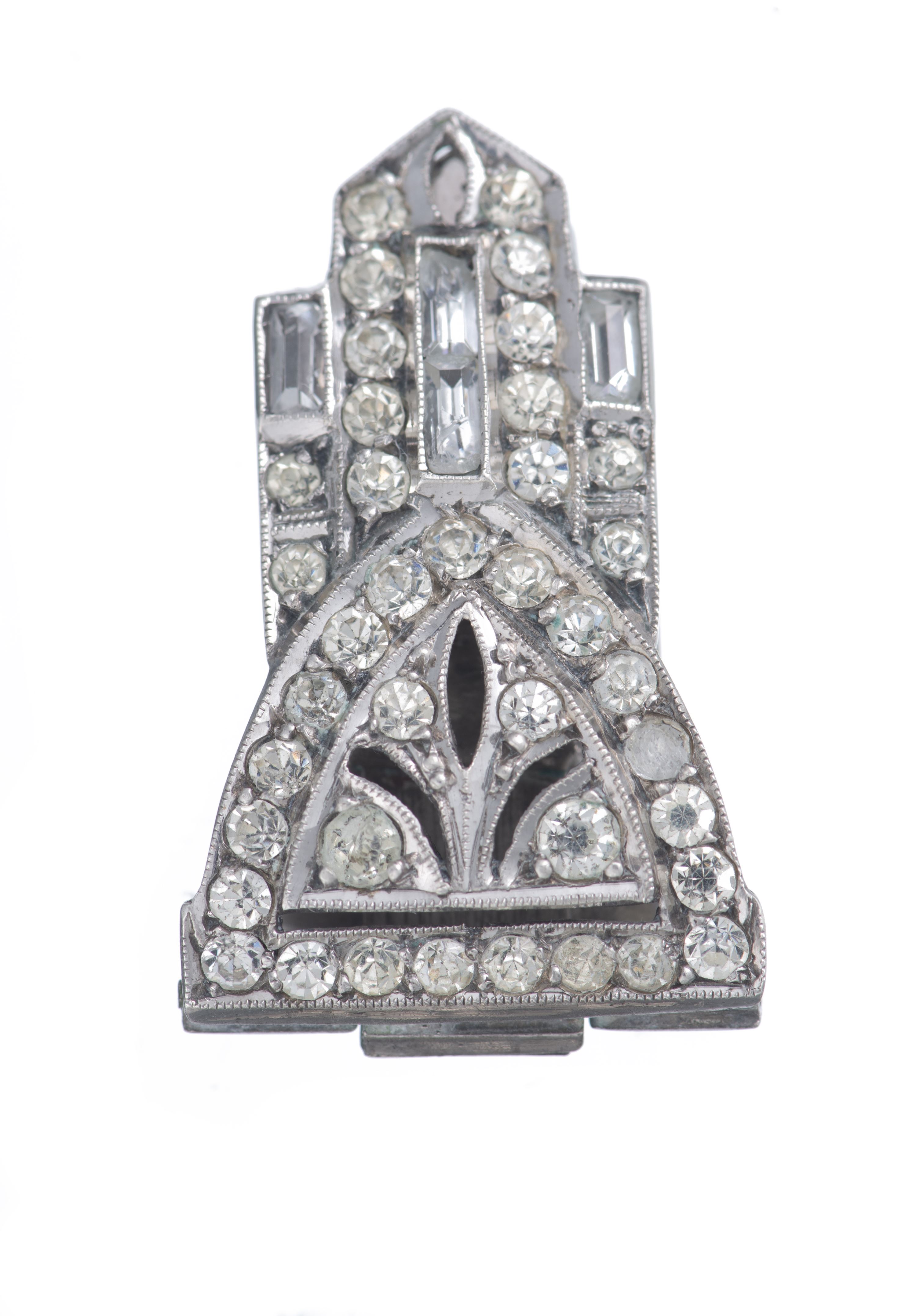 - 1 pince en argent .935 serti de verroterie imitant le diamant, L. 3 cm, poids total : 9.62 g
