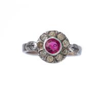 - 1 bague en argent avec un verre taillé imitant le rubis, T. 50, poids total : 2.44