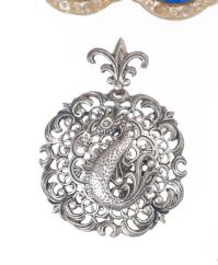 - 1 pendentif en argent .800 à décor ajouré et orné en son centre d'un hippocampe, H. 4.6x3.5, poids : 11.18 g