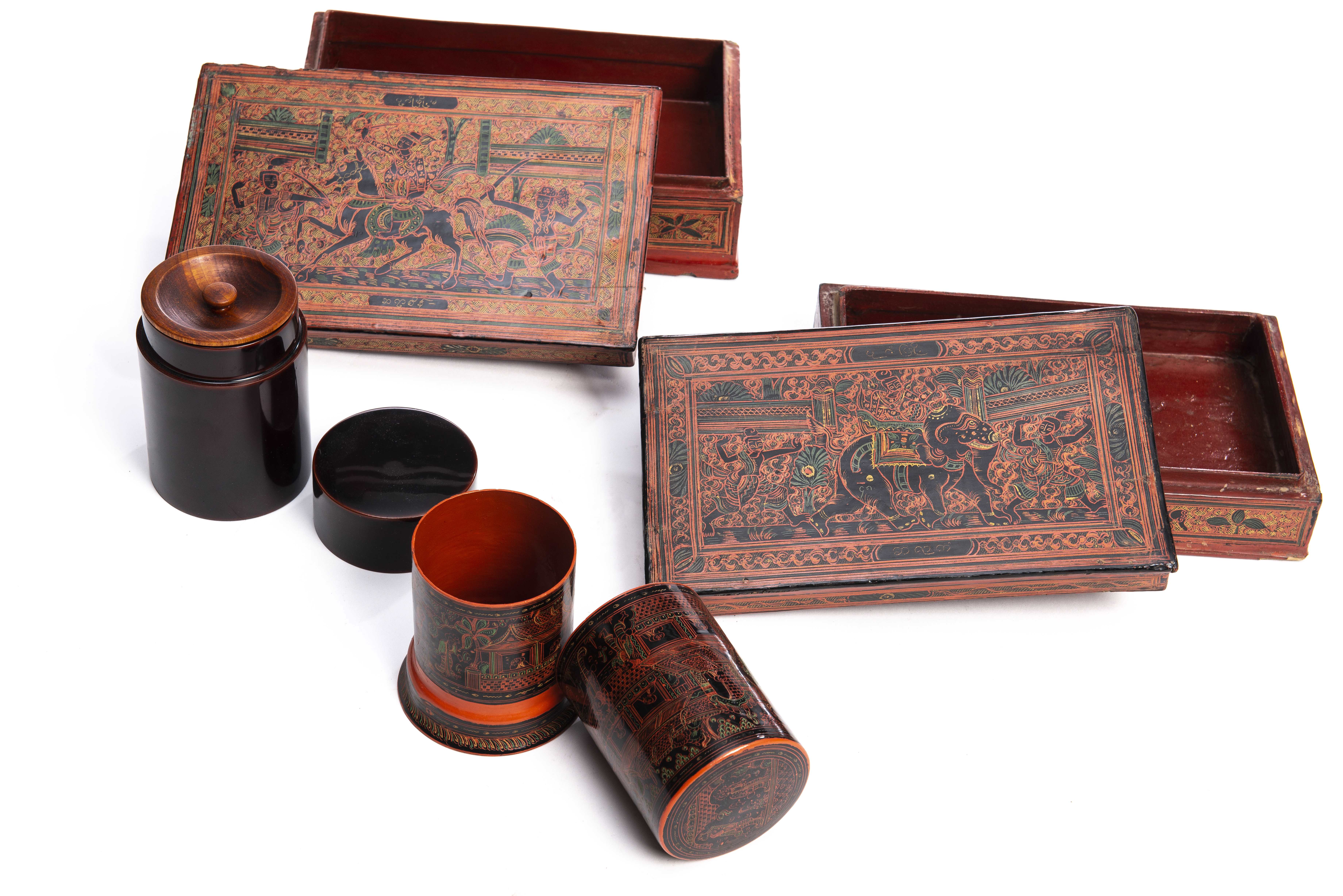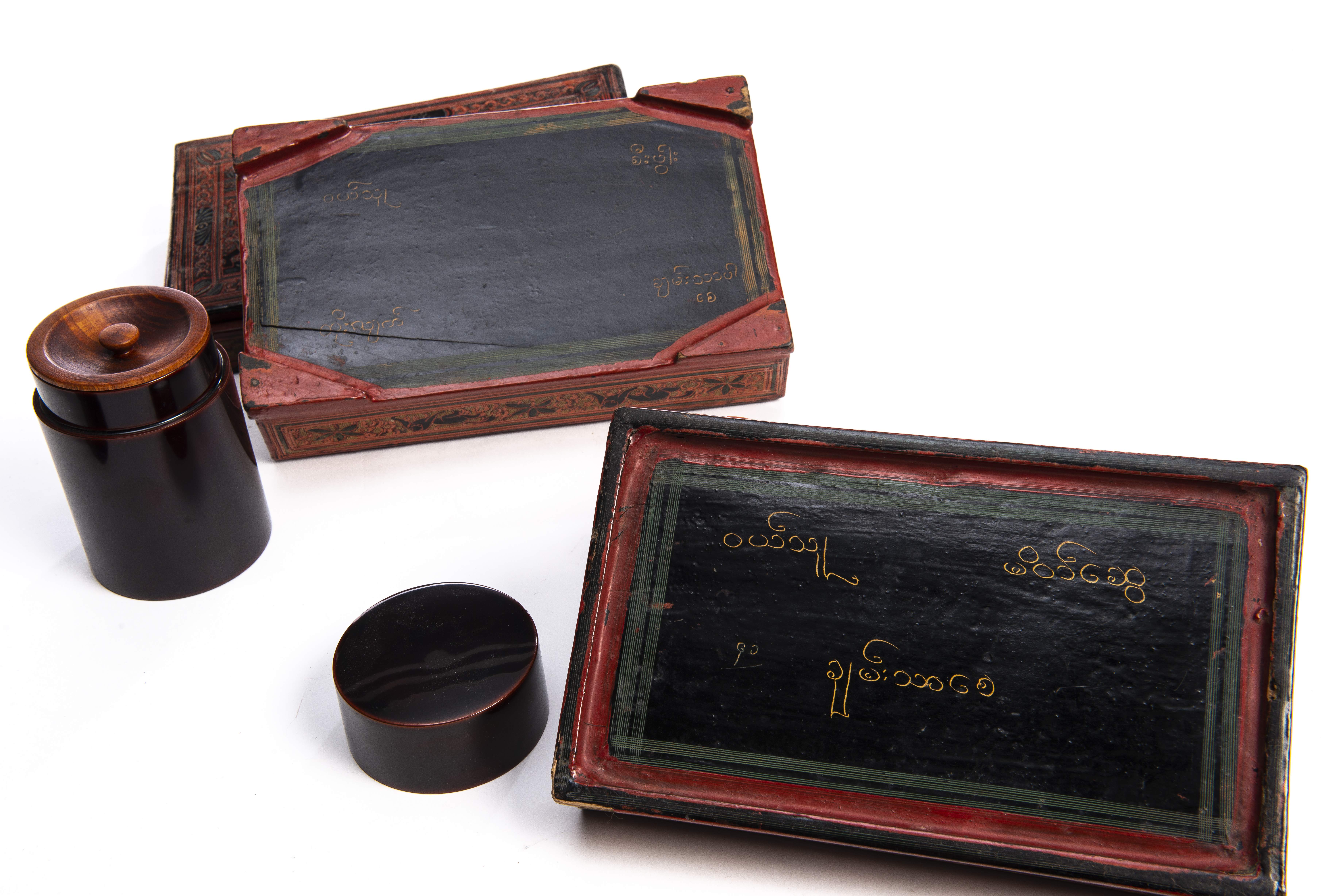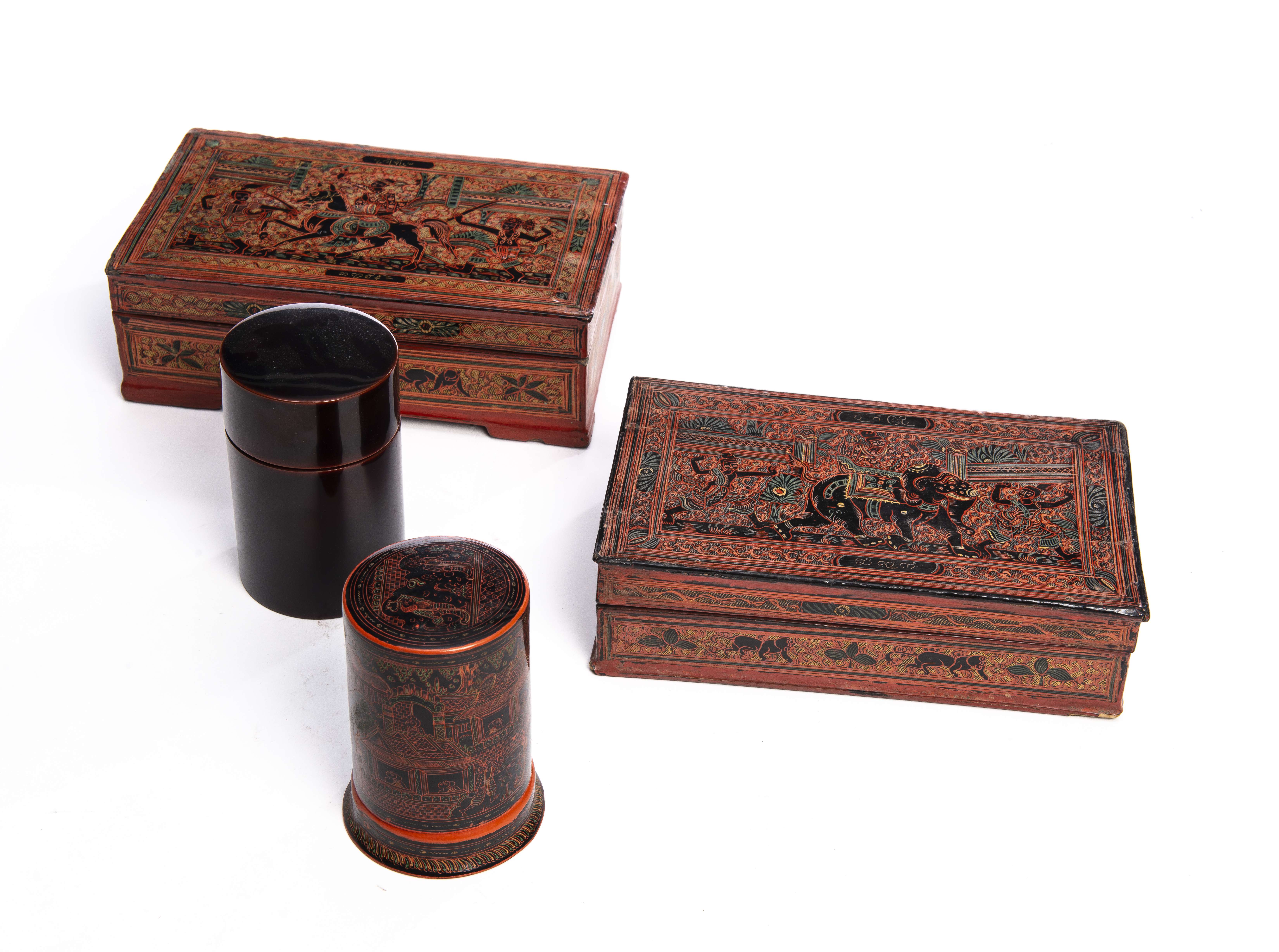 Ensemble de 4 boîtes en laque noire de Birmanie