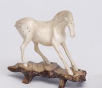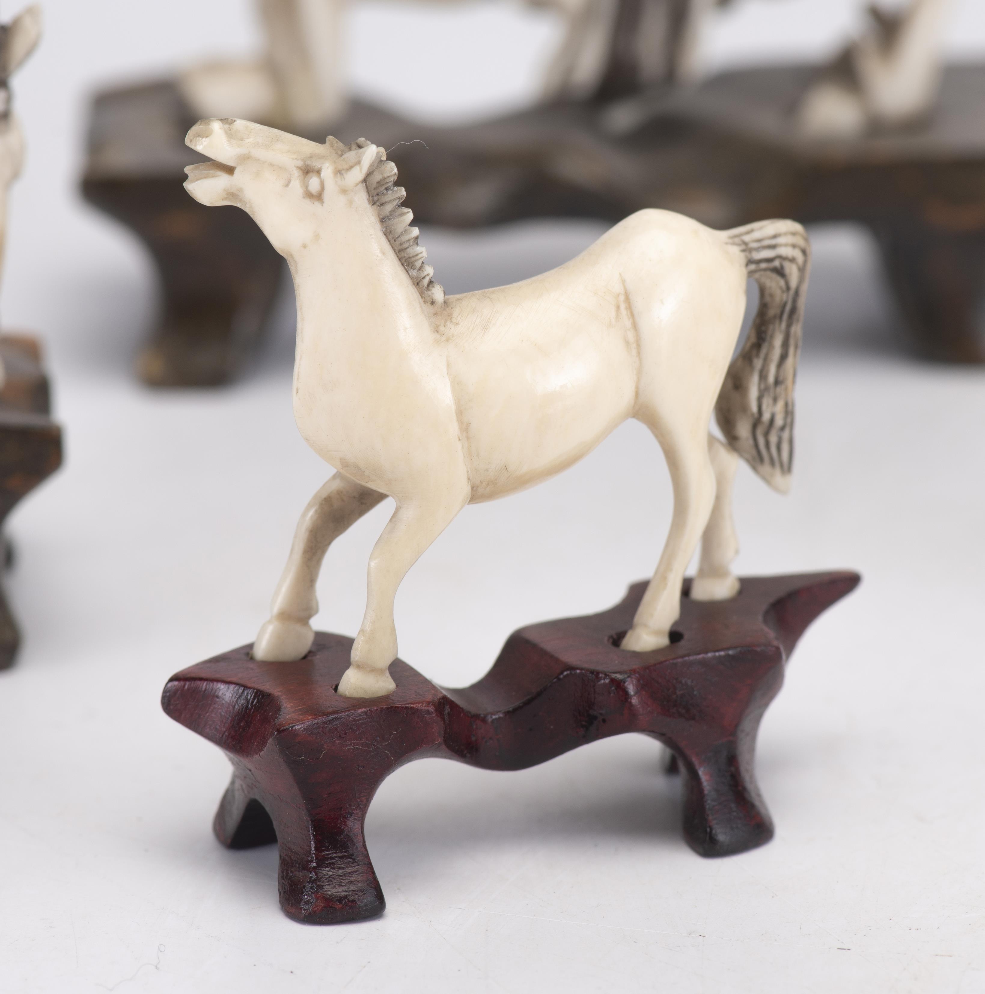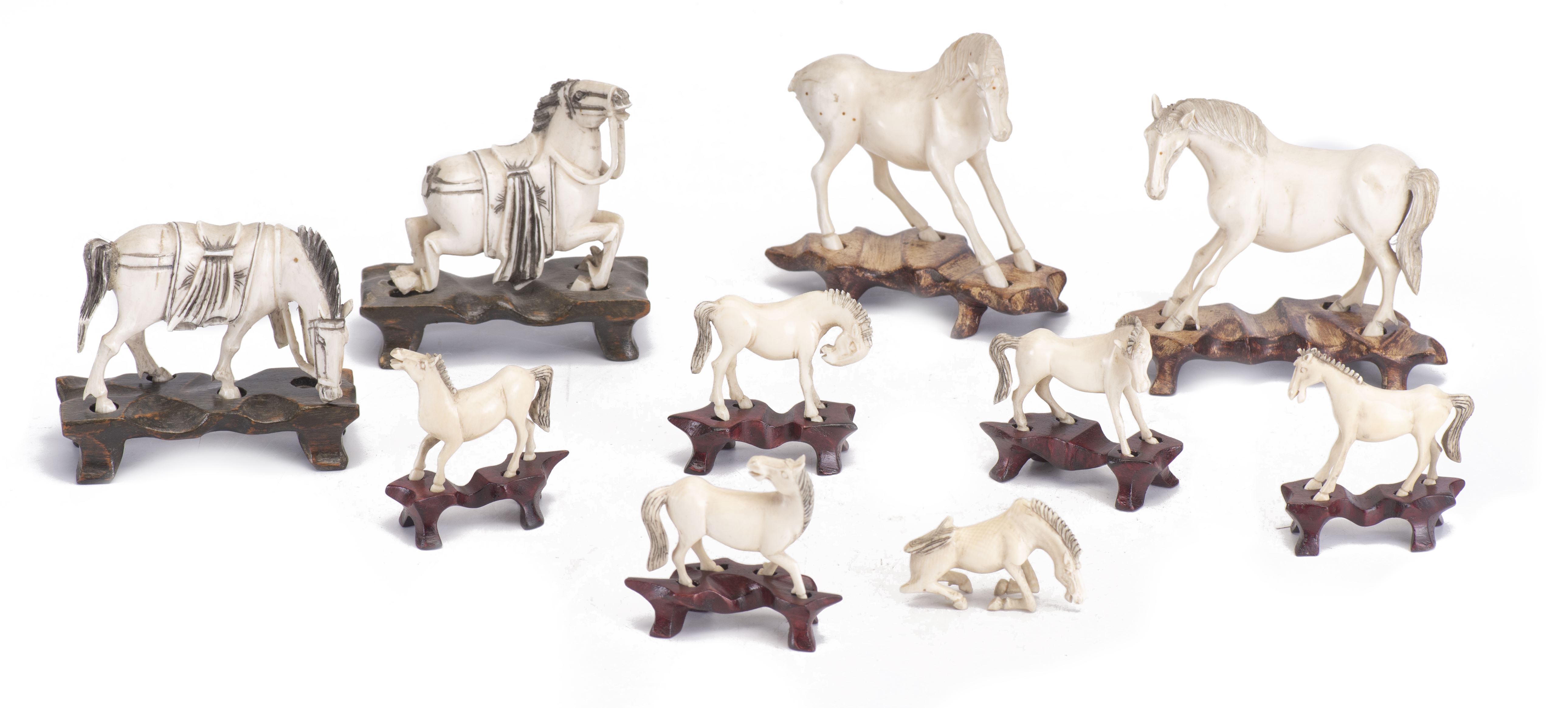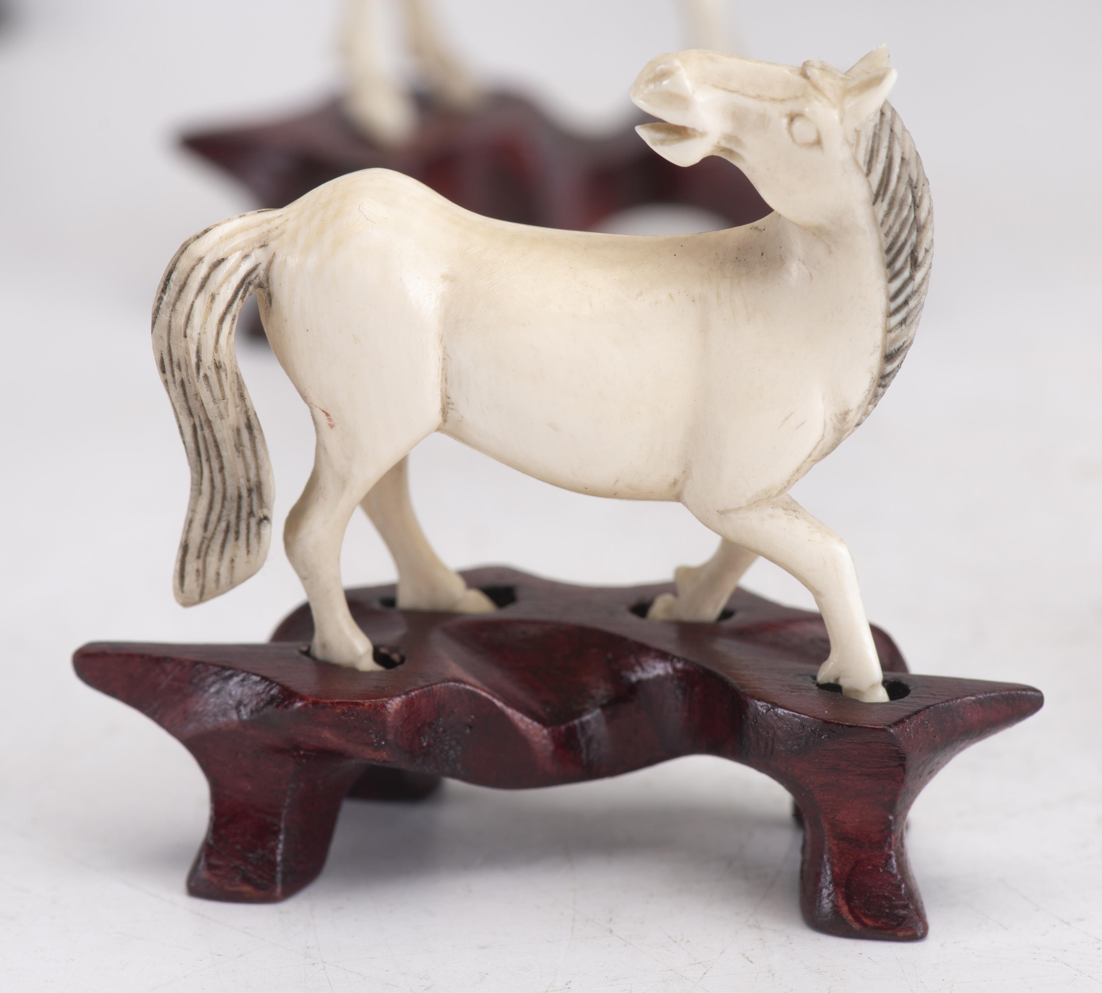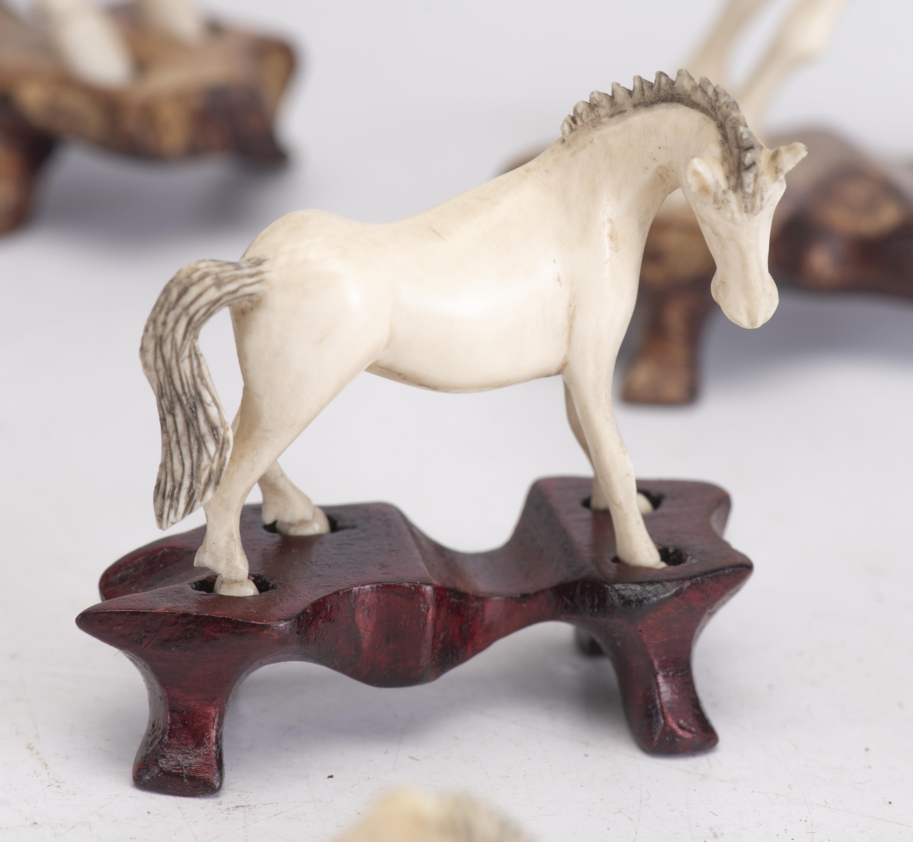 Ensemble de 6 chevaux en ivoire sur leur socle dans différentes positions