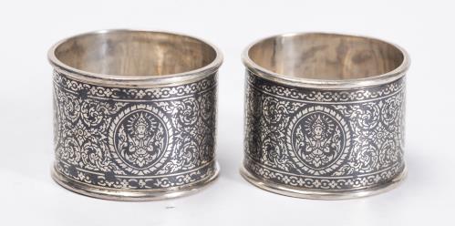 Petit lot d'argenterie comprenant trois ronds de serviette en argent .800, un rond en argent .812, et deux ronds probablement en argent .800 niellés de Thaïlande.