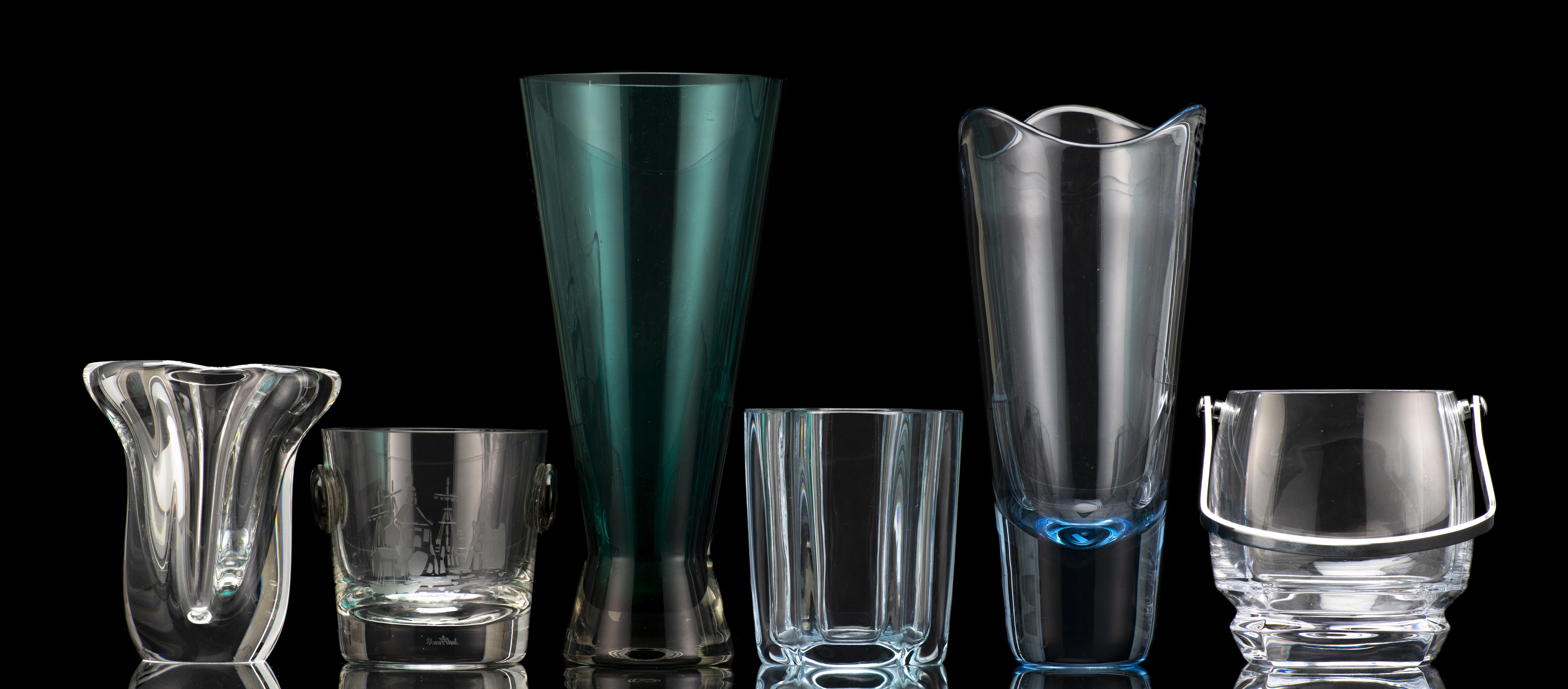 Ensemble de 6 vases en cristal transparent: Sèvres, Stromberg, Holmegaard, Rosenthal, Baccarat