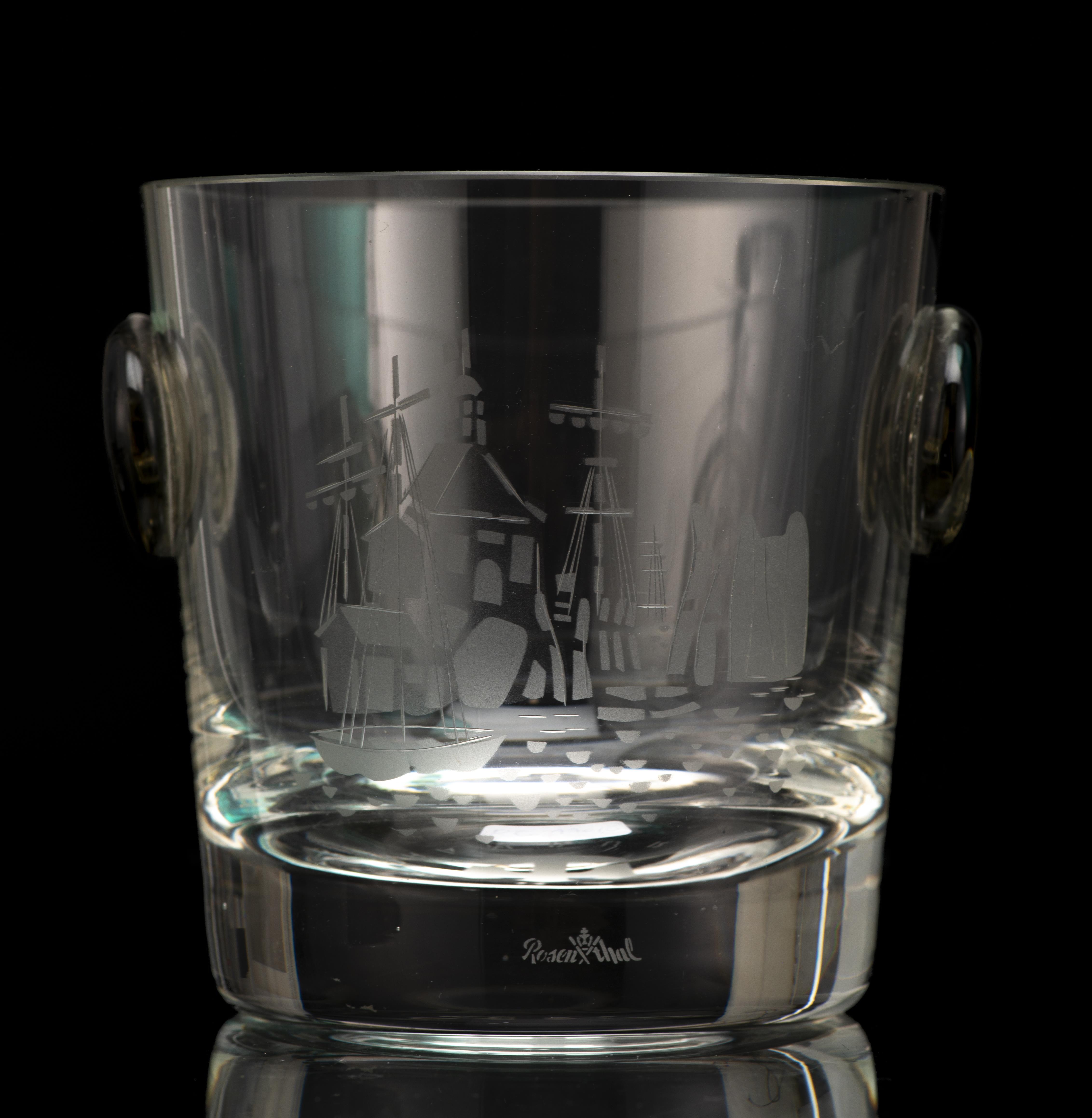- 1 seau à glace en cristal transparent de Rosenthal avec décor maritime. H. 11.2 cm D. 12 cm