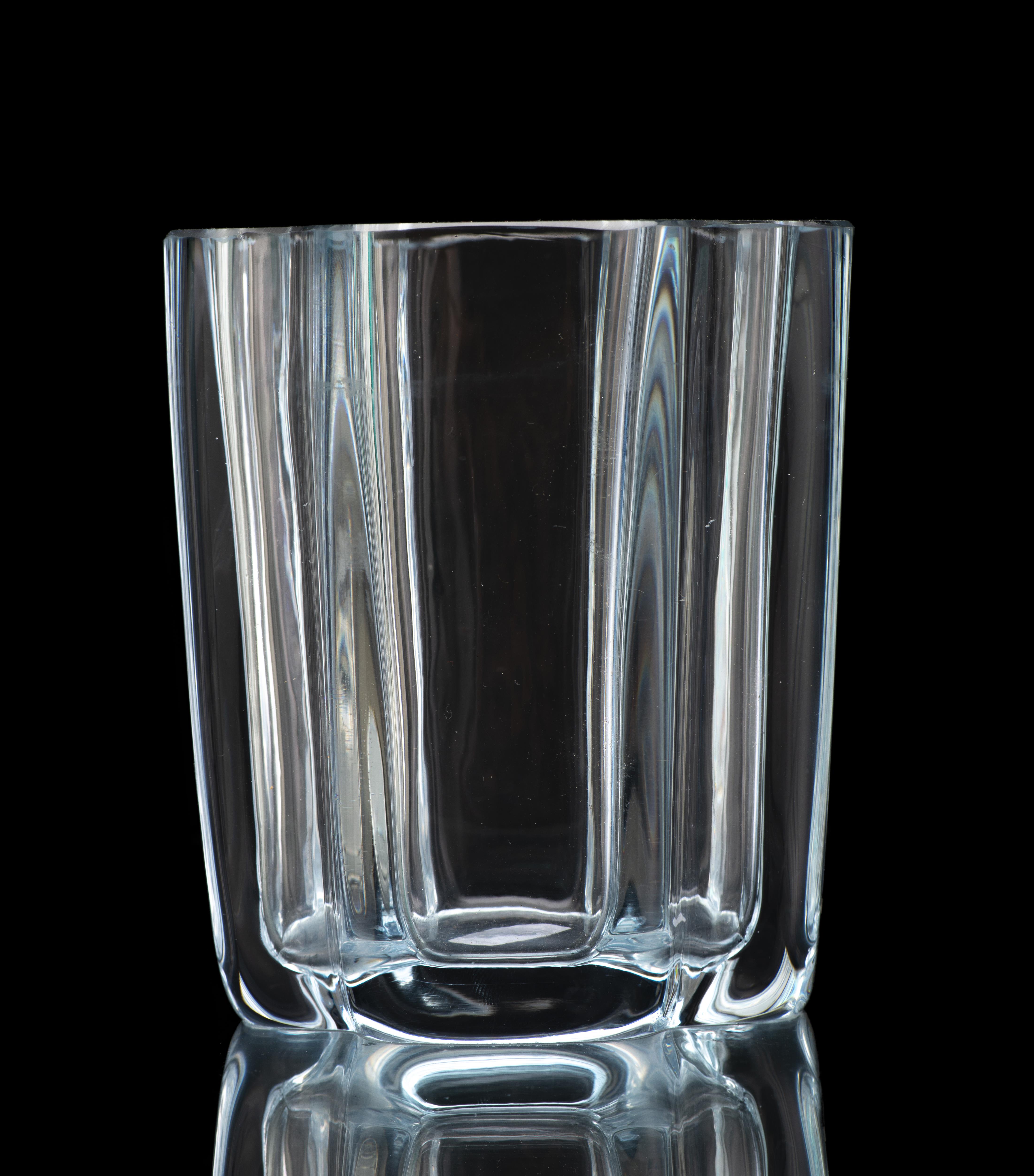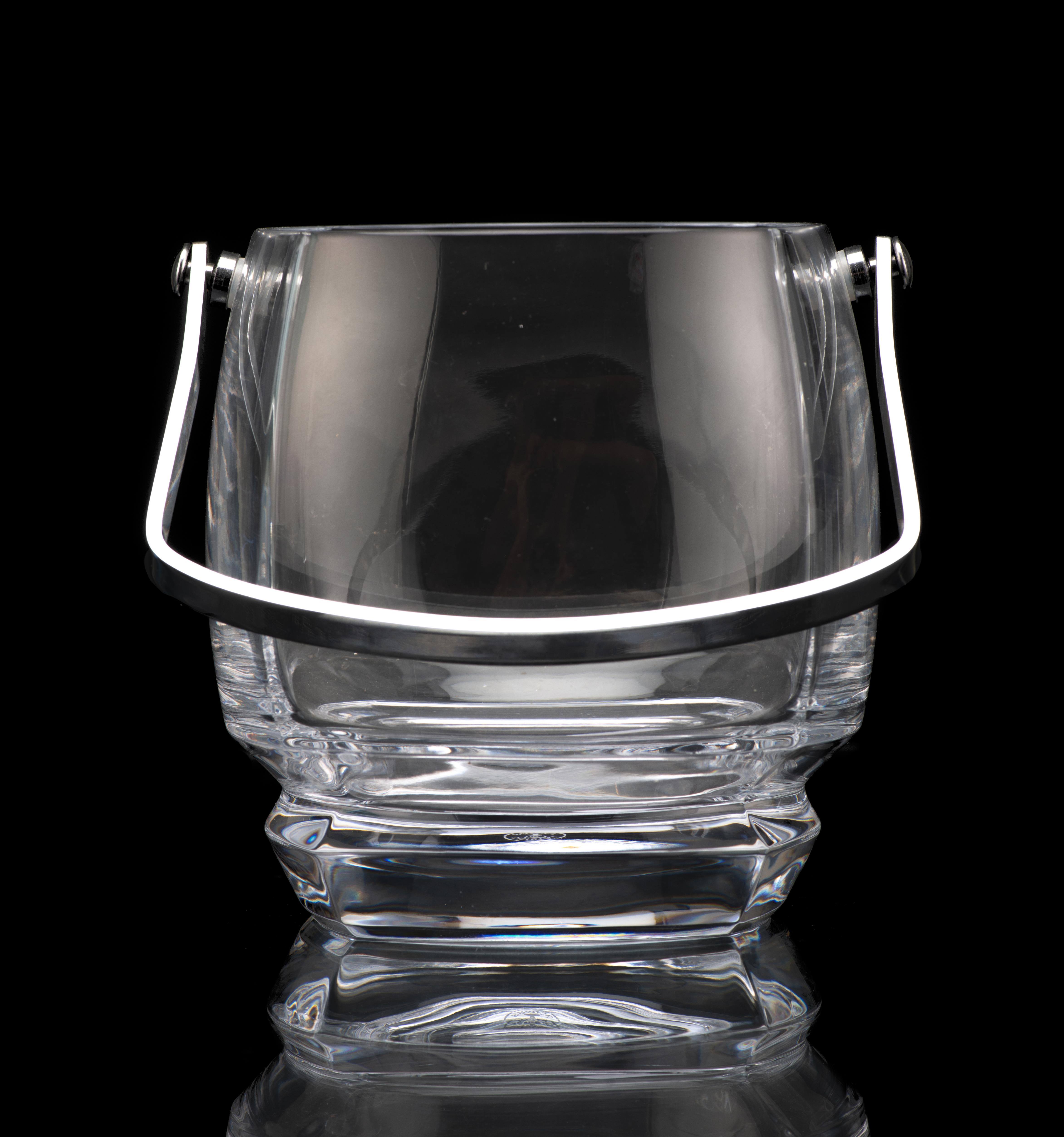 - 1 seau en cristal transparent de Baccarat de forme carrée. H. 13 cm D. 13.5 cm et H. 21 cm