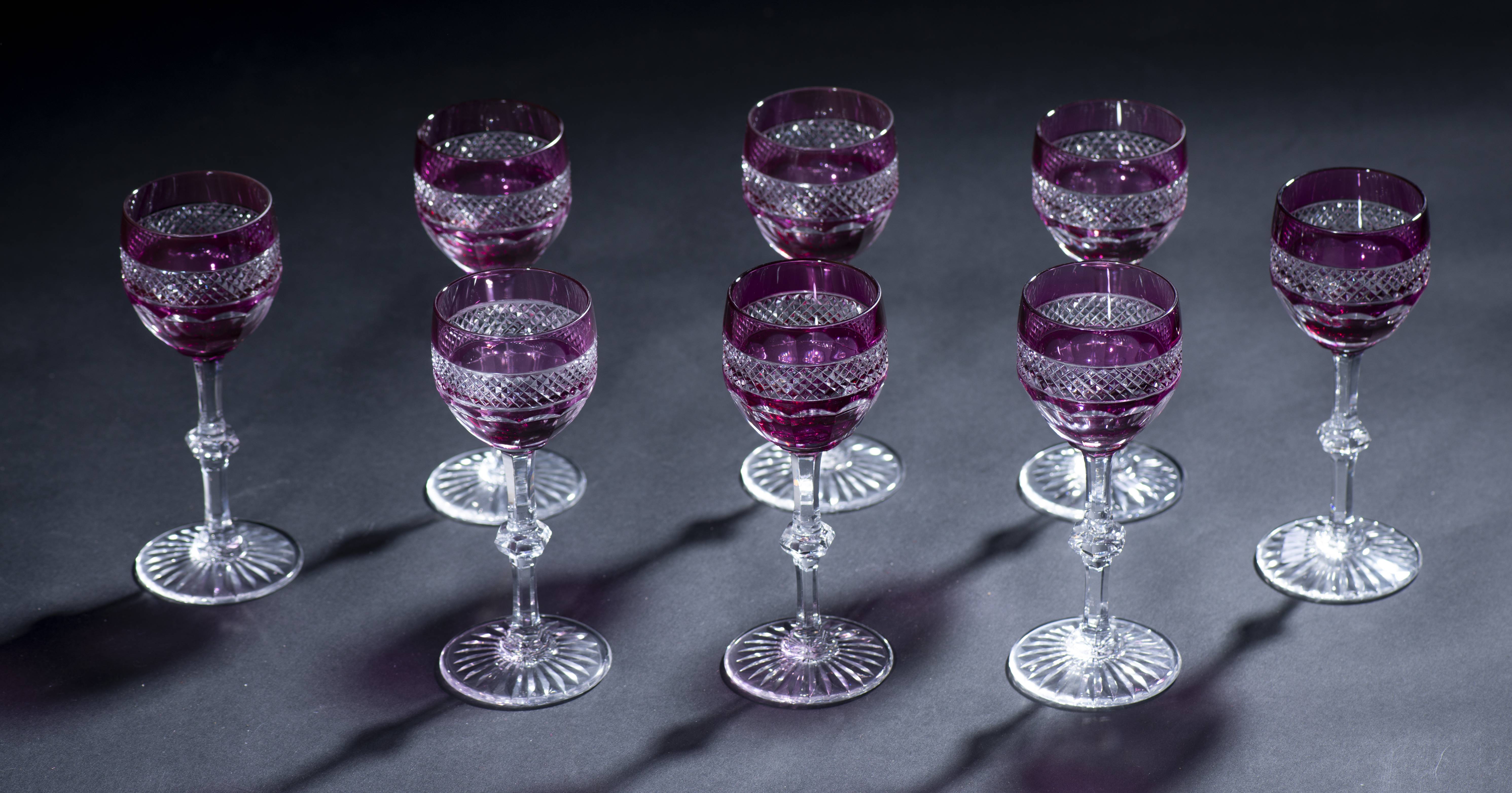 Ensemble de 8 verres à vin du Rhin modèle Trianon en cristal de Saint-Louis.