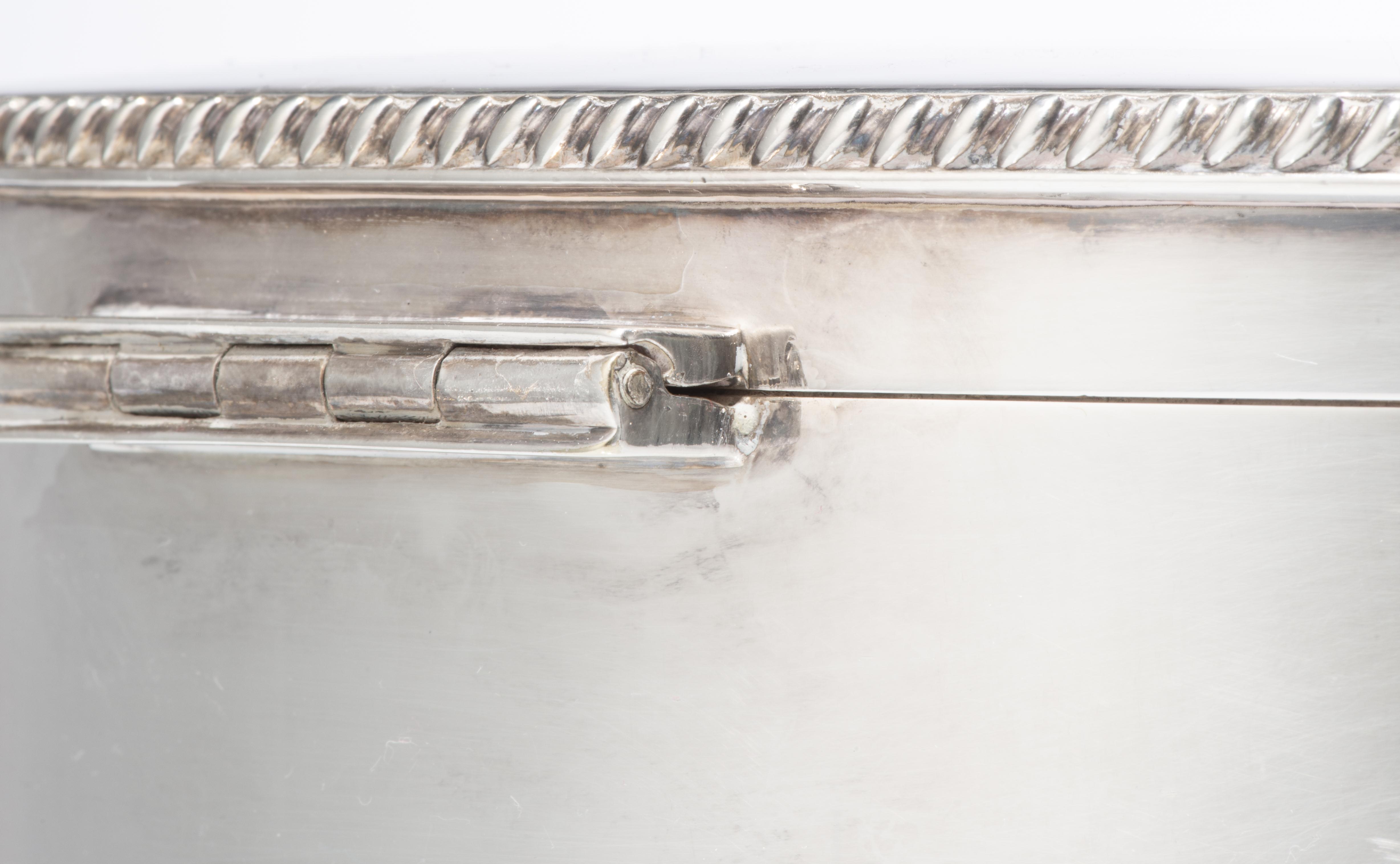 On y joint une grande boîte ovale en métal argenté 18.5 cm x 12 cm