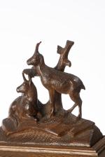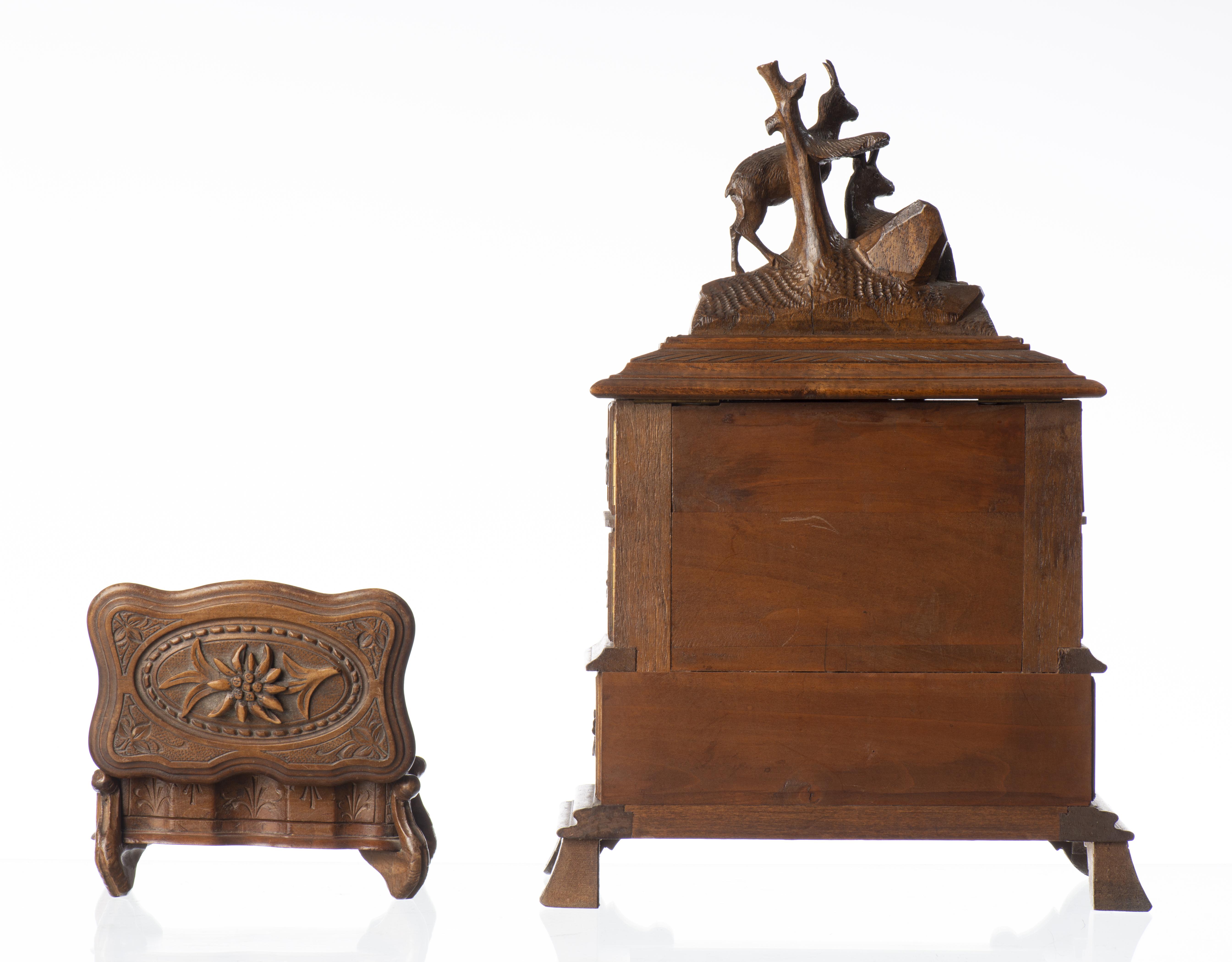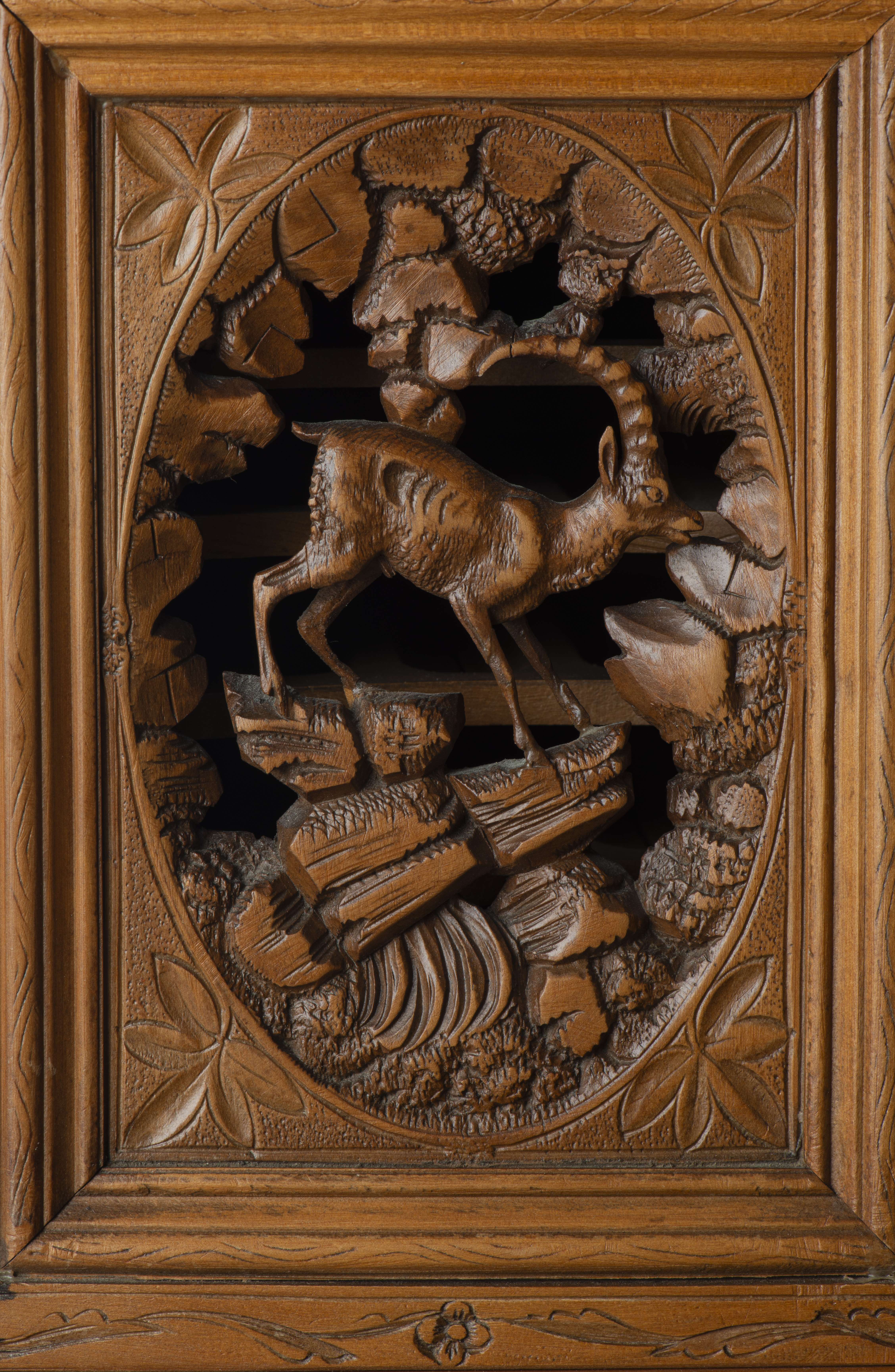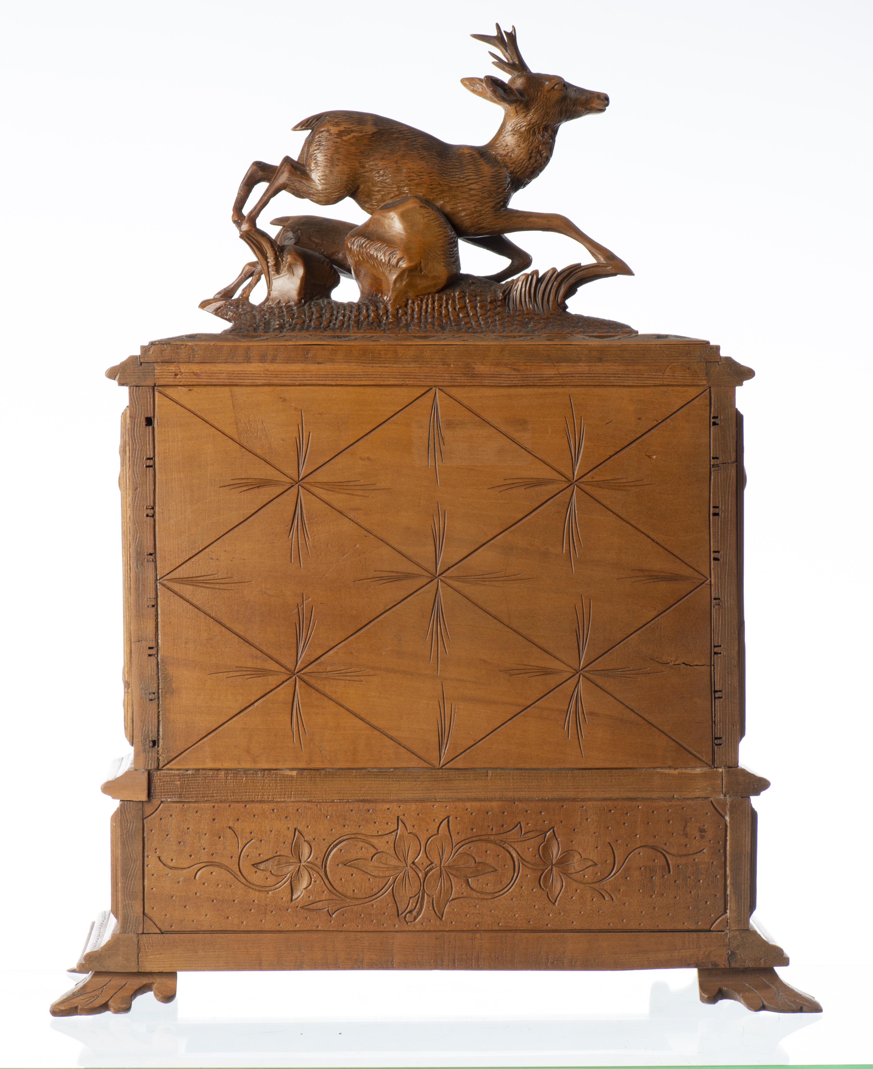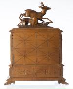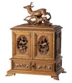 -un coffret de Brienz à cartouches ou cigares surmonté d'une scène de cerfs.