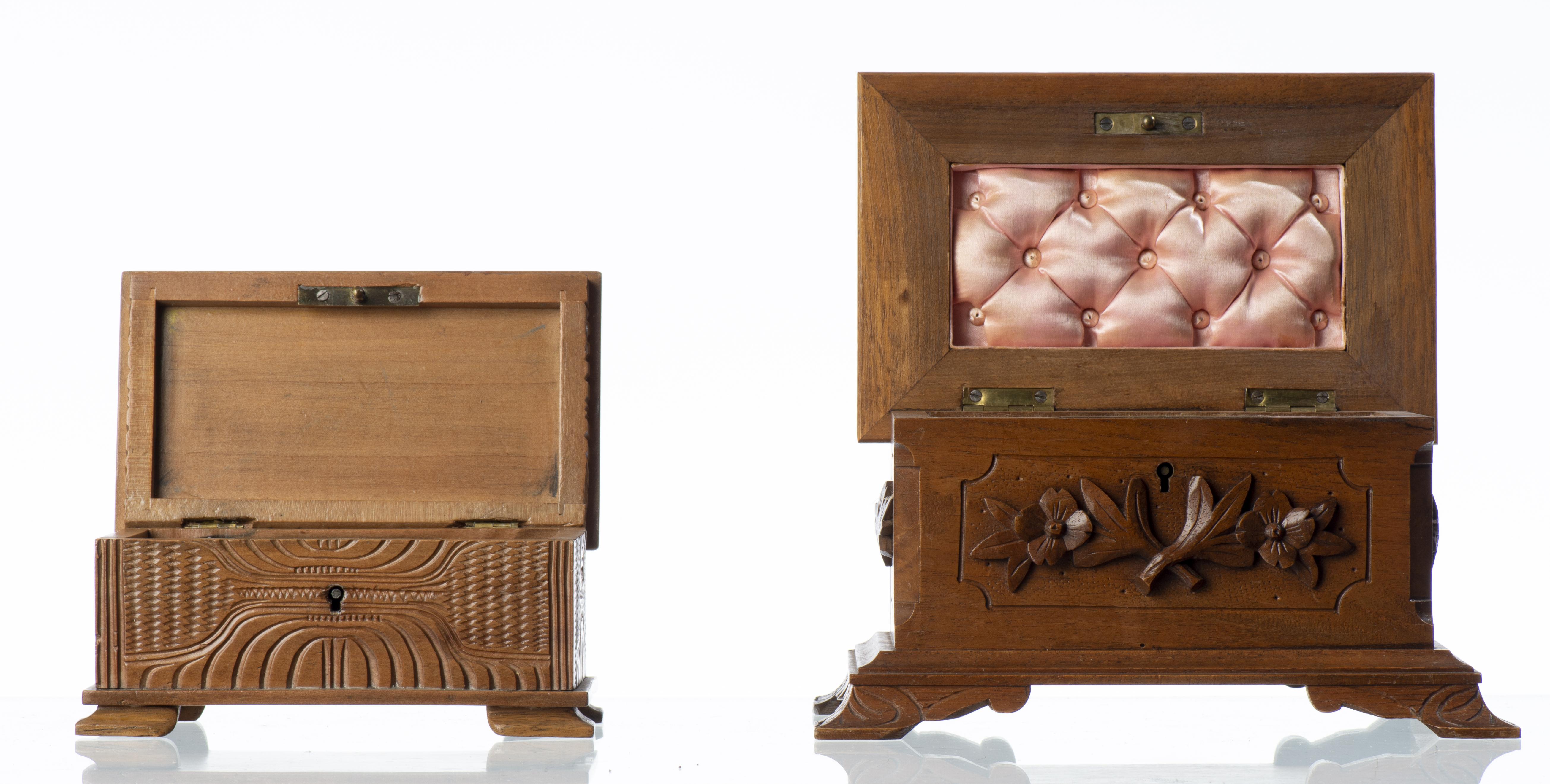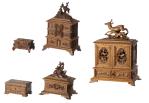 Ensemble de cinq coffrets et boîtes de Brienz en noyer