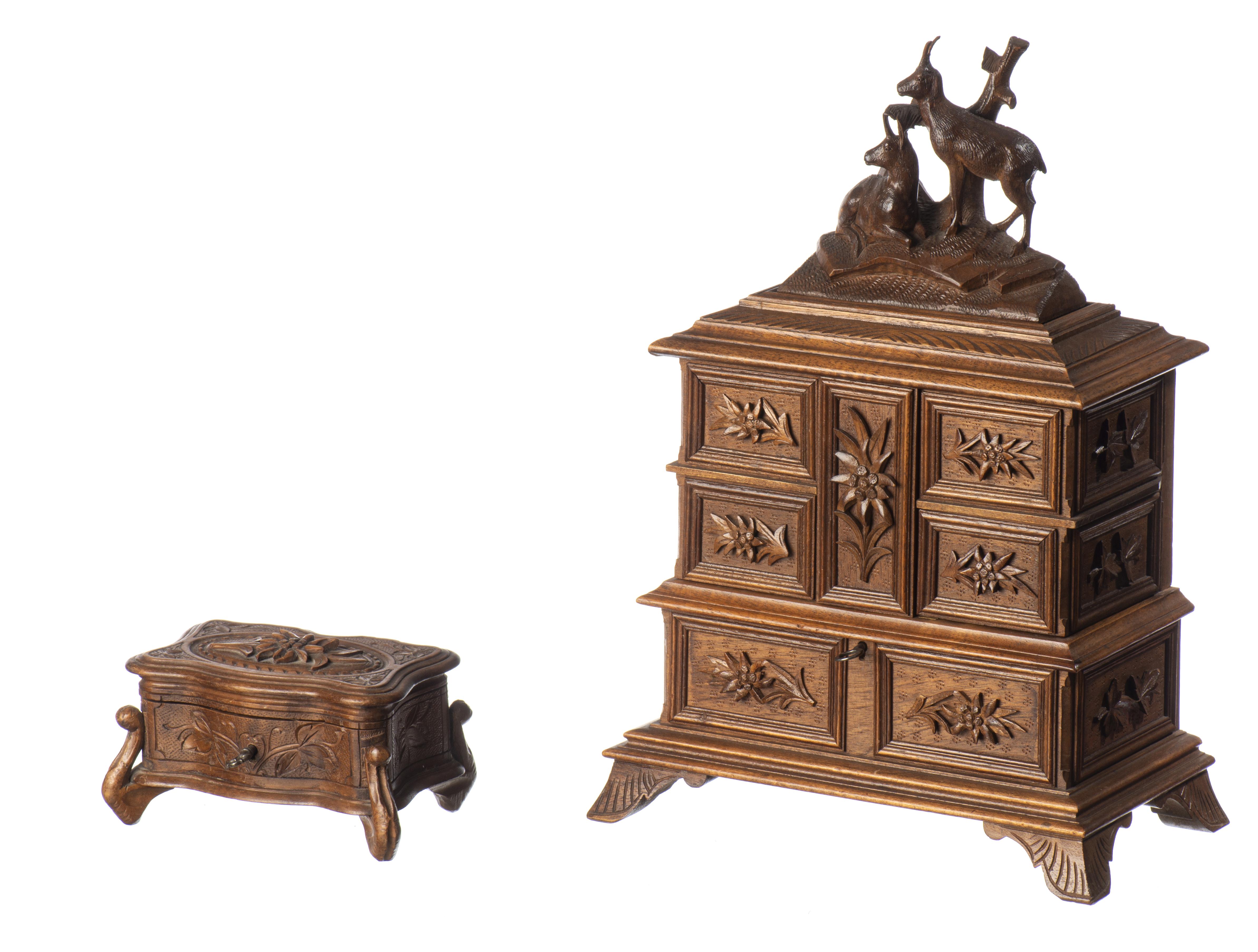 -un coffret de Brienz à bijoux à un compartiment surmonté d'une scène de chamois.