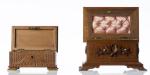 Cinq coffrets et boîtes en noyer, comprenant: