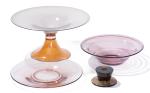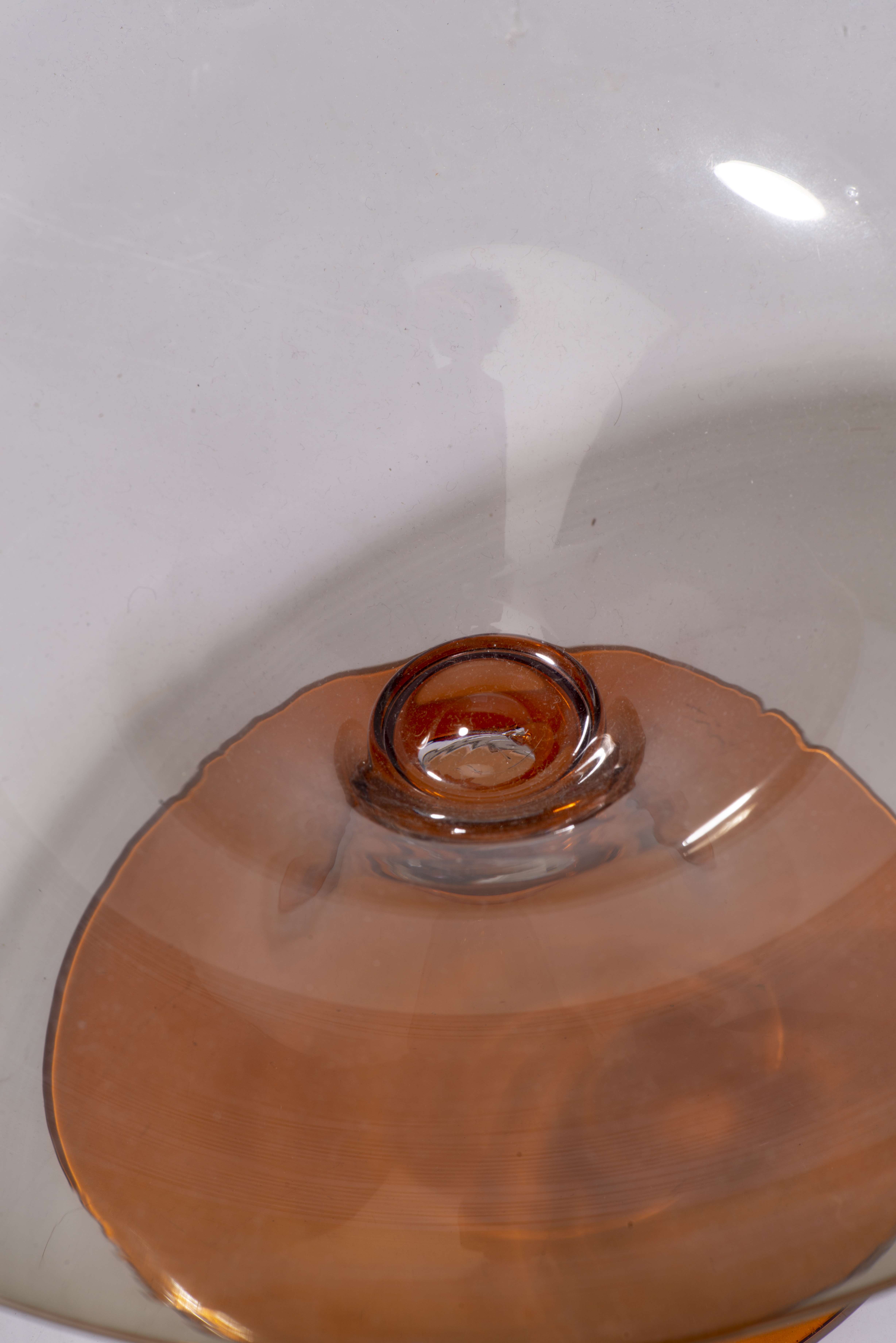 On y joint une grande coupe sur piédouche en cristal bicolore orange et et gris fumé H. 17.5 D. 33.5 cm