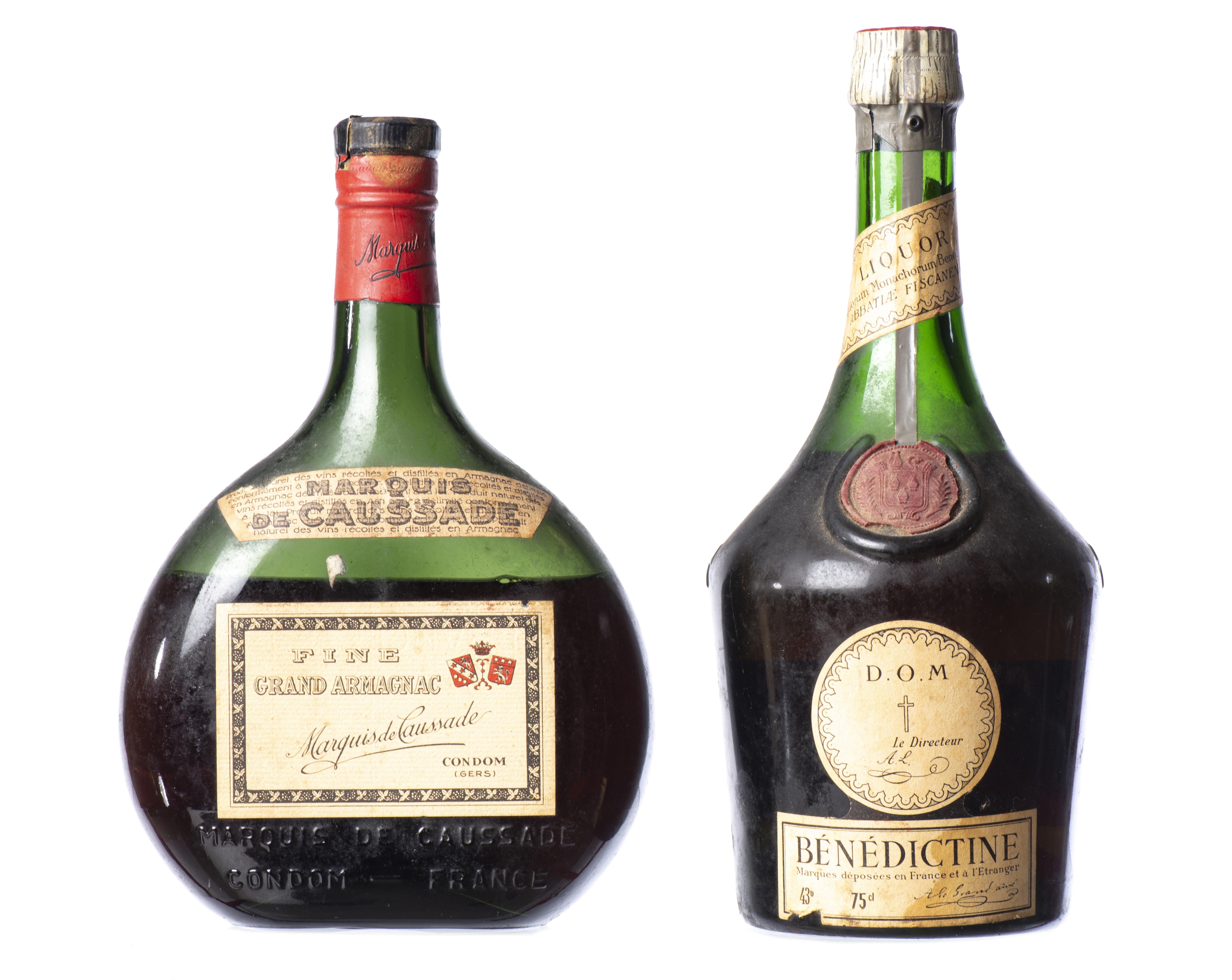 Ensemble de deux bouteilles, Armagnac et liqueur de l'Ancienne Abbaye de Fécamp (F)