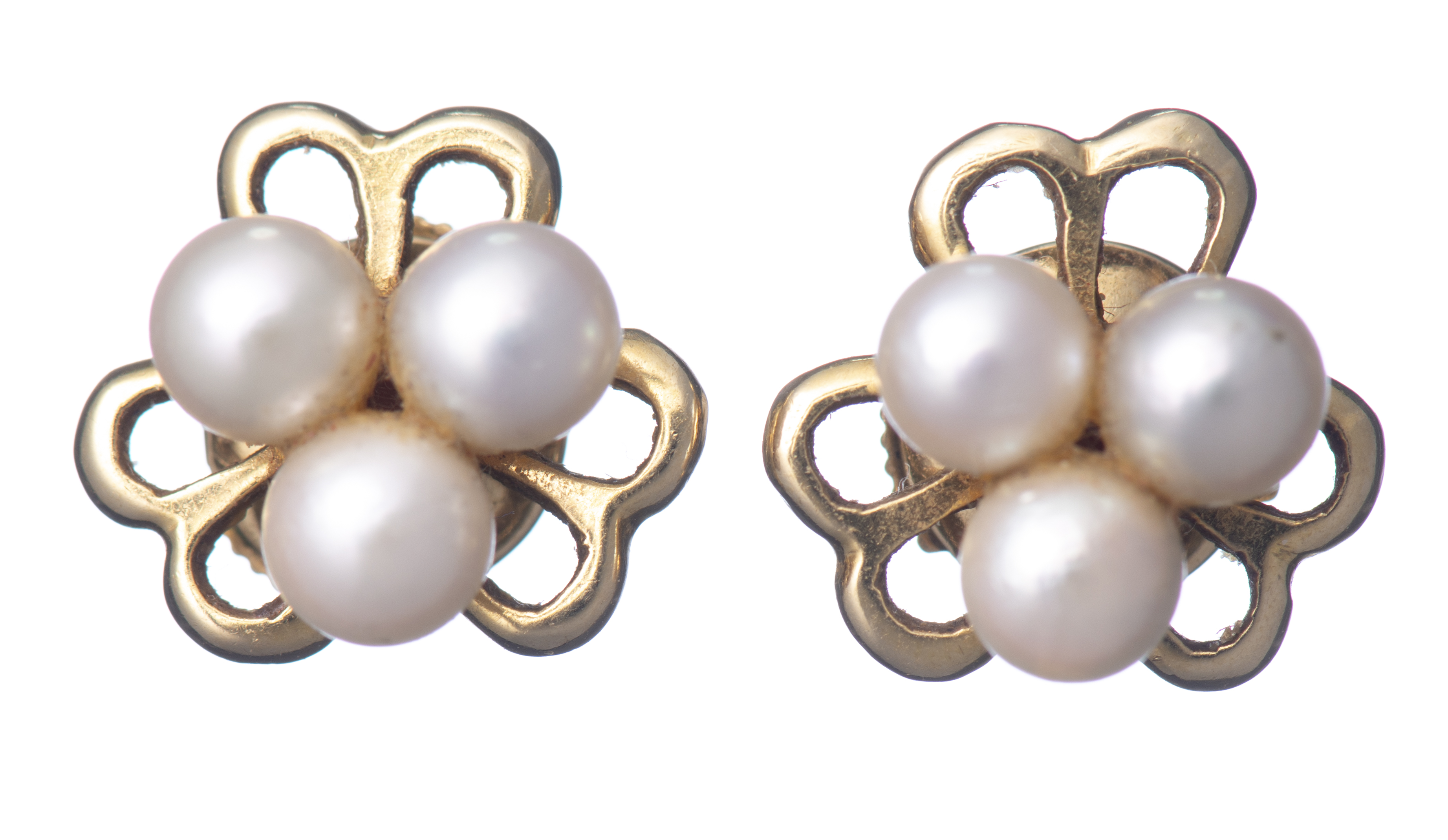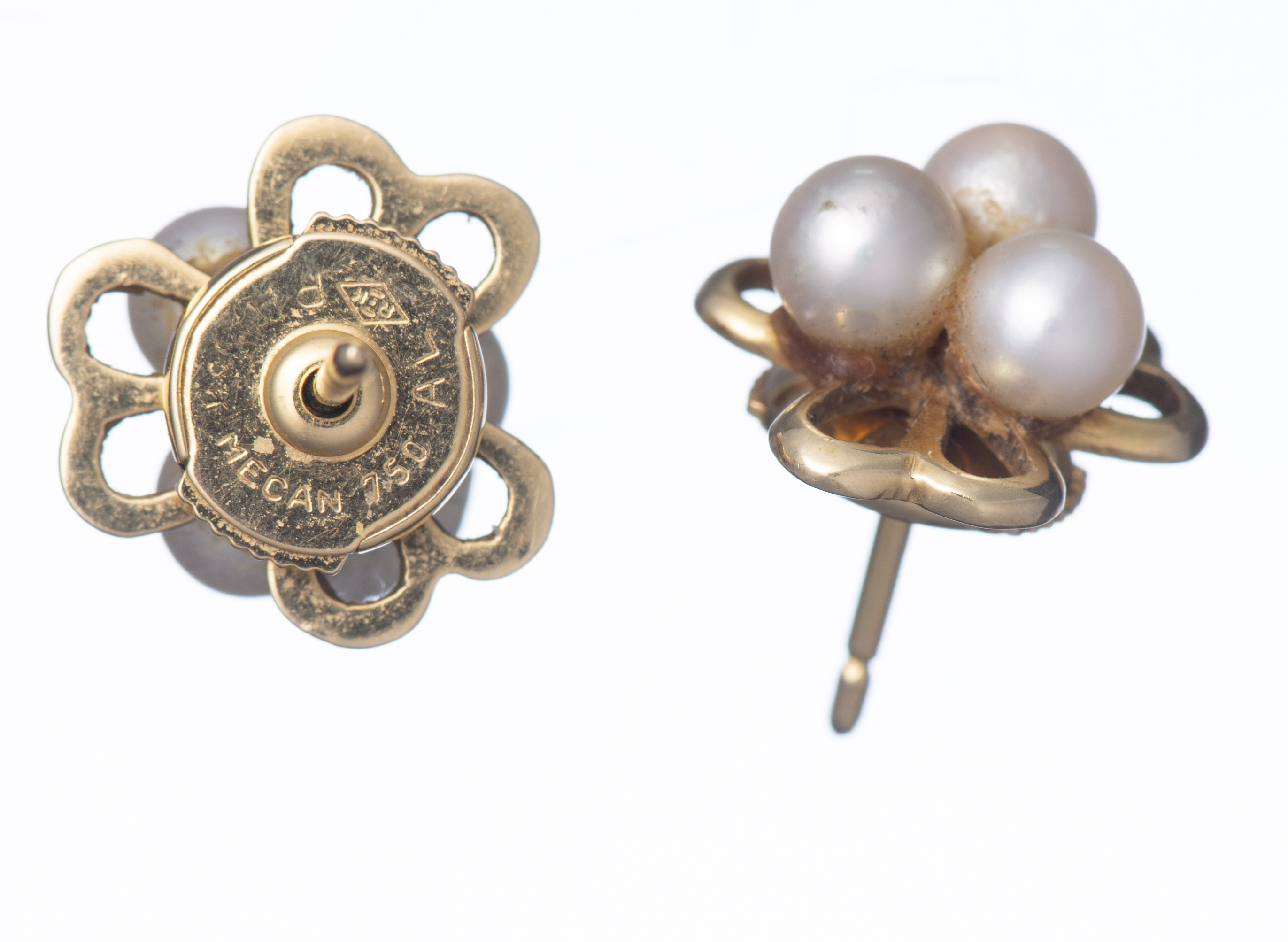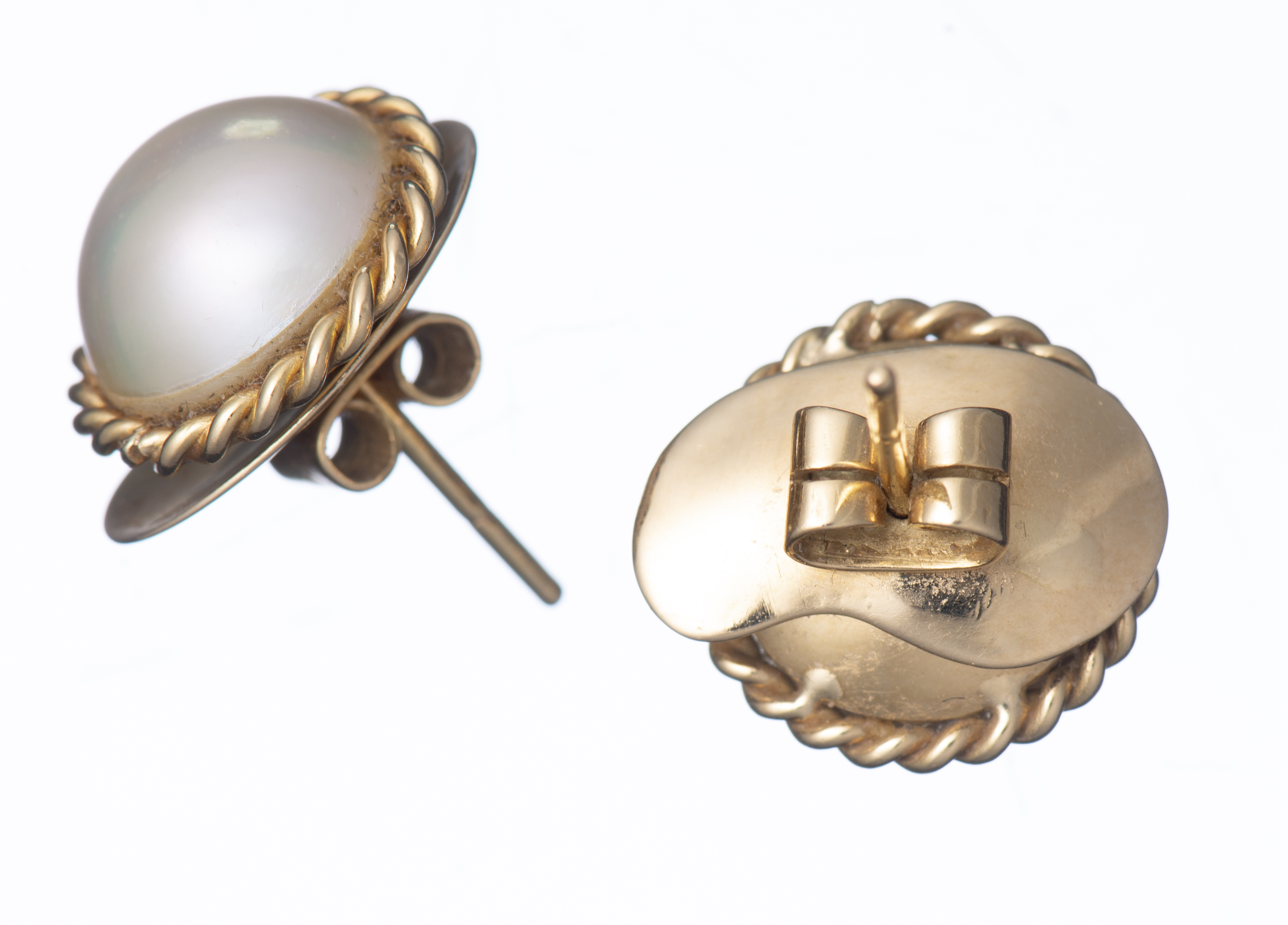 Ensemble de deux paires de clous d'oreilles en or jaune ornées de perles de culture