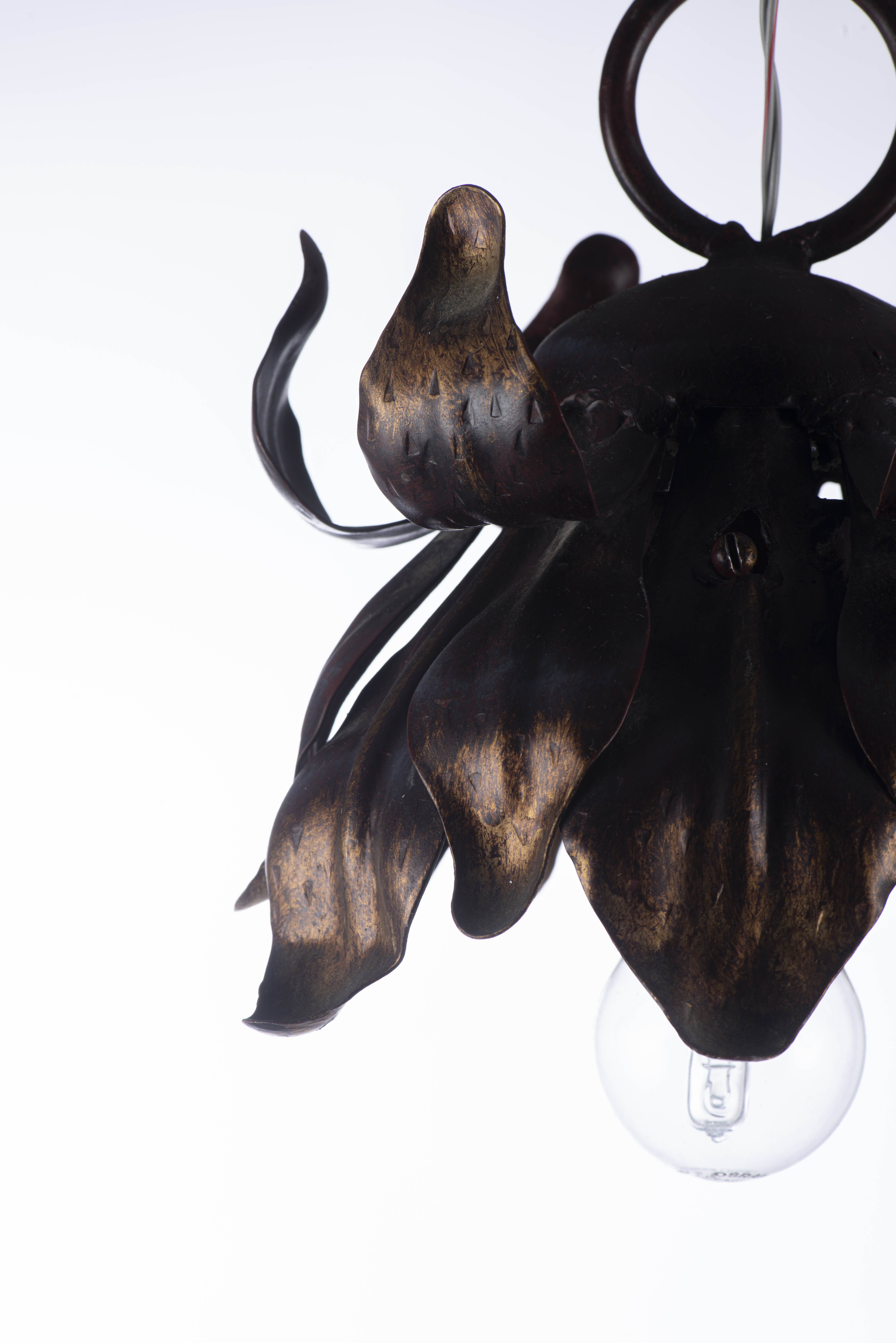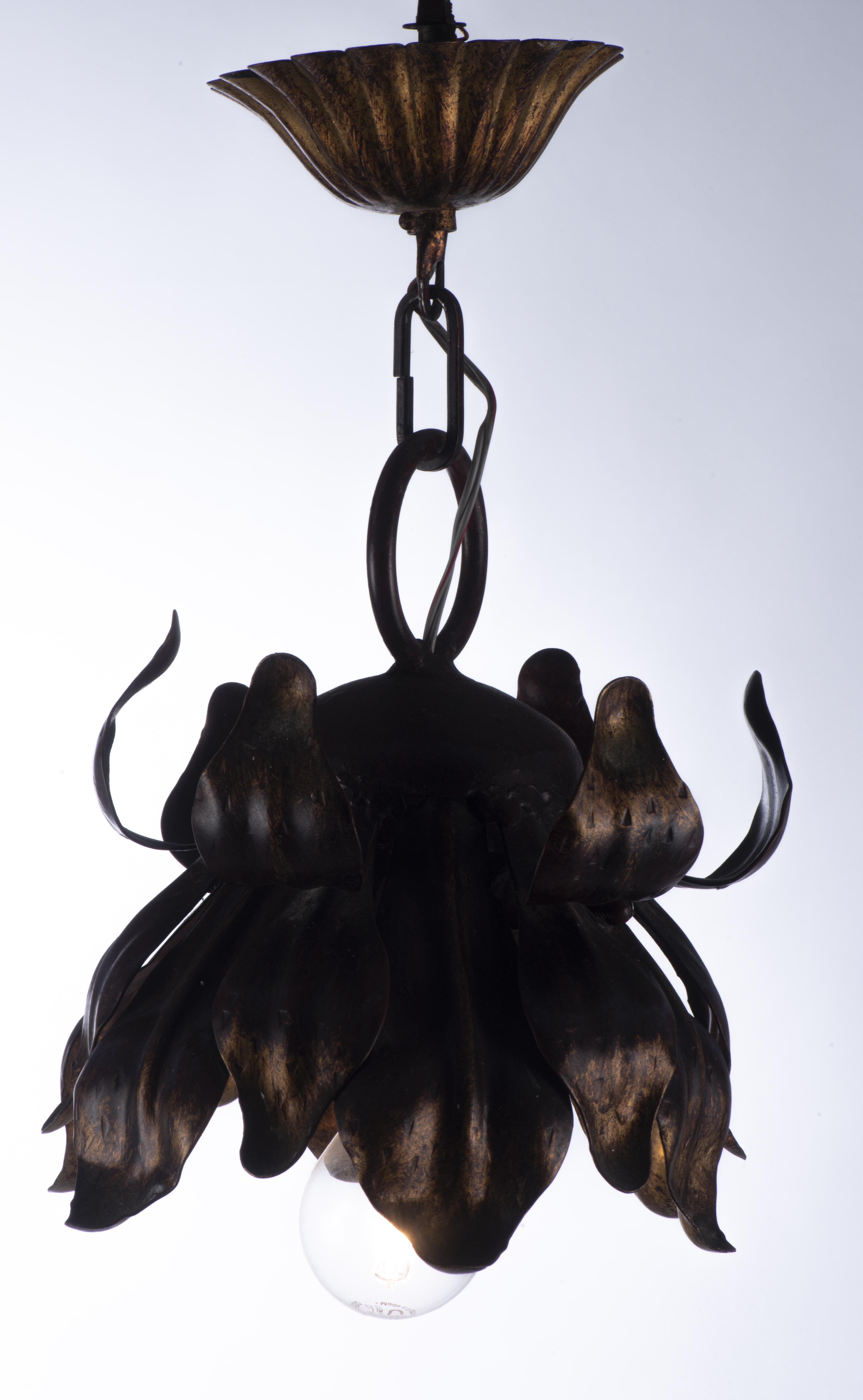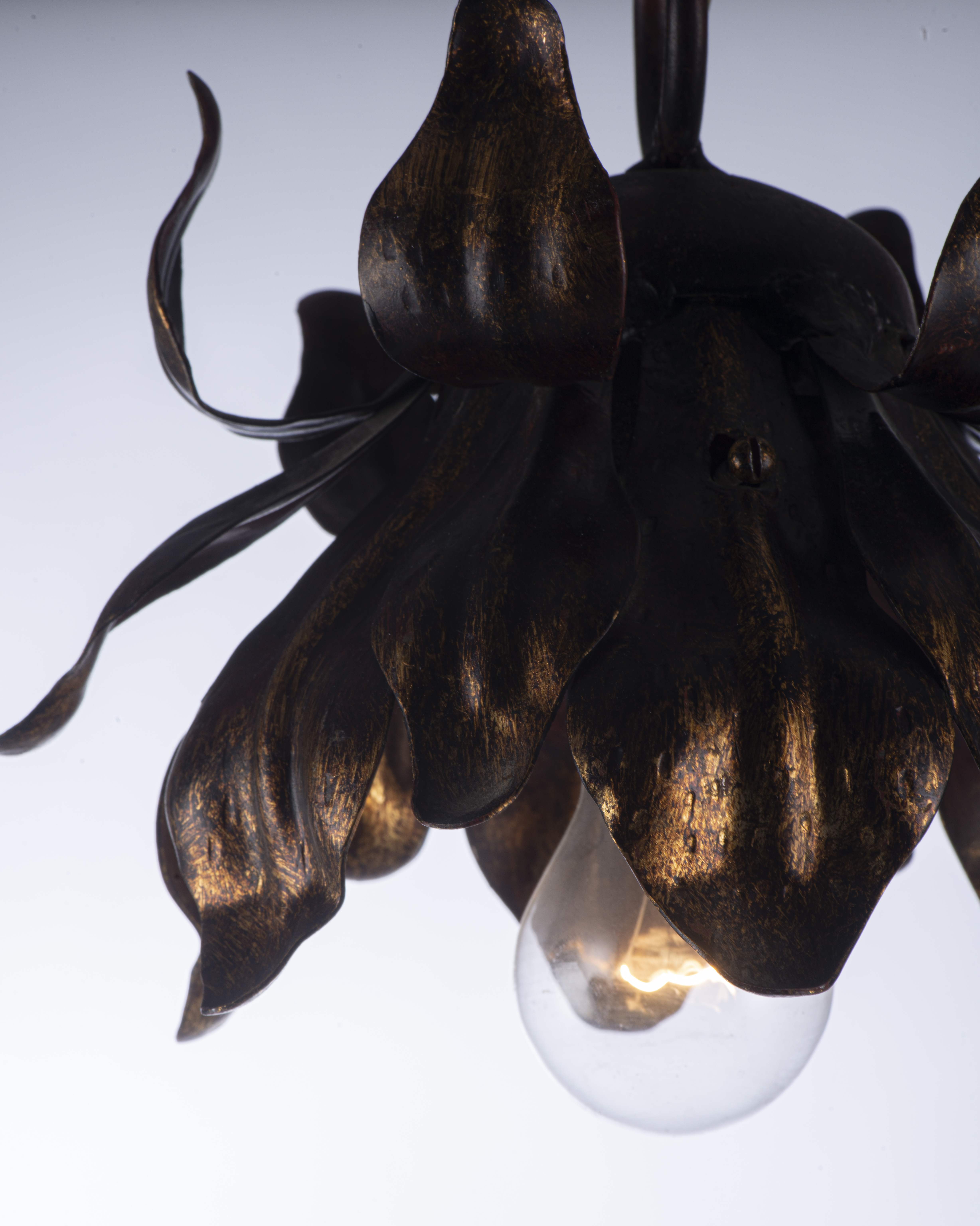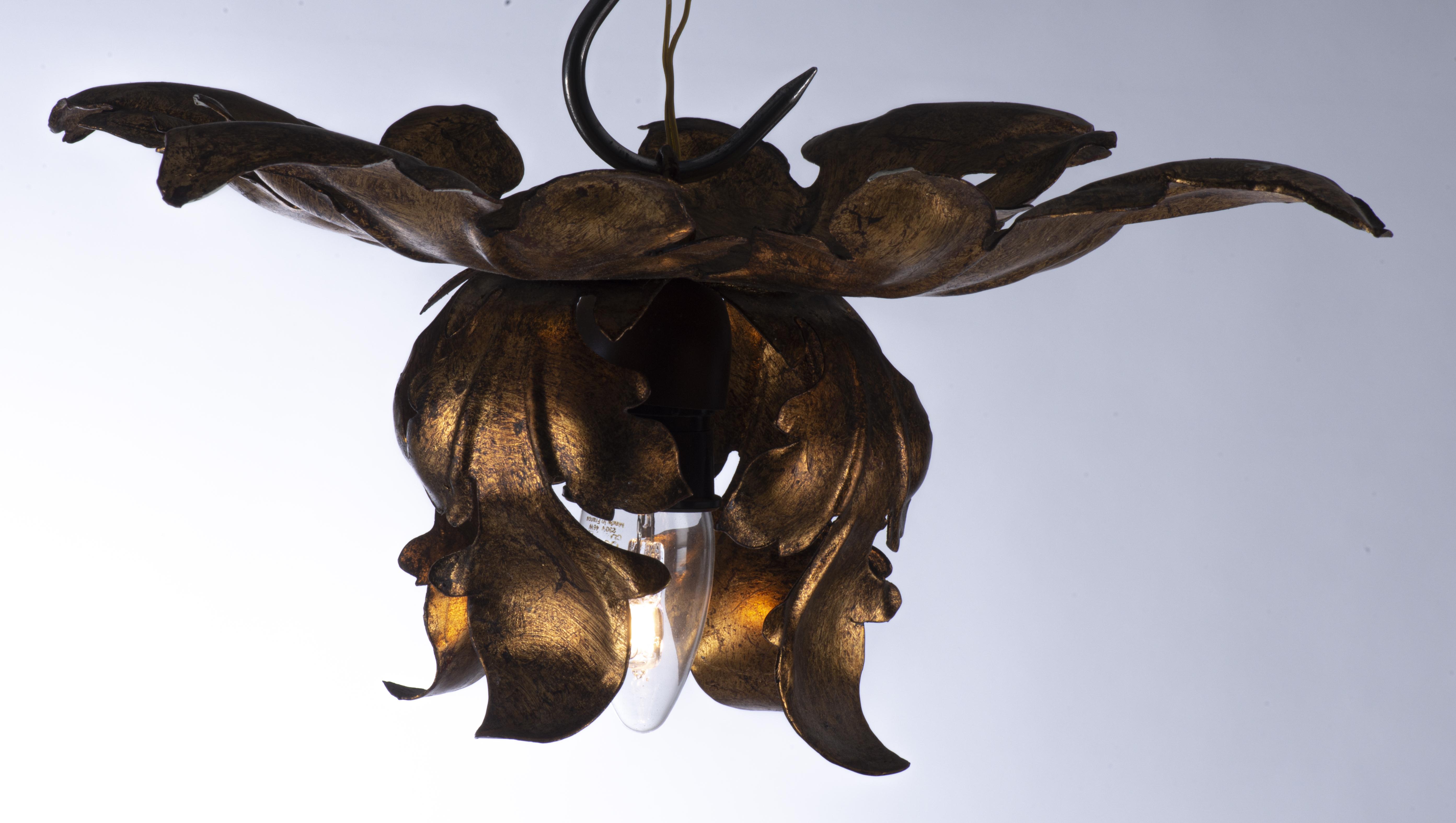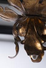 Ensemble de deux petits lustres et une applique Fleur en métal doré