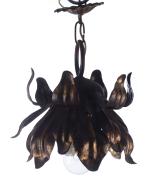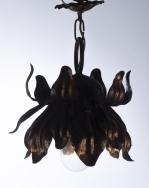 Deux petits lustres et une applique en métal doré en forme de fleur.