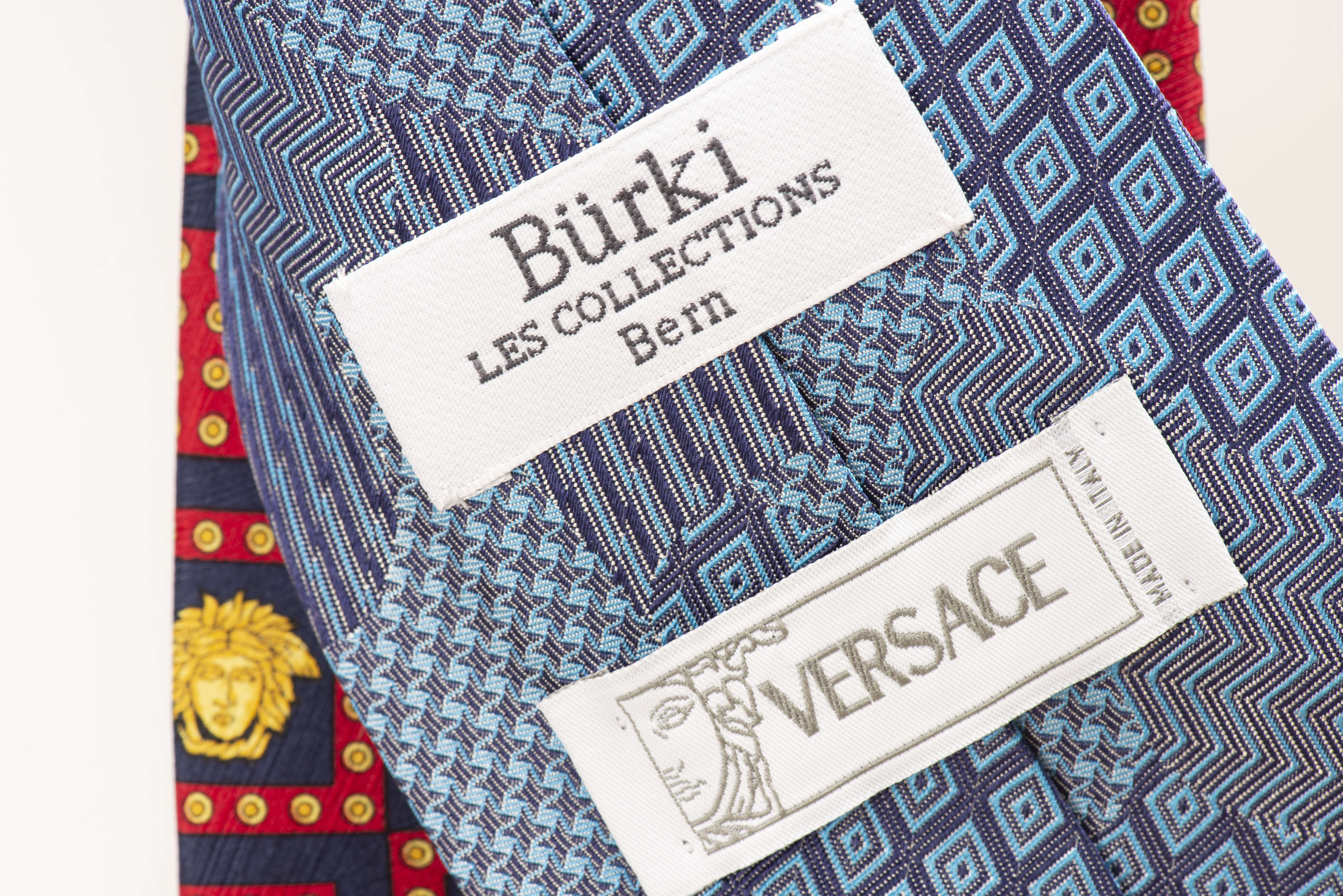 Ensemble de neuf cravates en soie signées VERSACE et FERRE