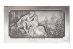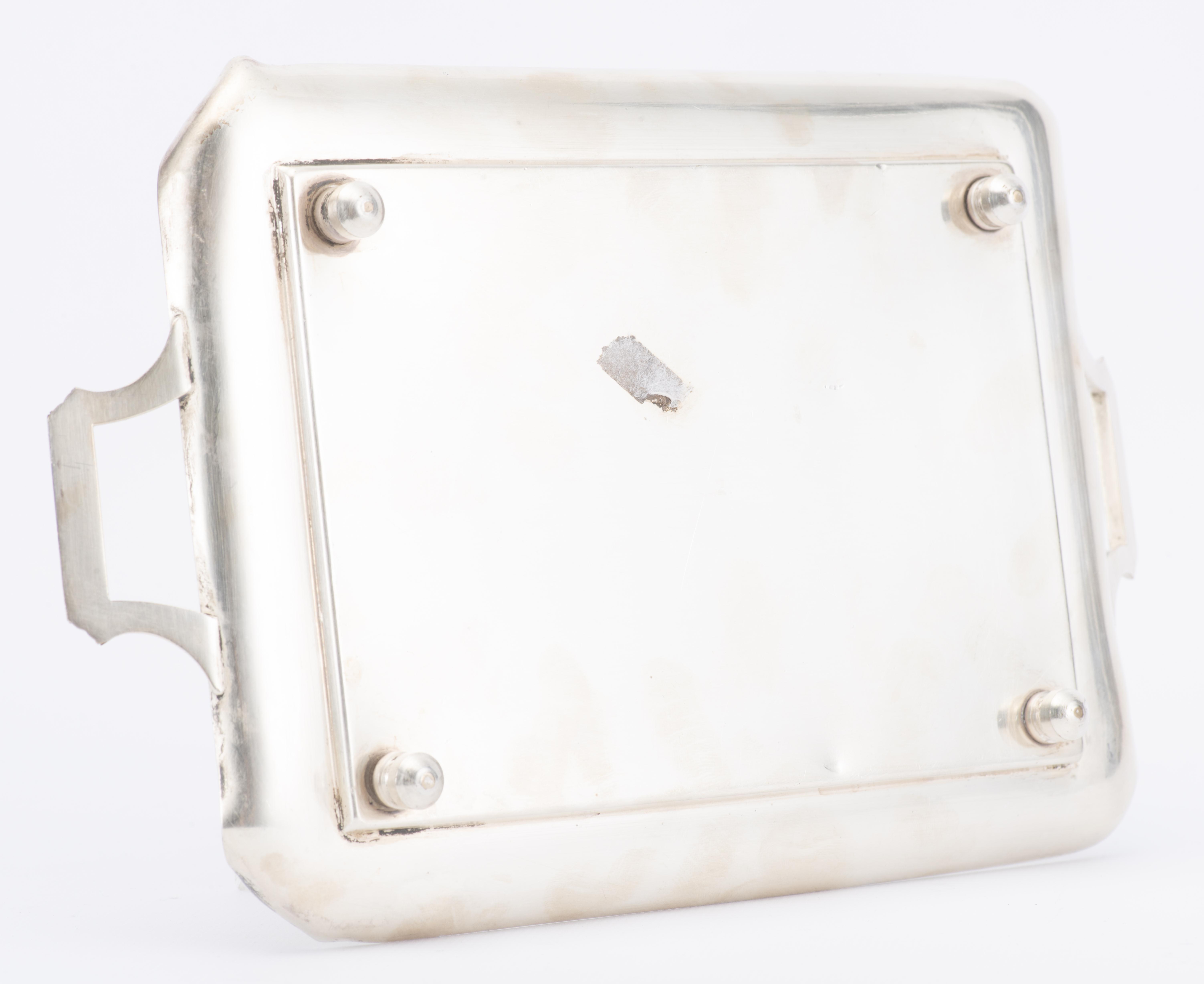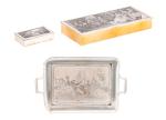 Ensemble de pièces en cuivre argenté à décor de scènes en léger relief gravé comprenant :