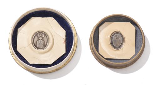 Ensemble de quatre bracelets esclaves et une entrave en laiton