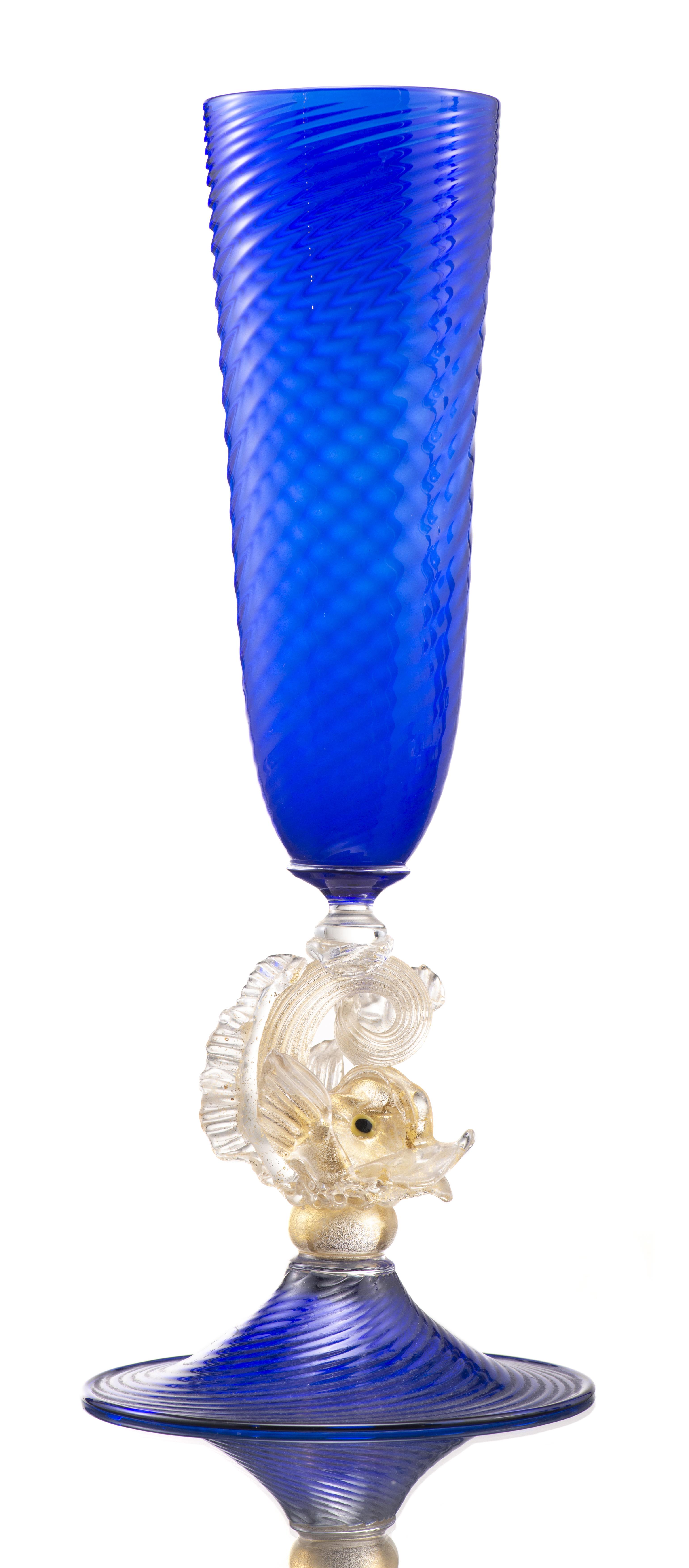 - 1 vase allongé sur piédouche à tige en forme de poisson, H. 30.5 cm & Diam. 12.5 cm