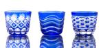 - 3 petites coupelles en cristal taillé bicolore bleu et blanc, H. 6 cm & Diam. 7.3 cm