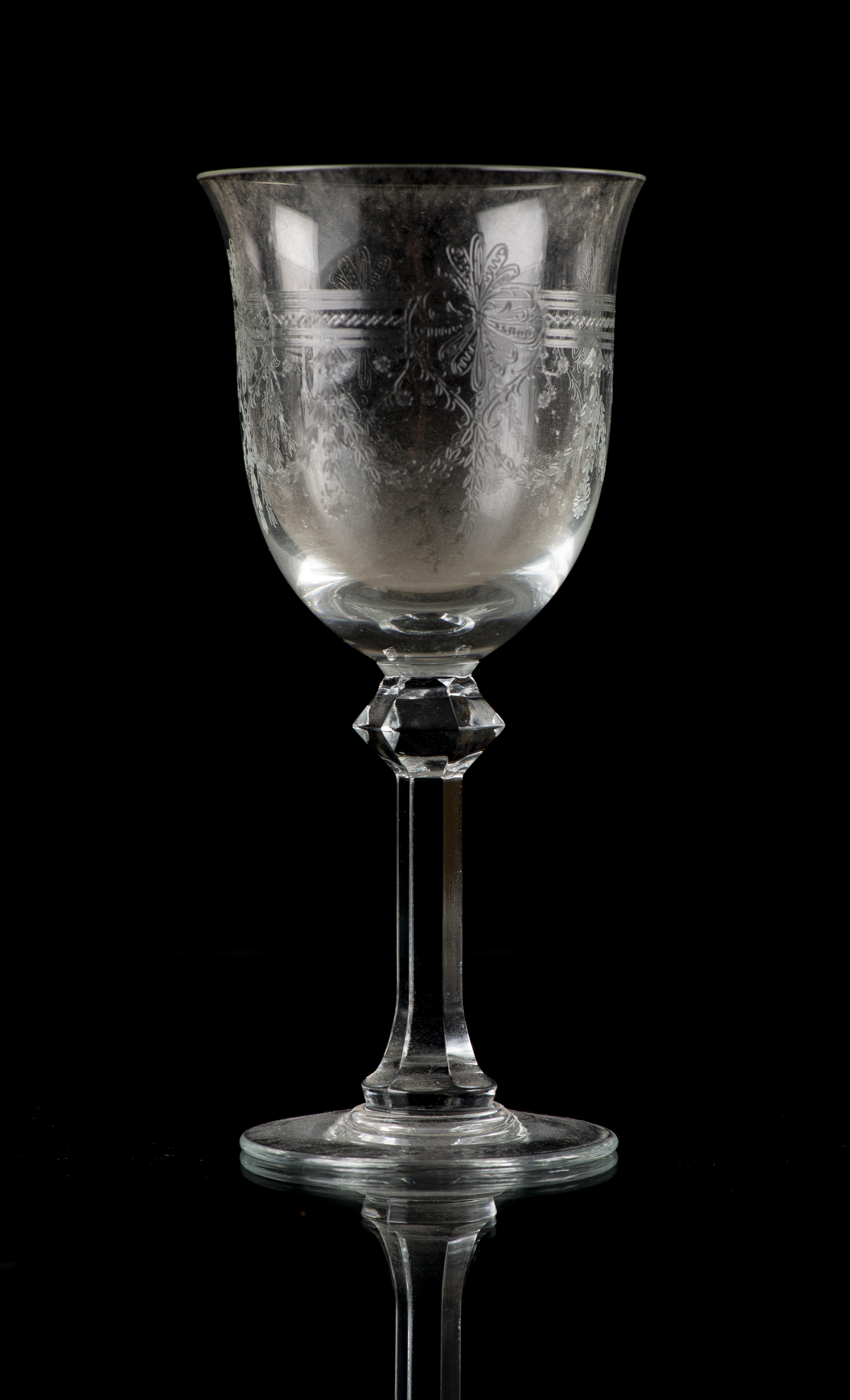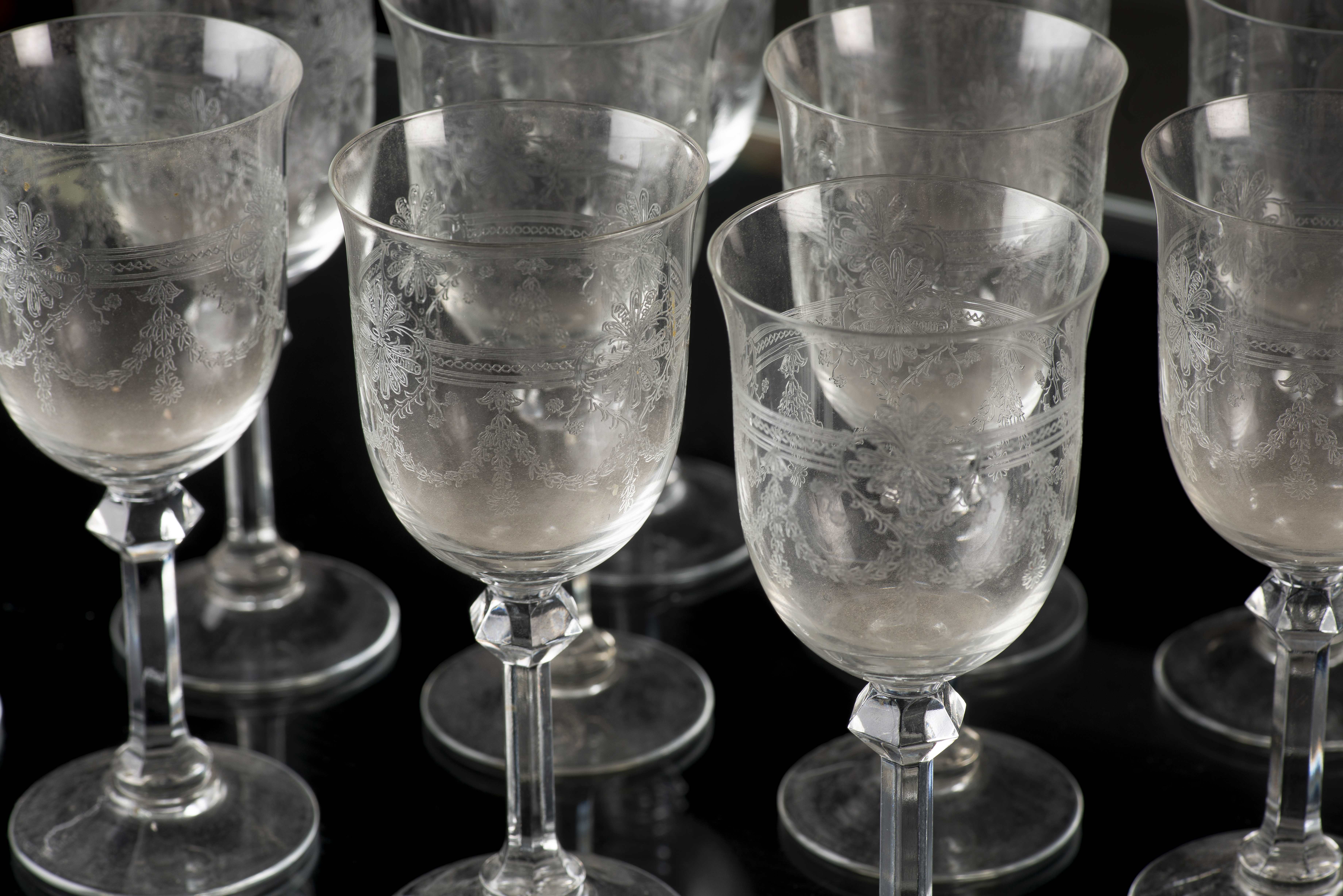 Ensemble de verres en cristal gravé à décor de guirlandes comprenant :