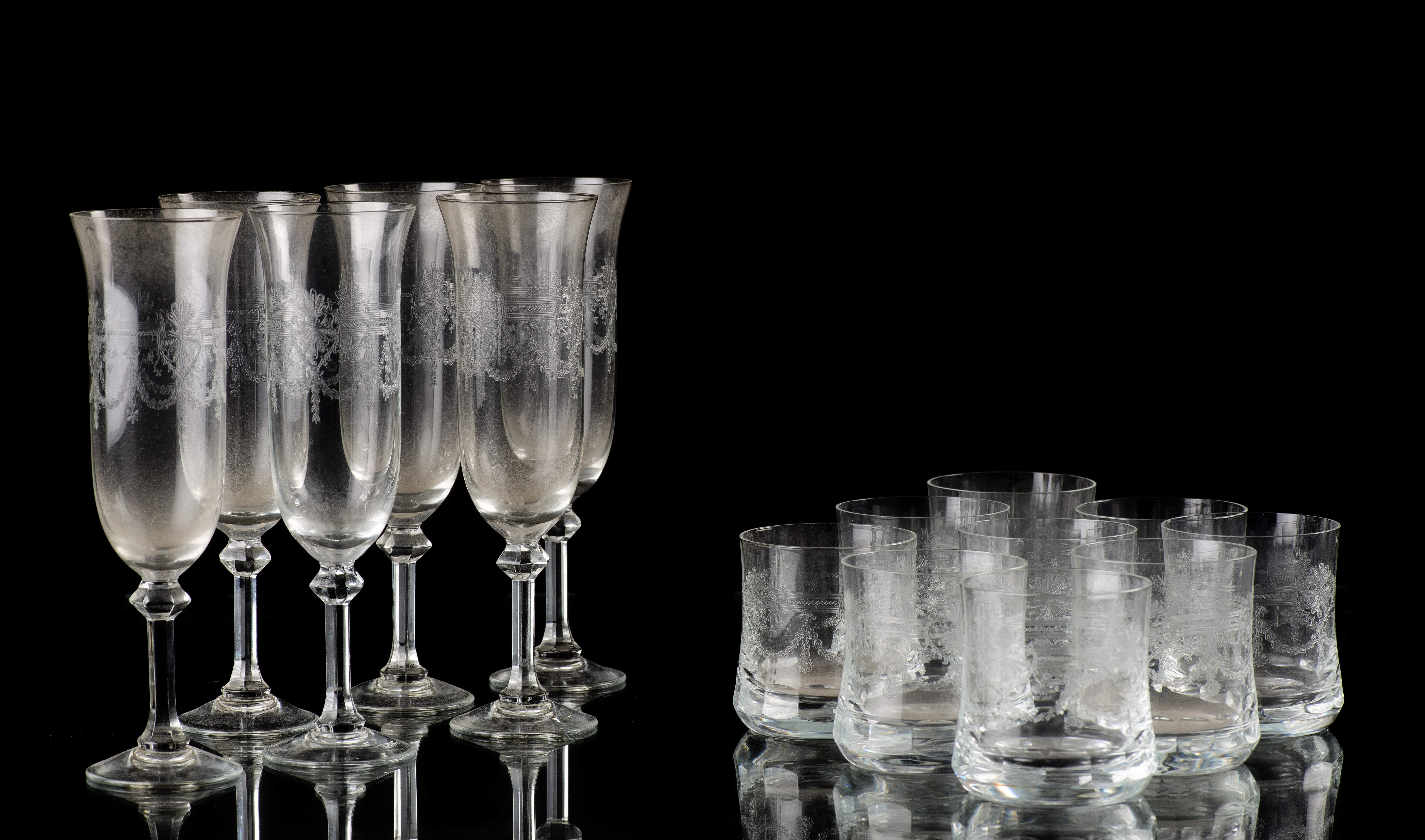 Ensemble de verres en cristal gravé à décor de guirlandes