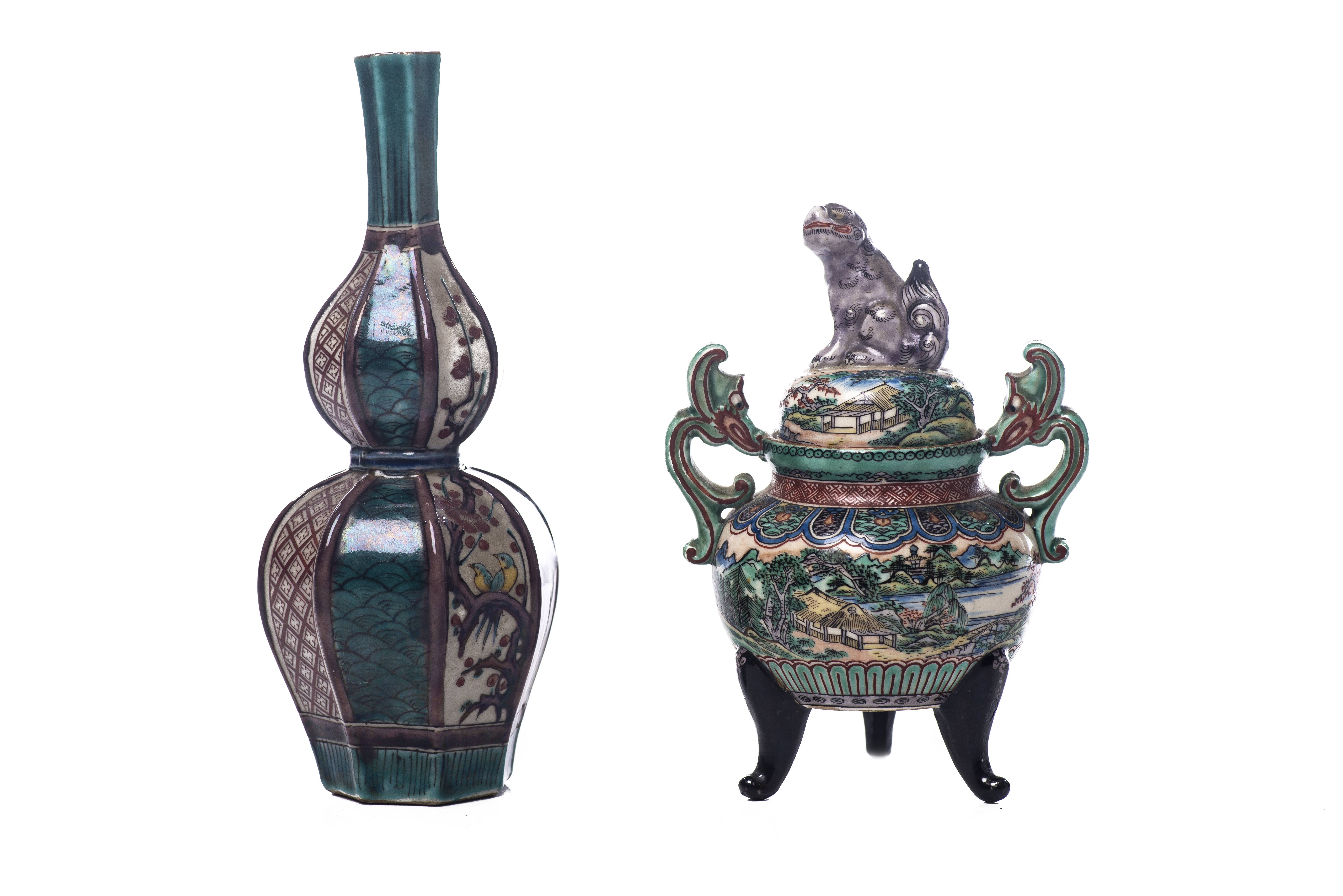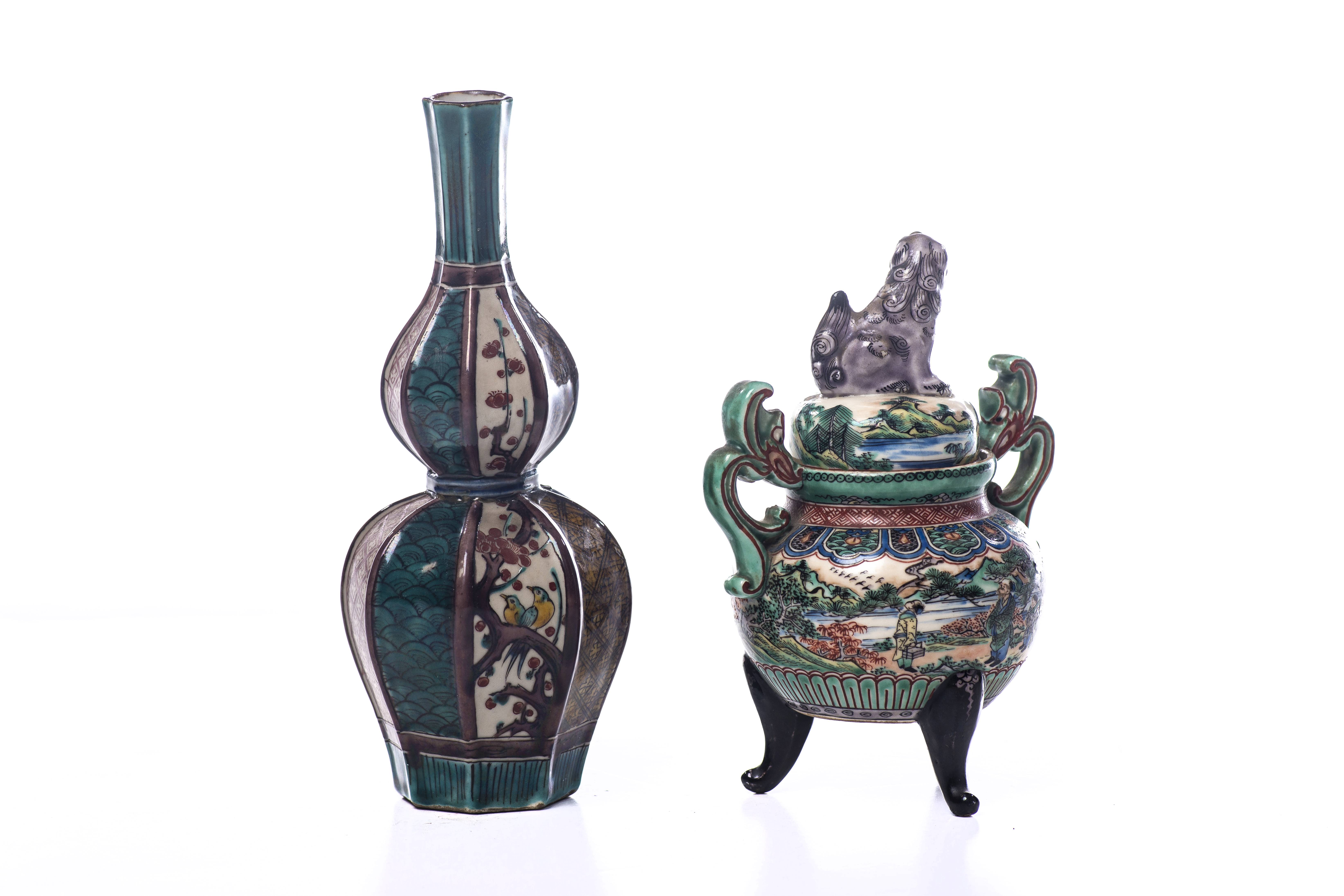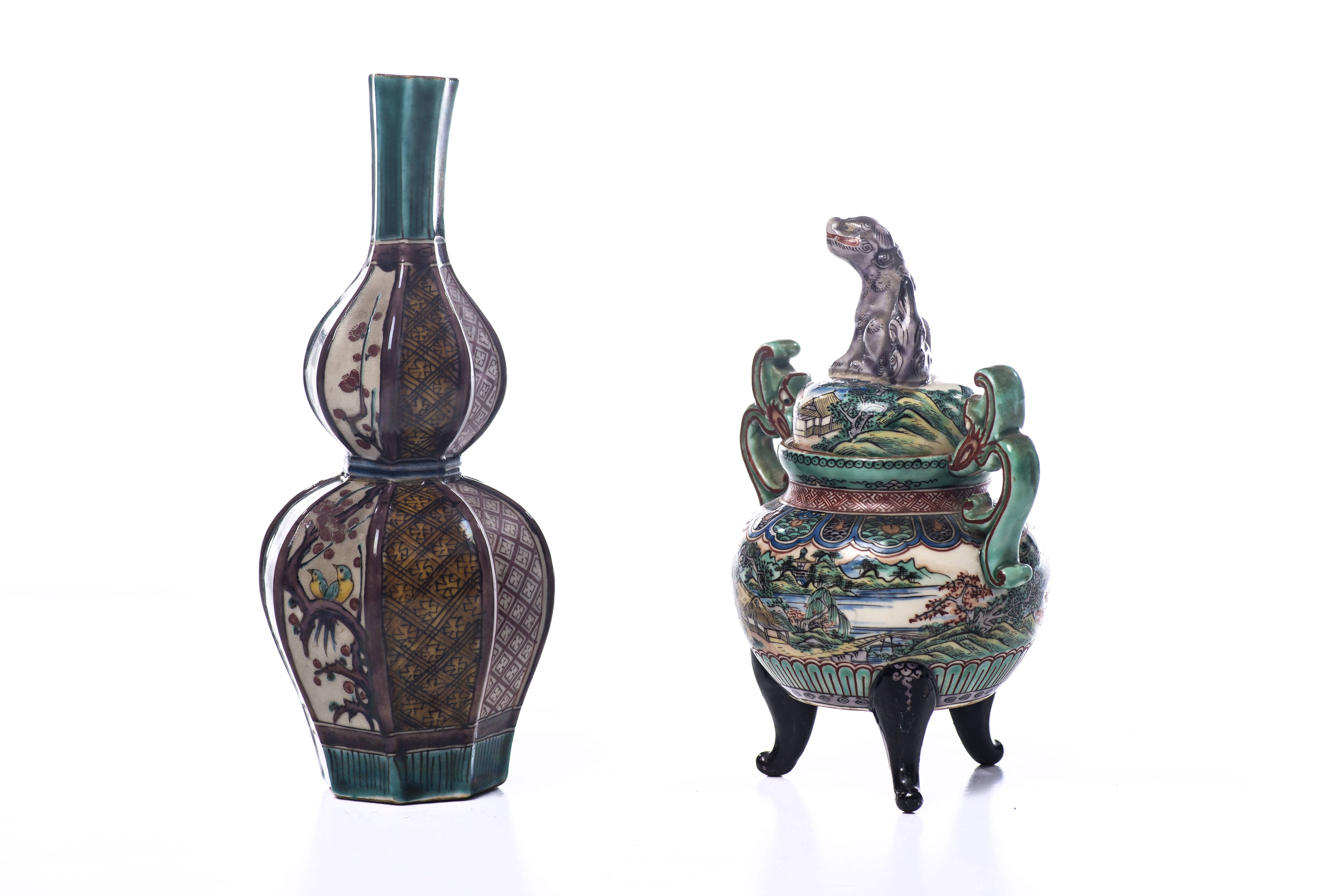 Ensemble formé d'un vase et d'un brûle-parfum en porcelaine Kutani