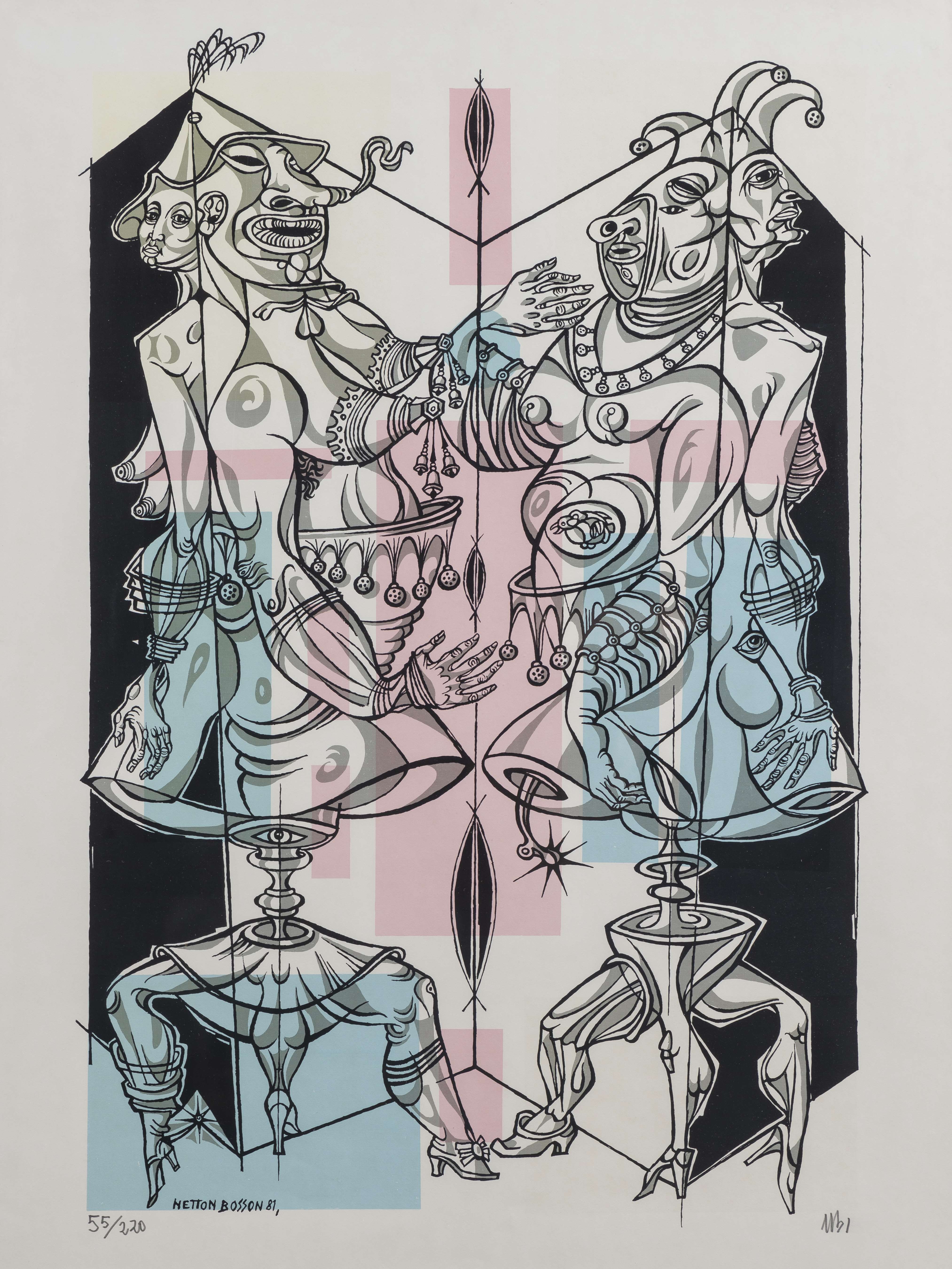 Lithographie, signée dans la plaque et datée 81, monogramme au crayon en bas à droite. Tirage 55/220 exemplaires.