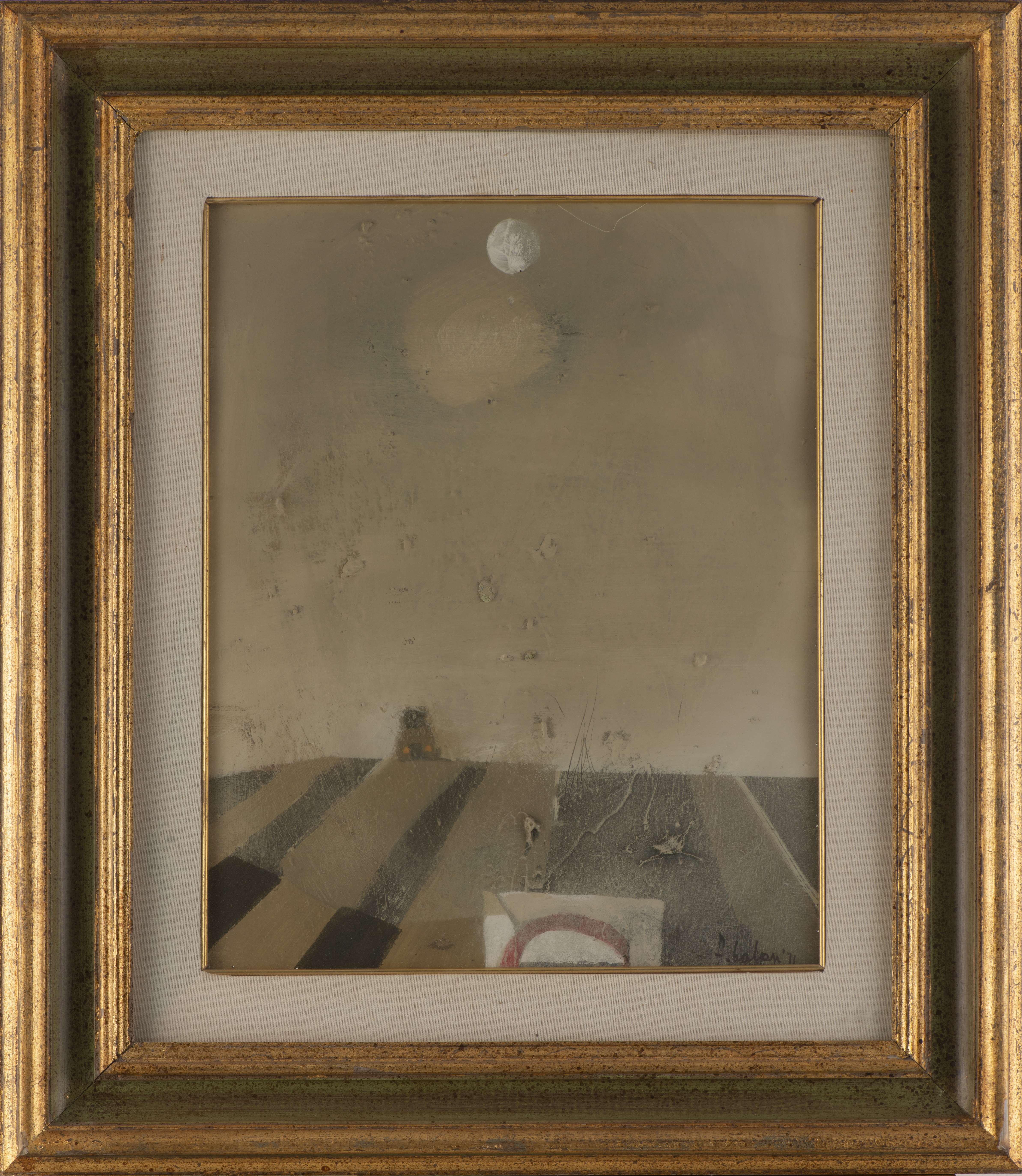 F. BALAN (XXe) "Paysage avec lune", huile sur carton, signé en bas à droite et daté 1971.