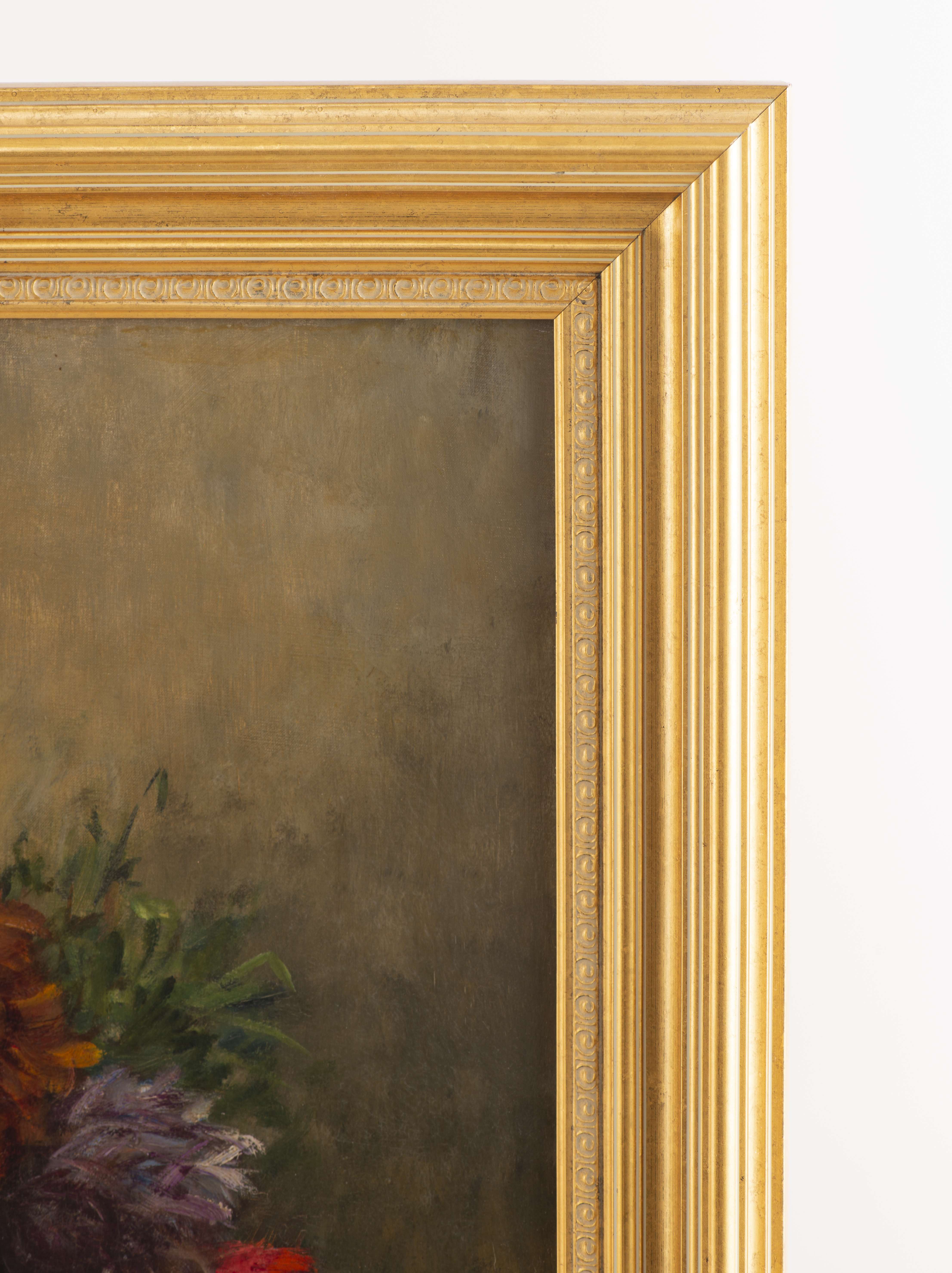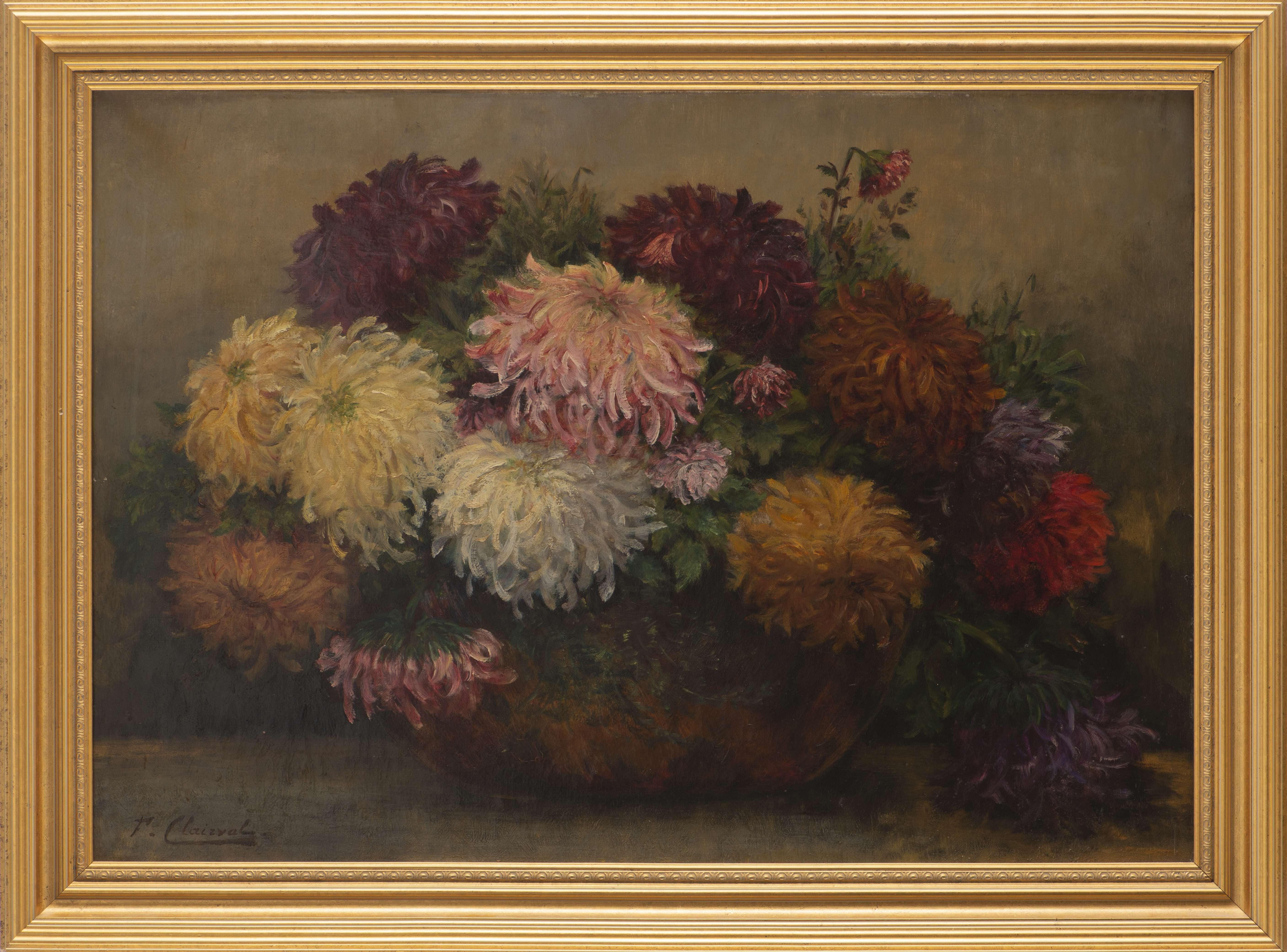 F. CLAIRVAL (XIXe) " Still life of chysanthemums in a bowl", huile sur toile signé en bas à gauche.