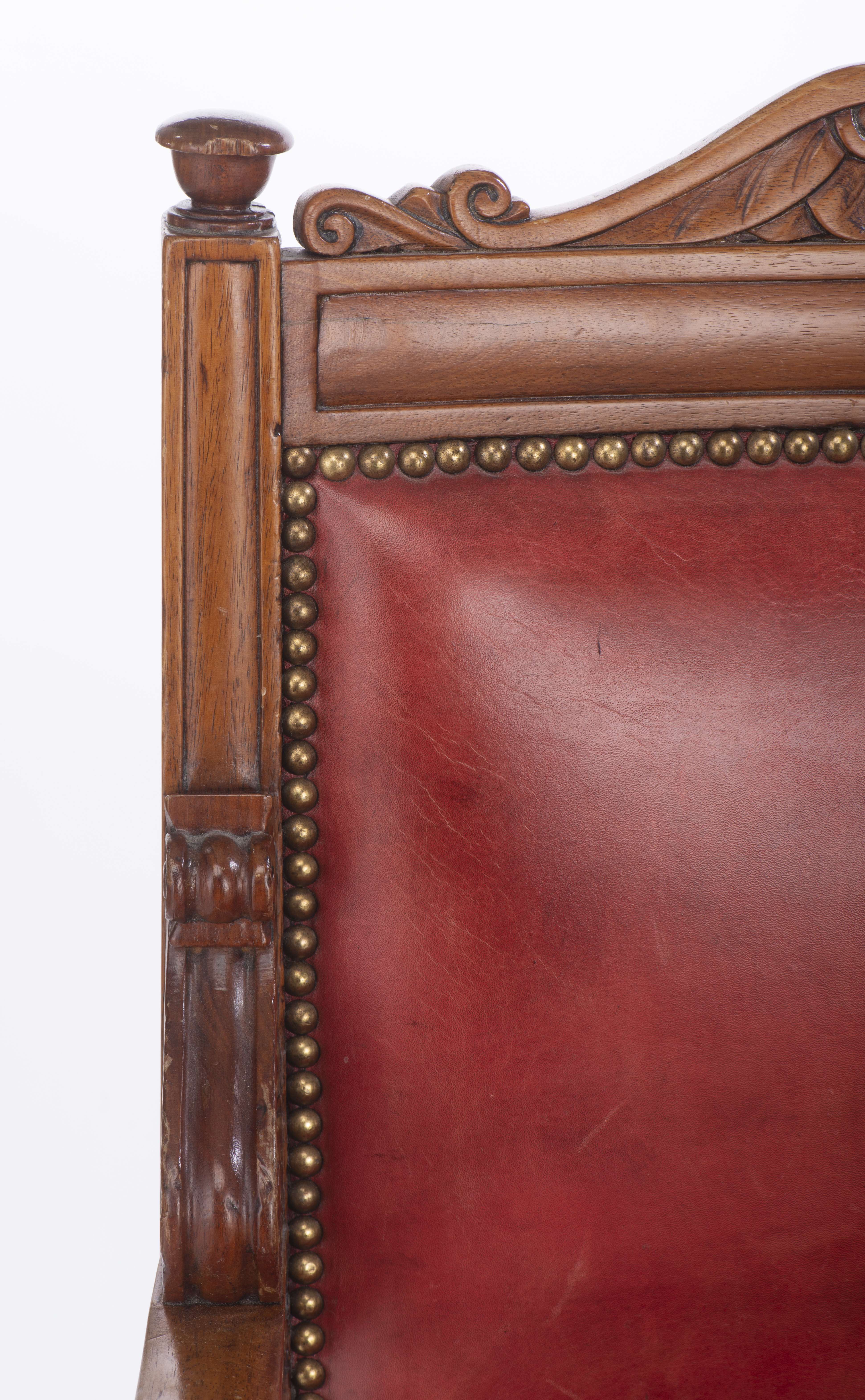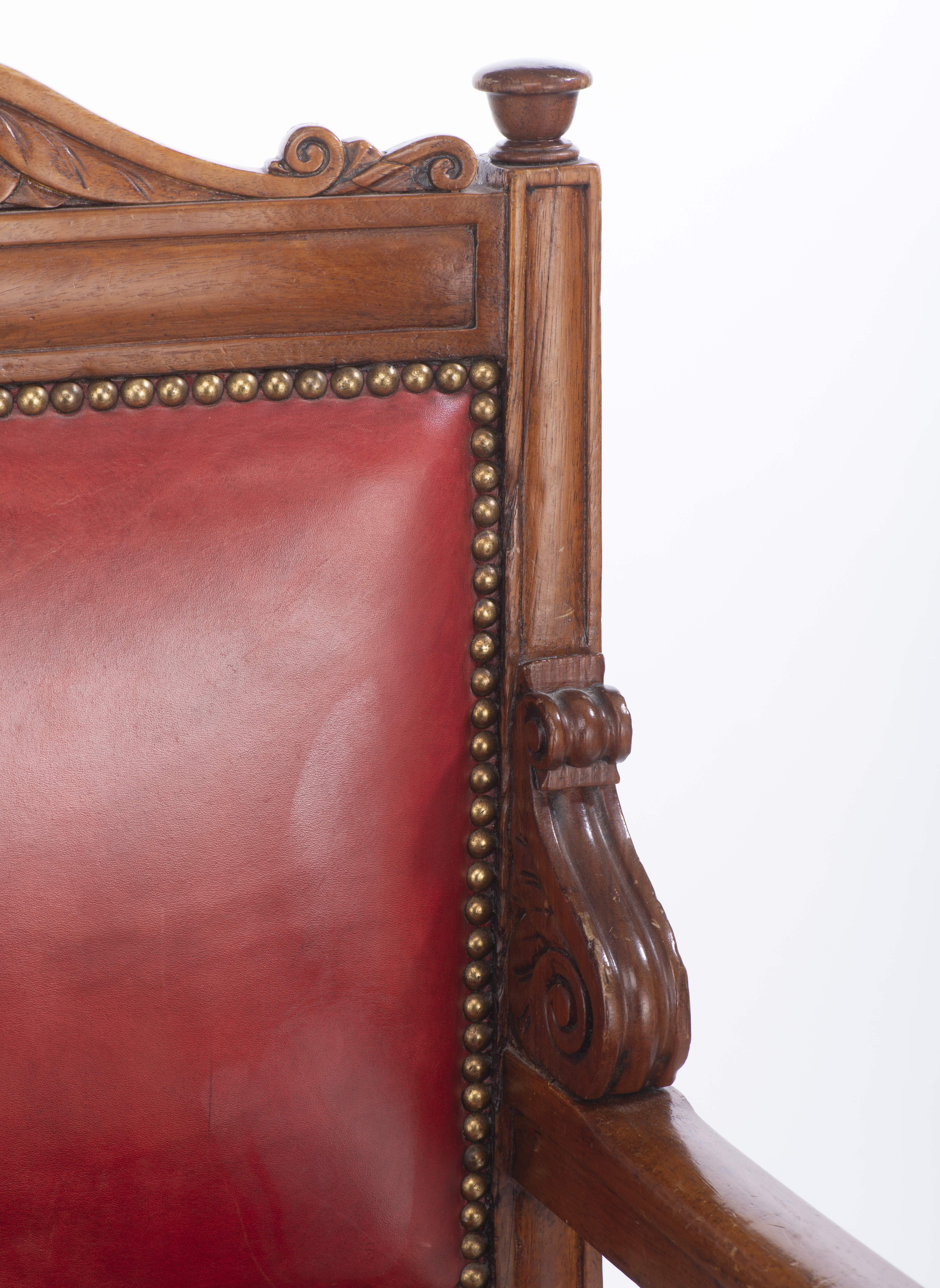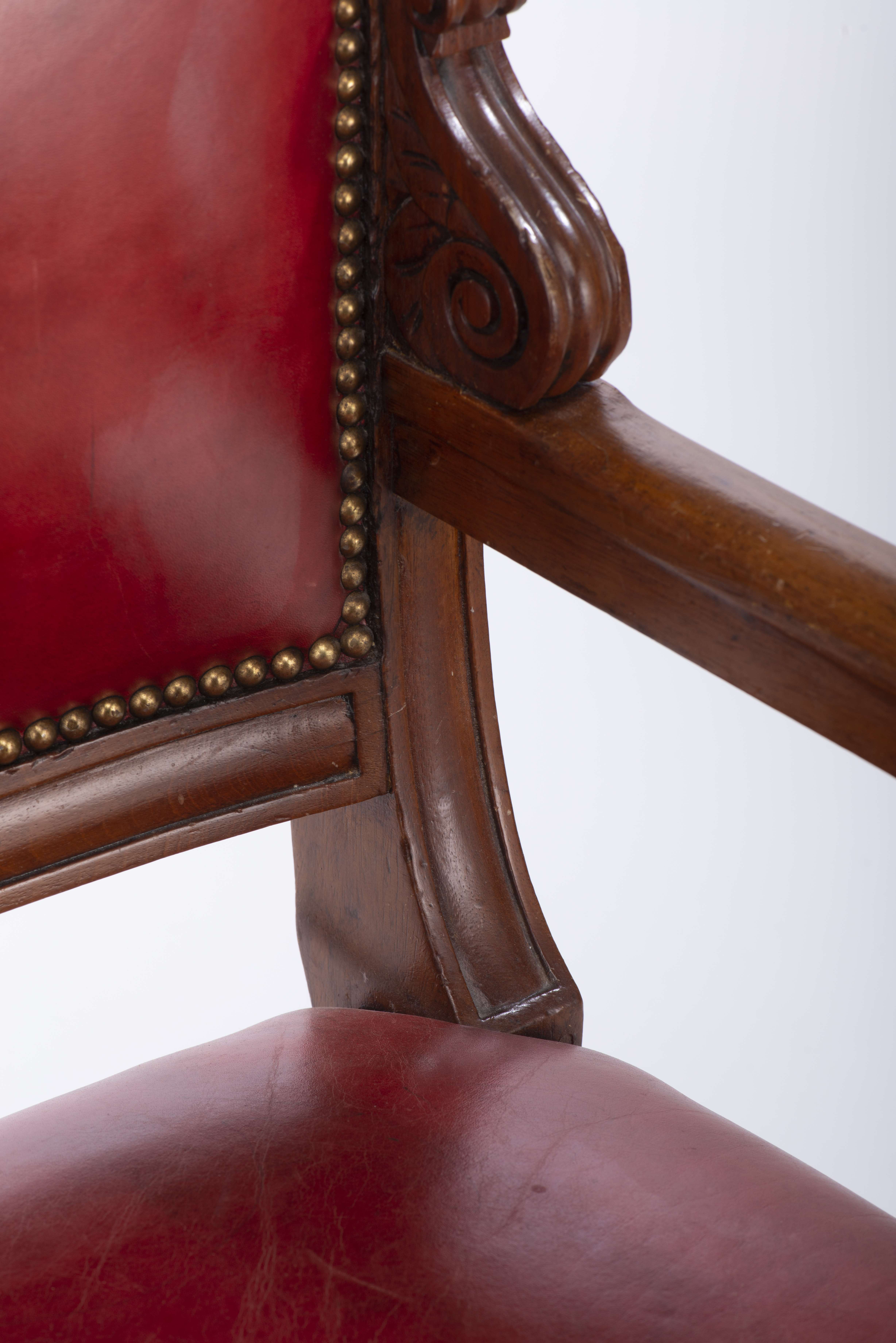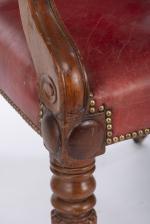 Fauteuil en bois sculpté et cuir rouge