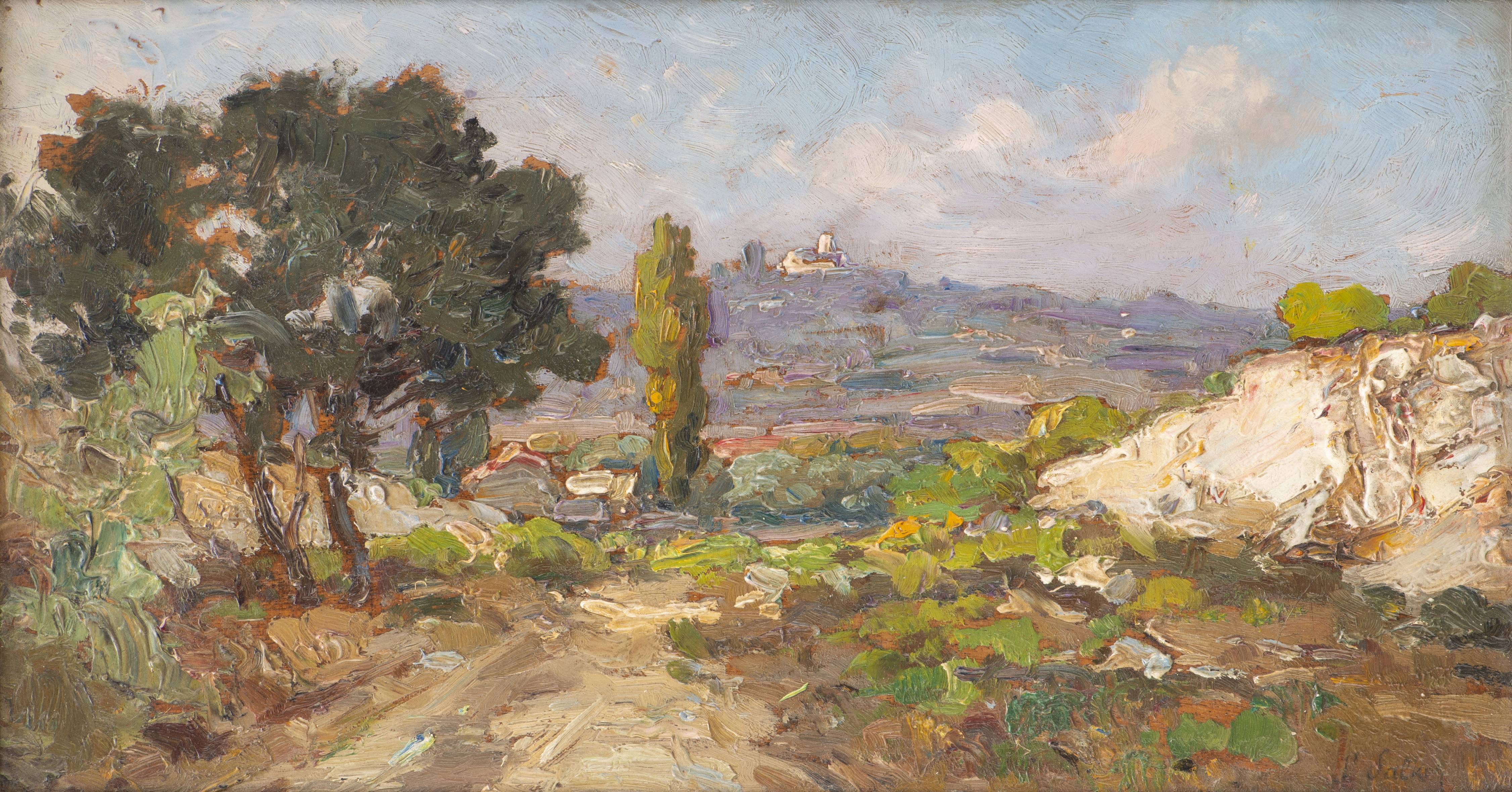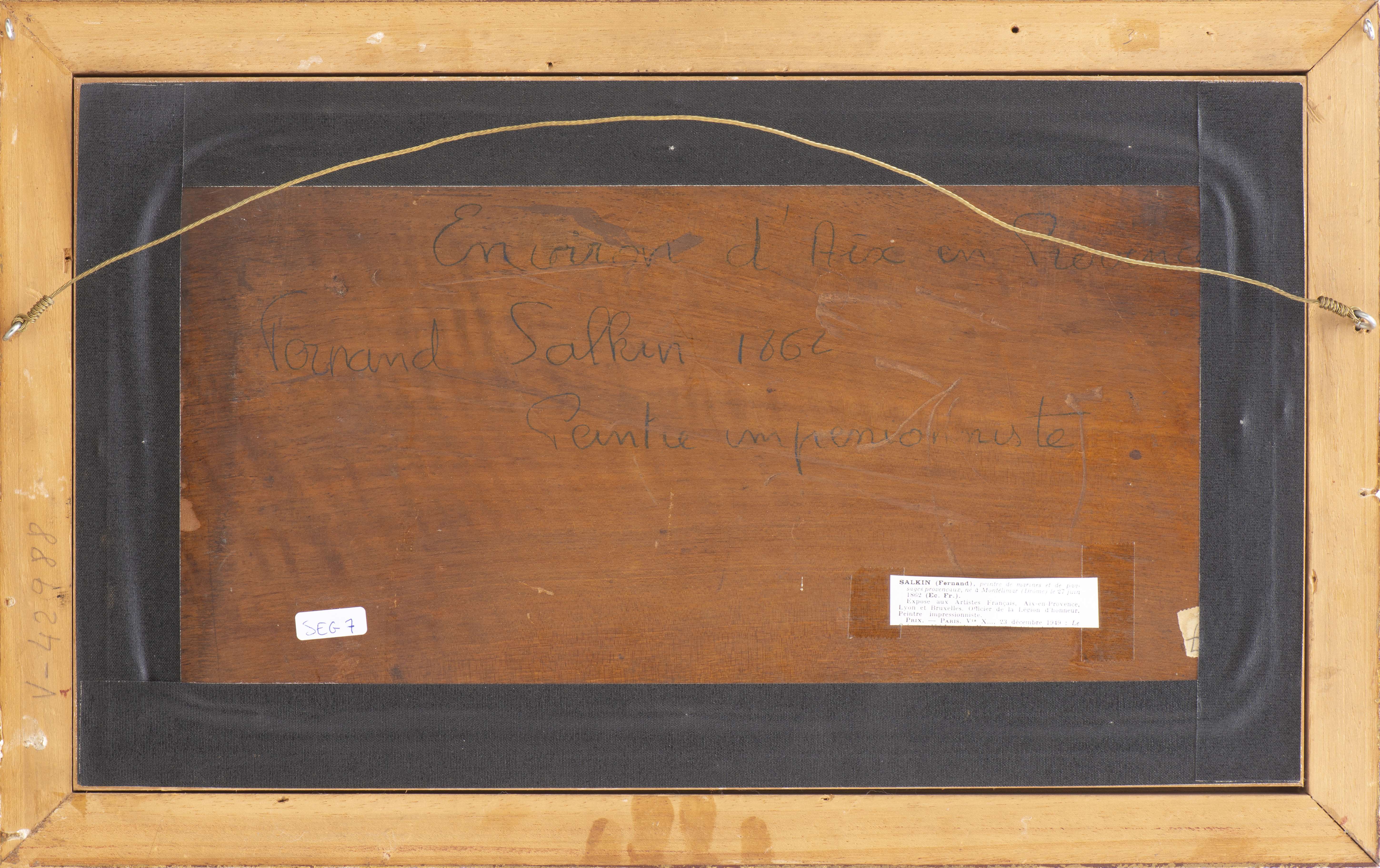 Fernand SALKIN (1862-1914), "Environs d'Aix en Provence", huile sur panneau, sbd