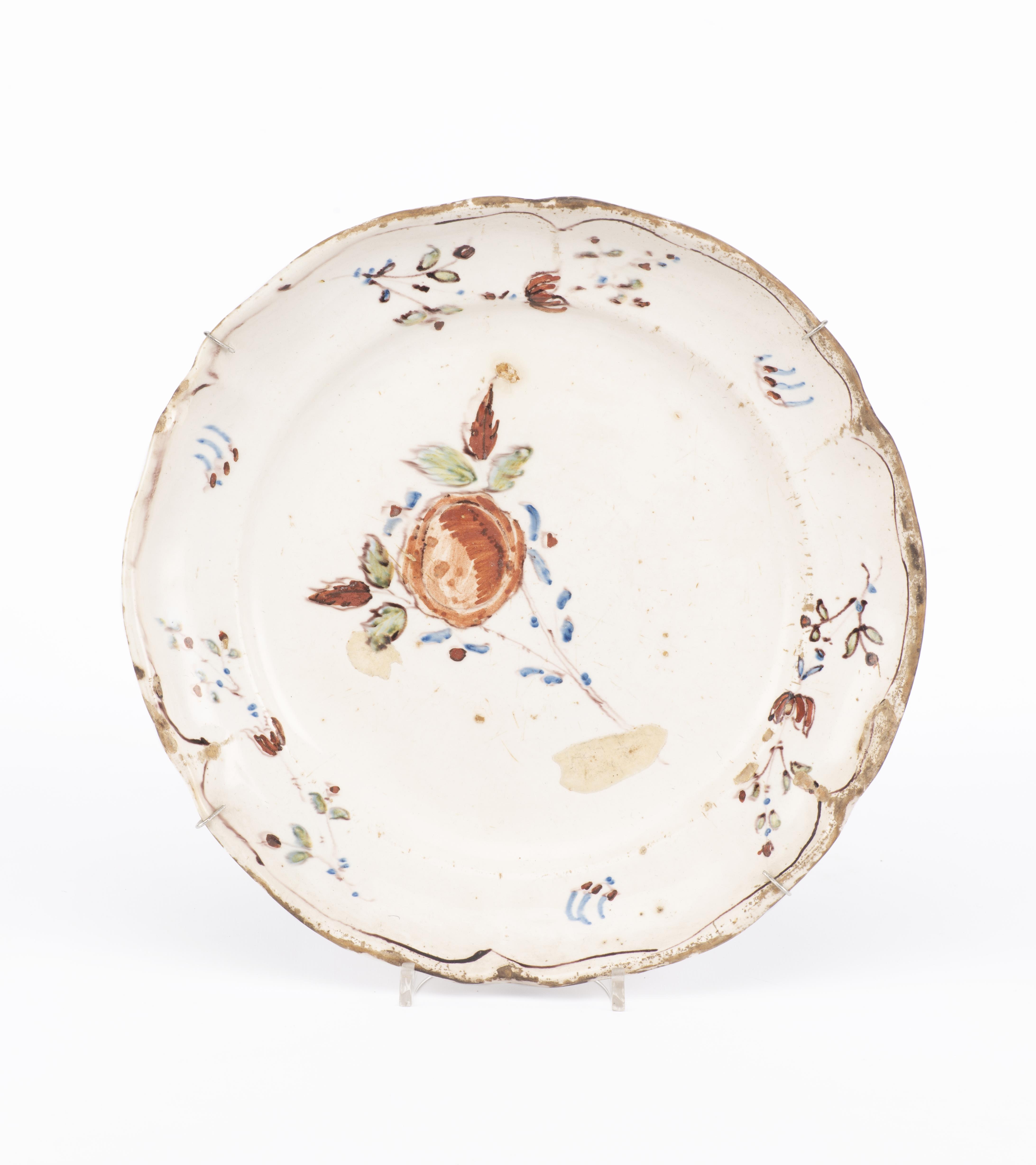 France XVIIIe, plat en faïence à décor floral à glaçure plombifère.