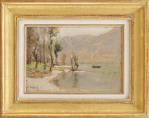 Frédéric DUFAUX(1852-1943), "Ascona". Huile sur panneau, sbg, située et datée 17 juillet 1919.