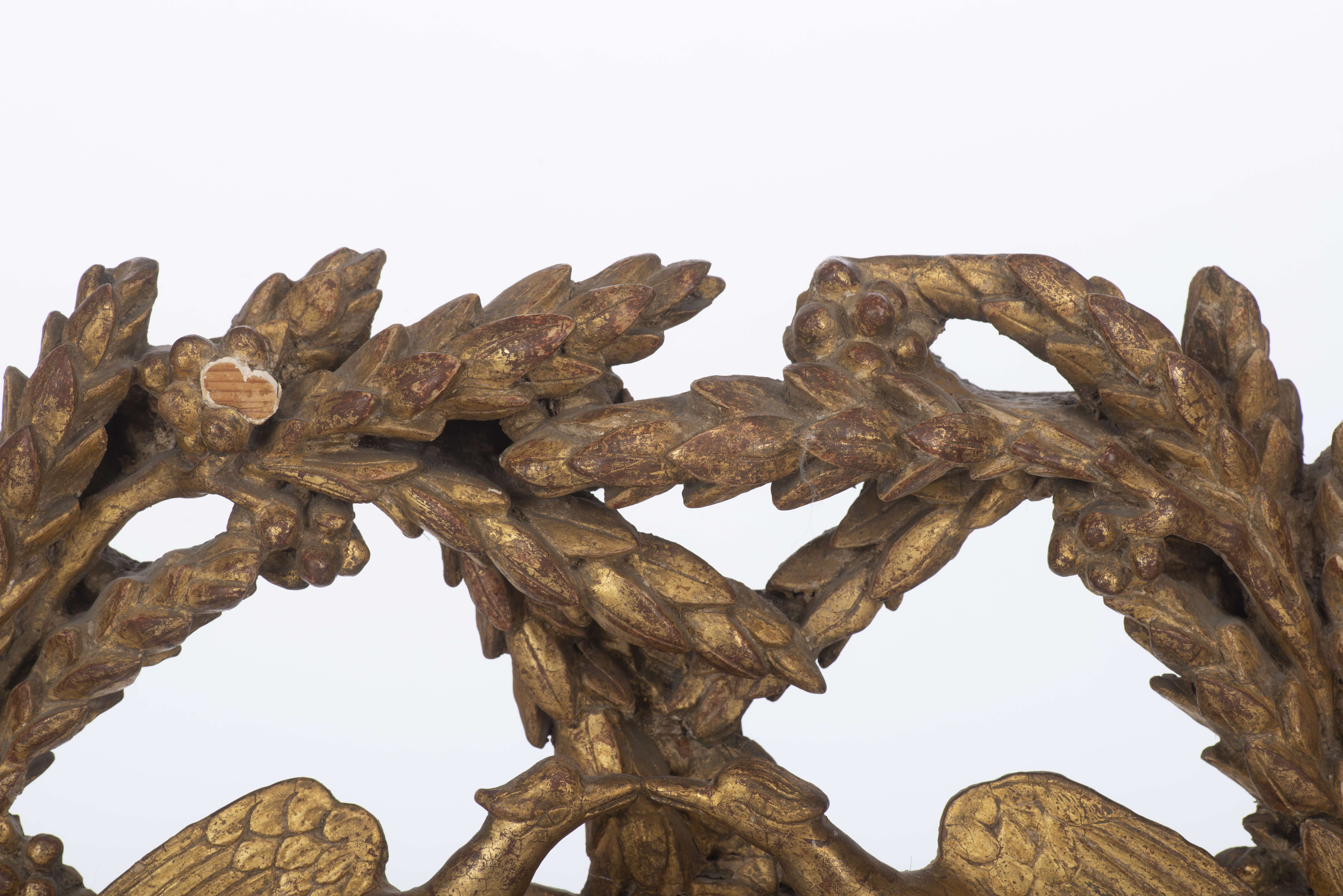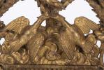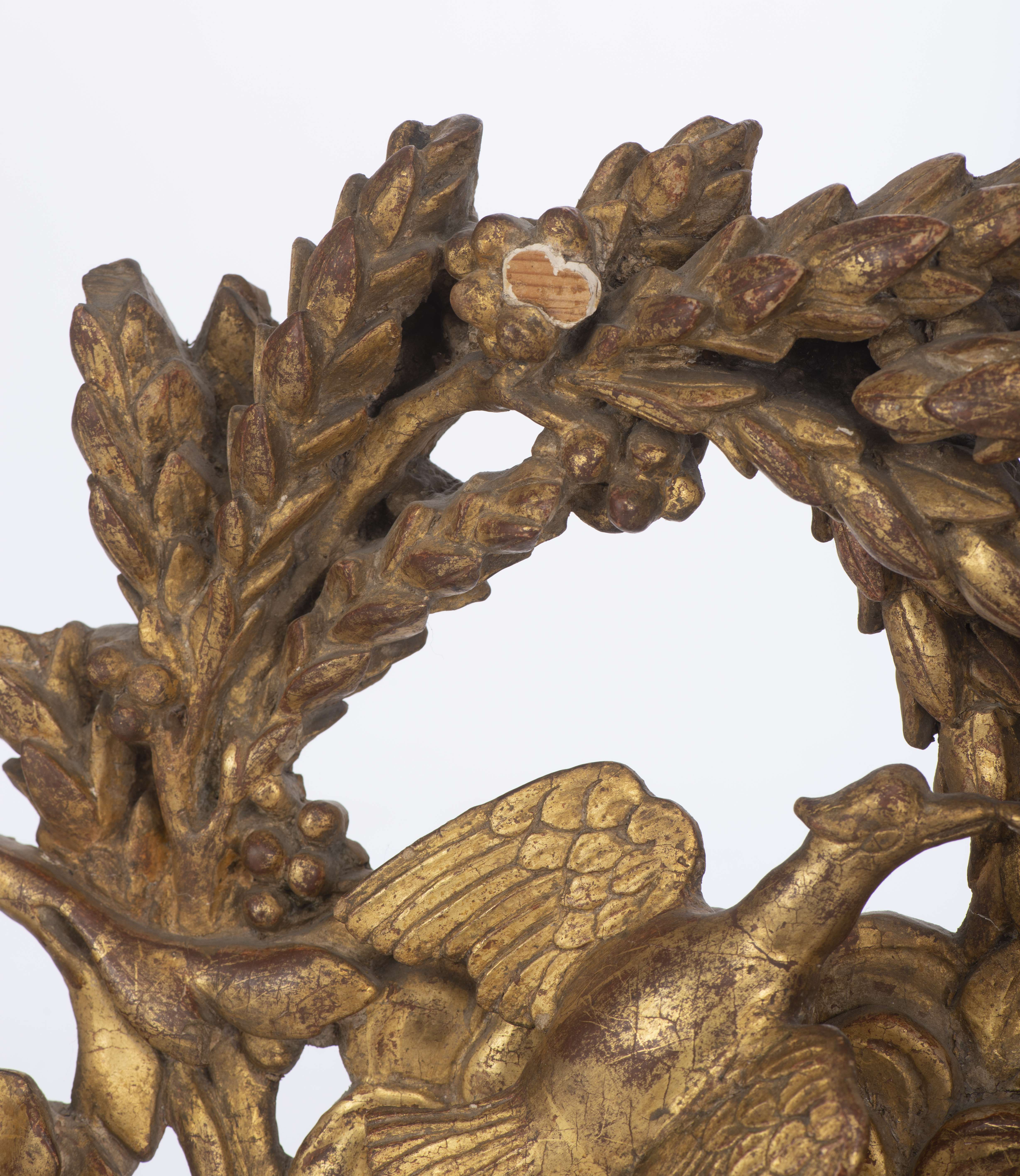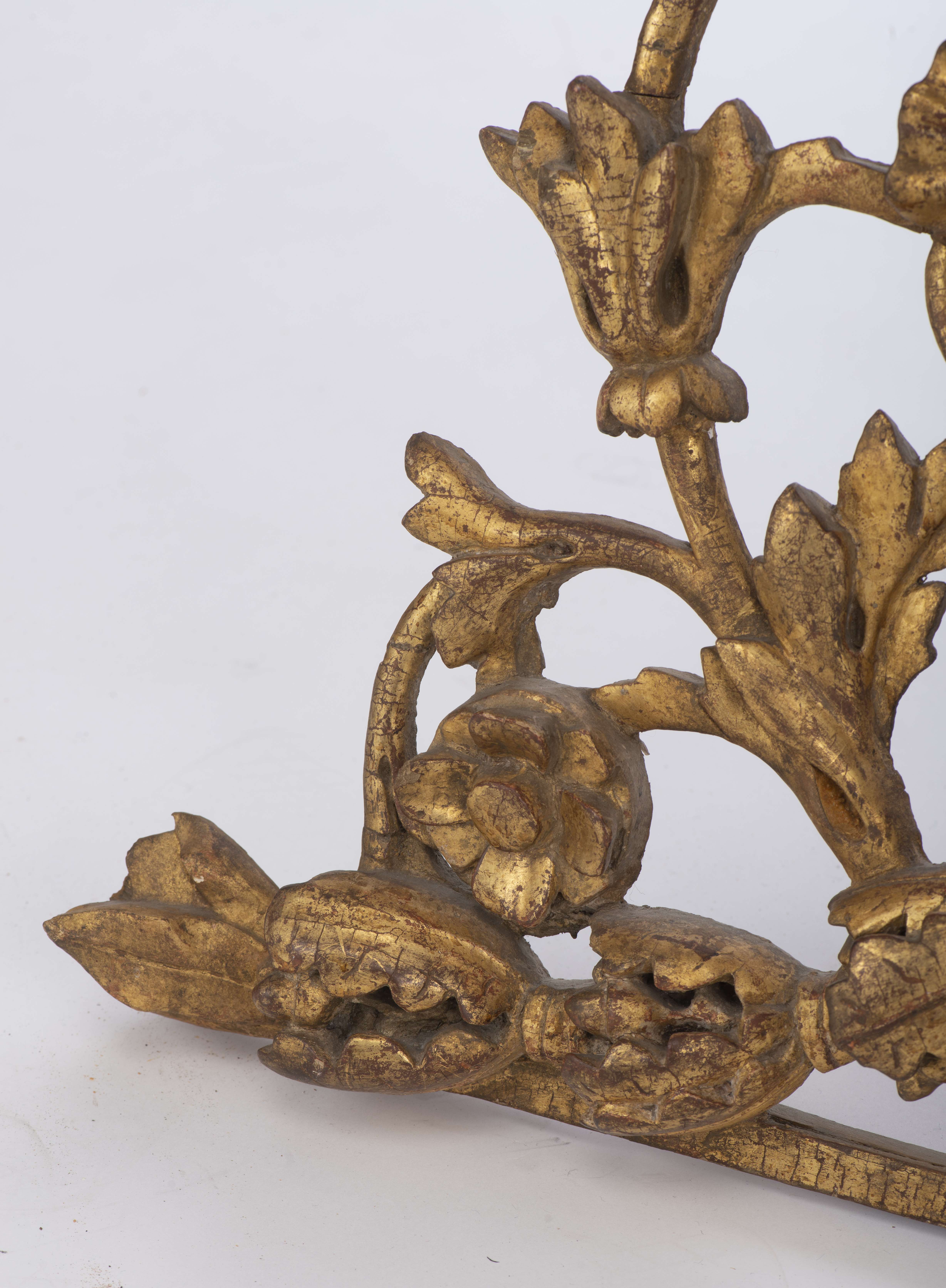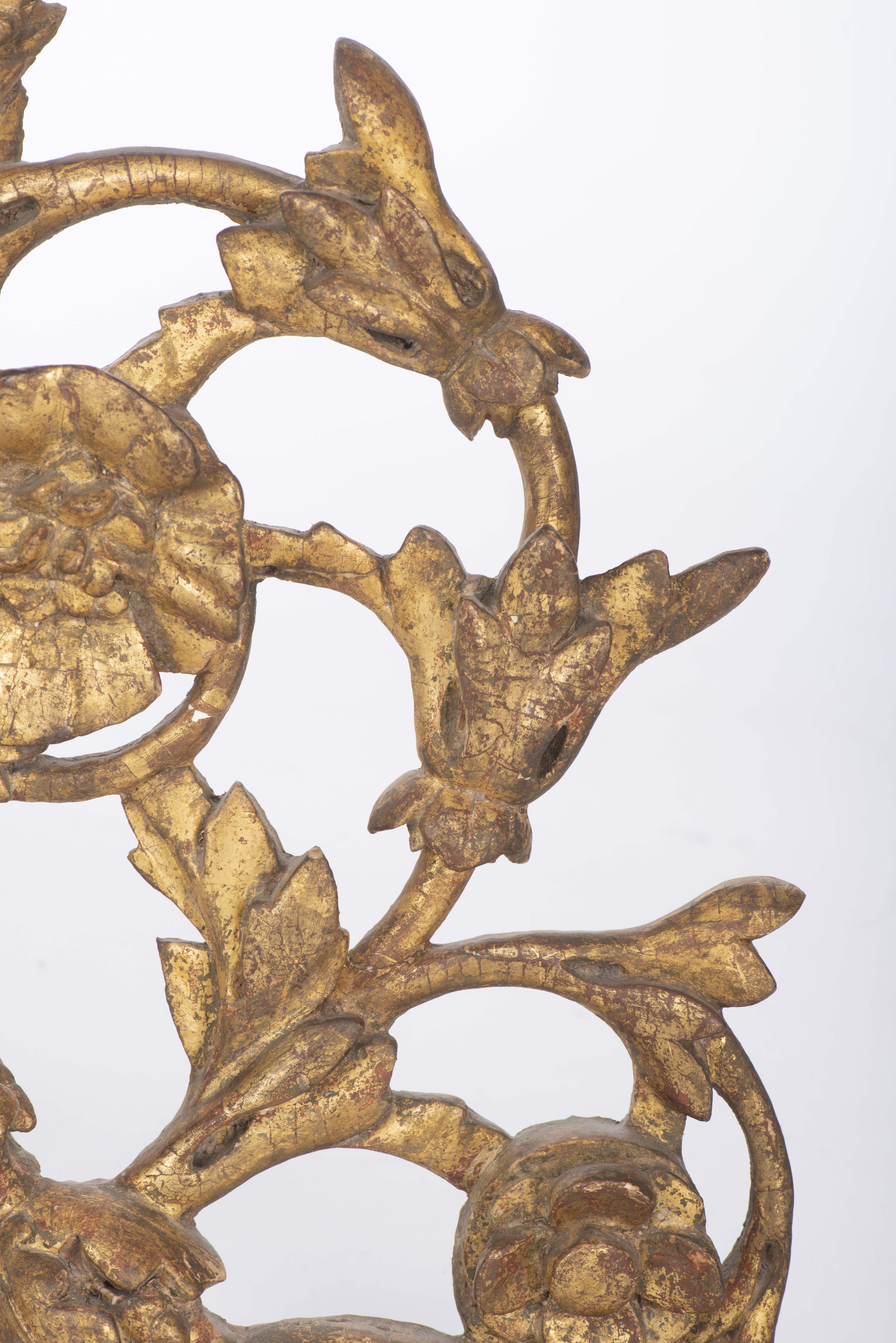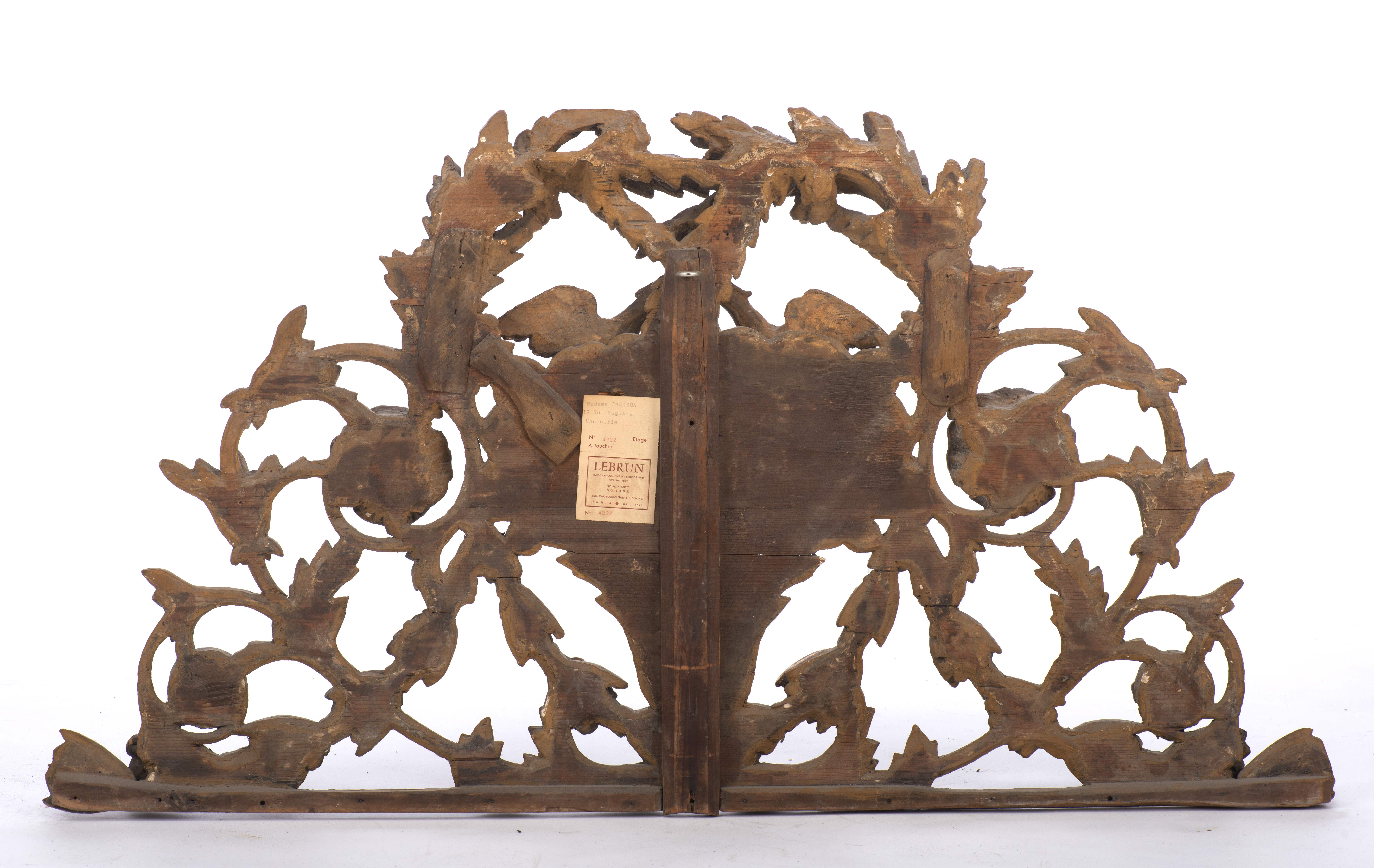 Fronton en bois doré sculpté ajouré à décor d'oiseaux et feuillage.