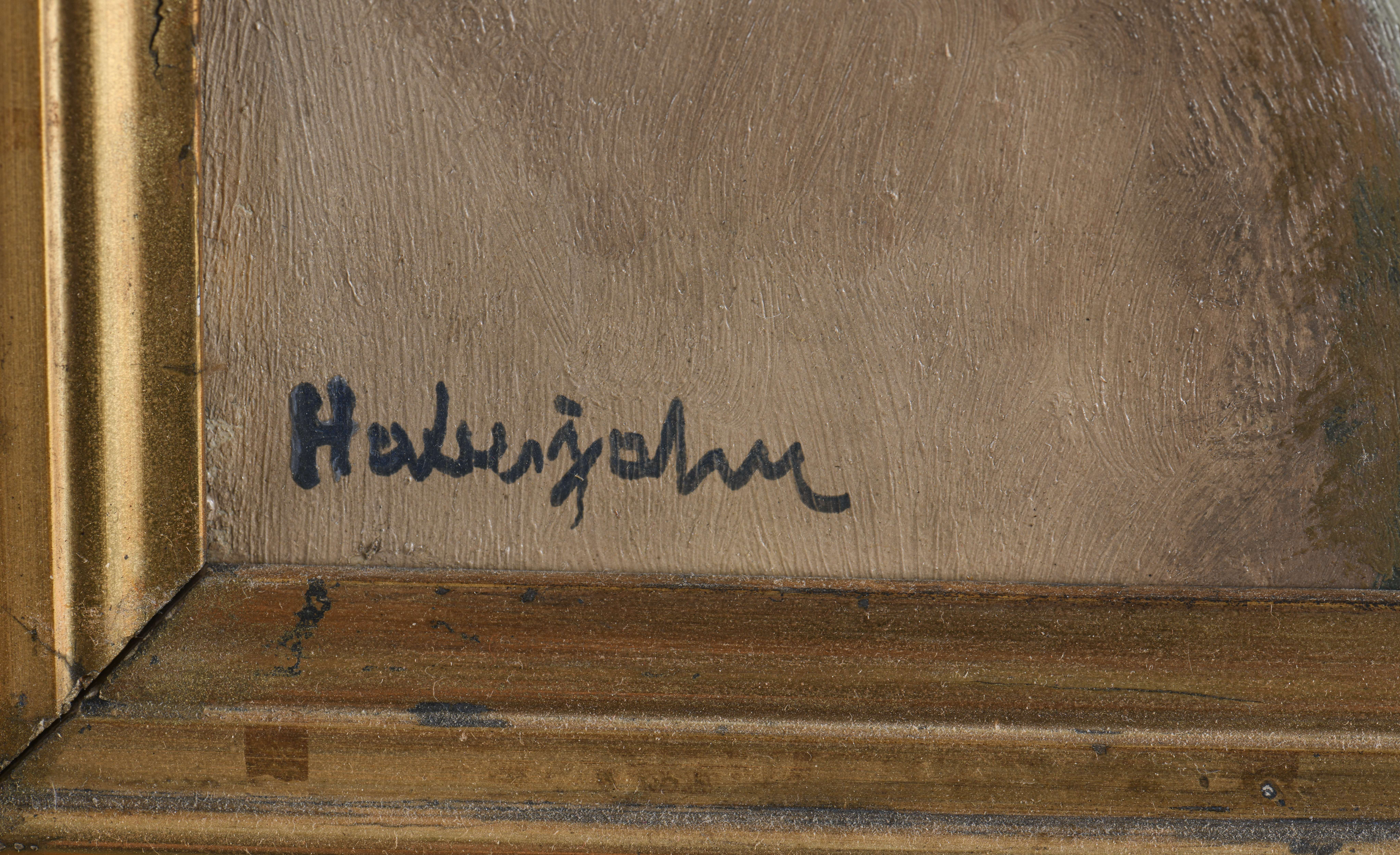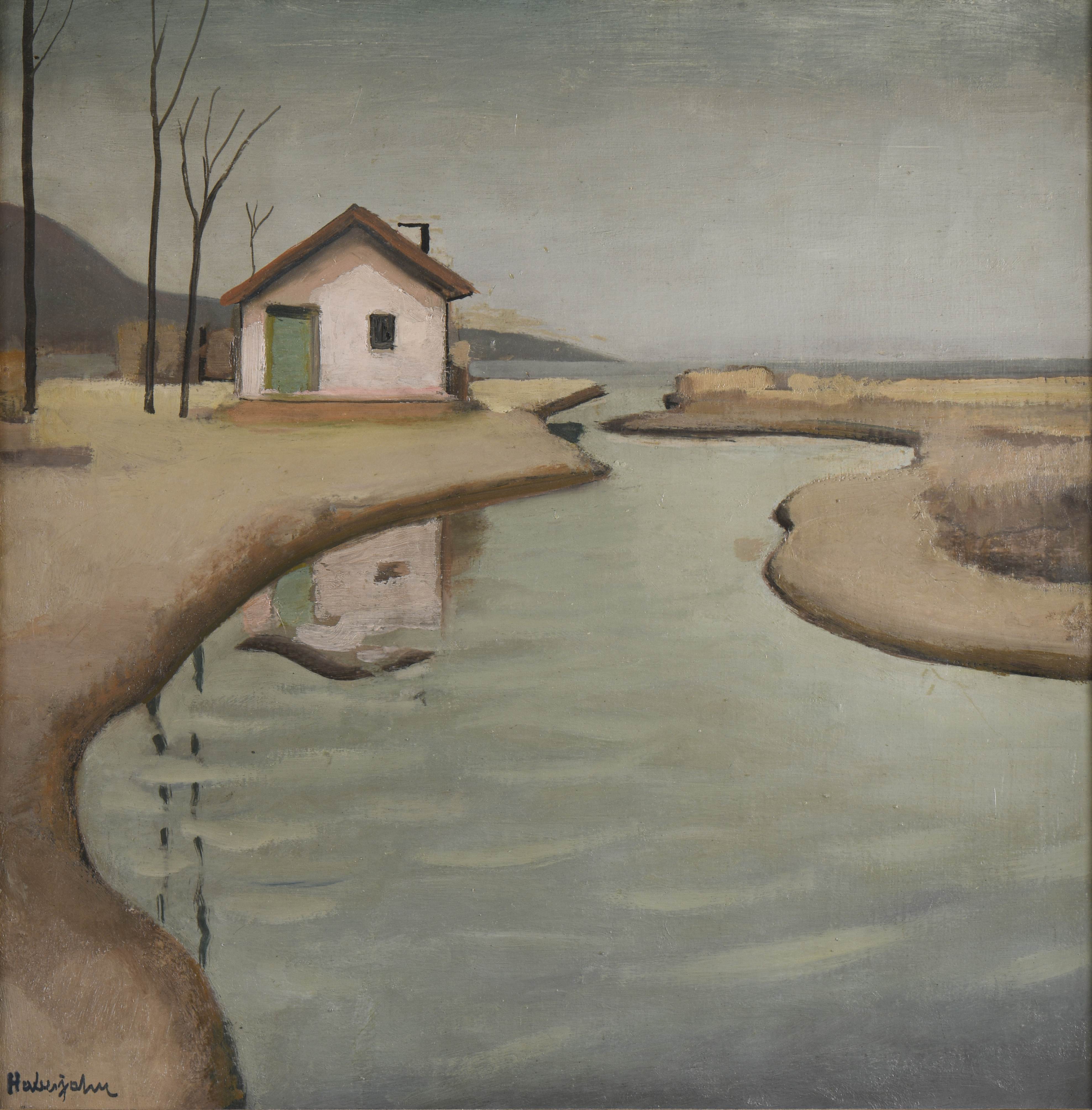 Gabriel Eduard HABERJAHN (1890-1956) "La maison rose près d'Yvonnan", huile sur toile signée en bas à gauche.