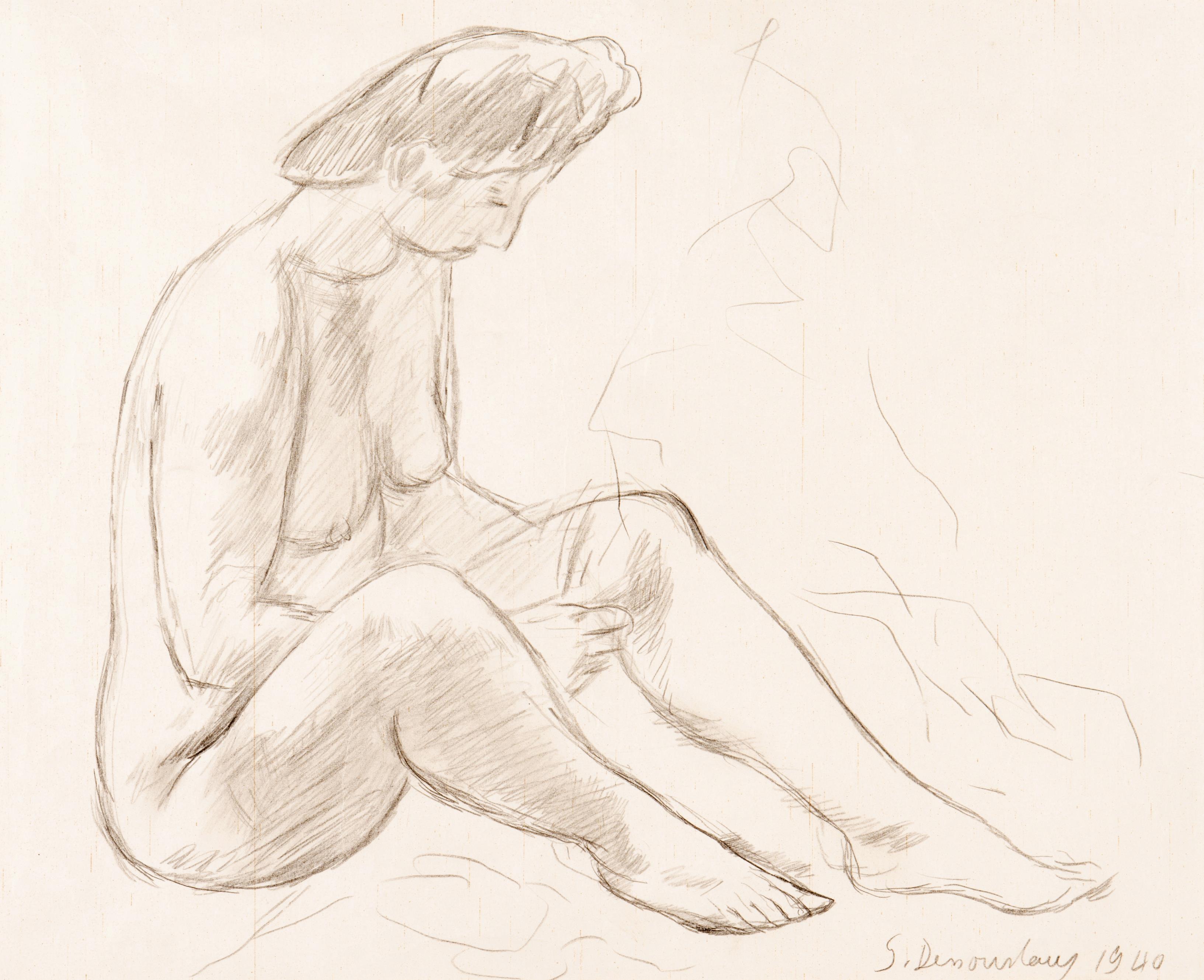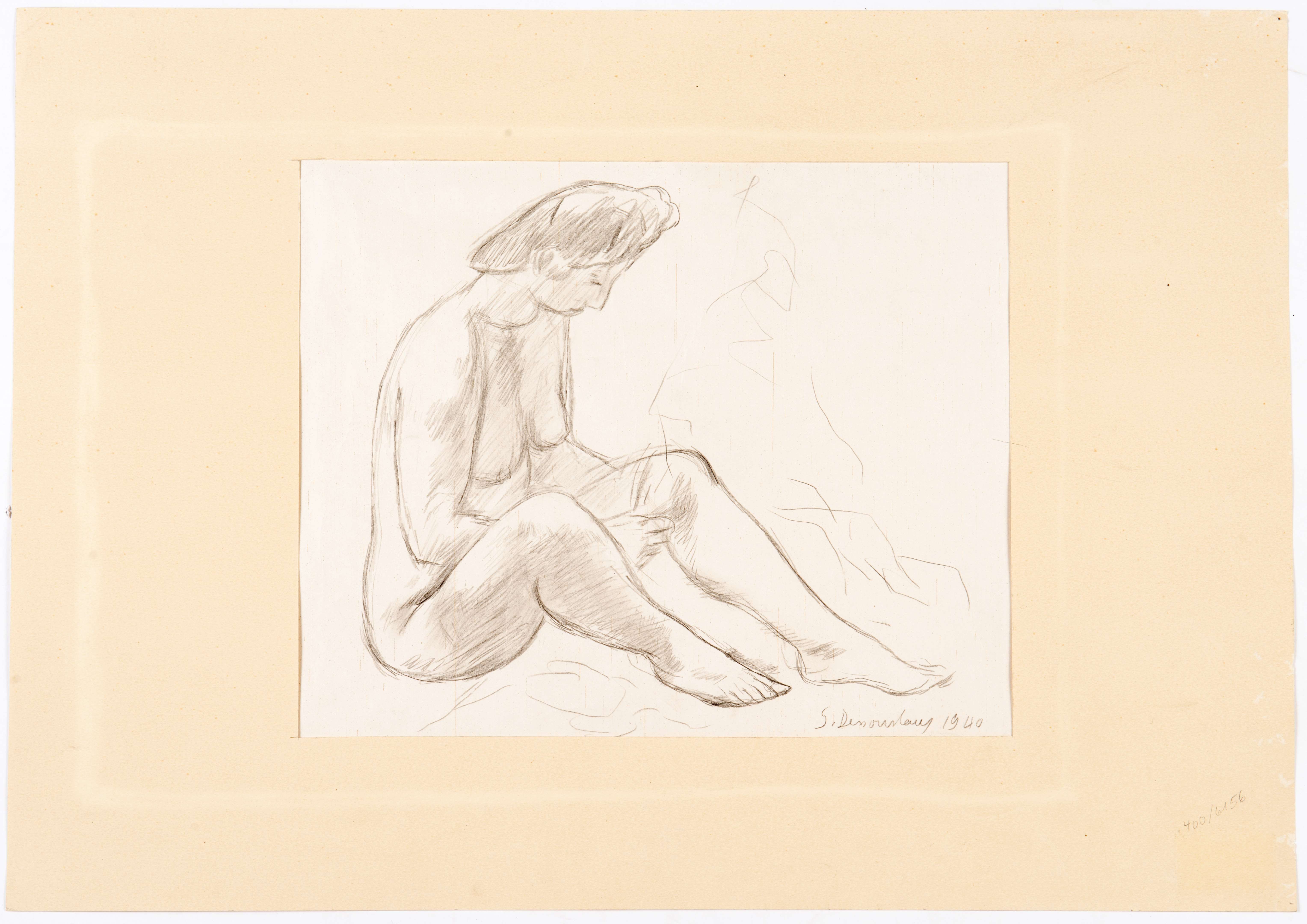 Georges DESSOUSLAVY (1898-1952) "Etude de nu assis", crayon gris sur papier sbd et daté 1940.