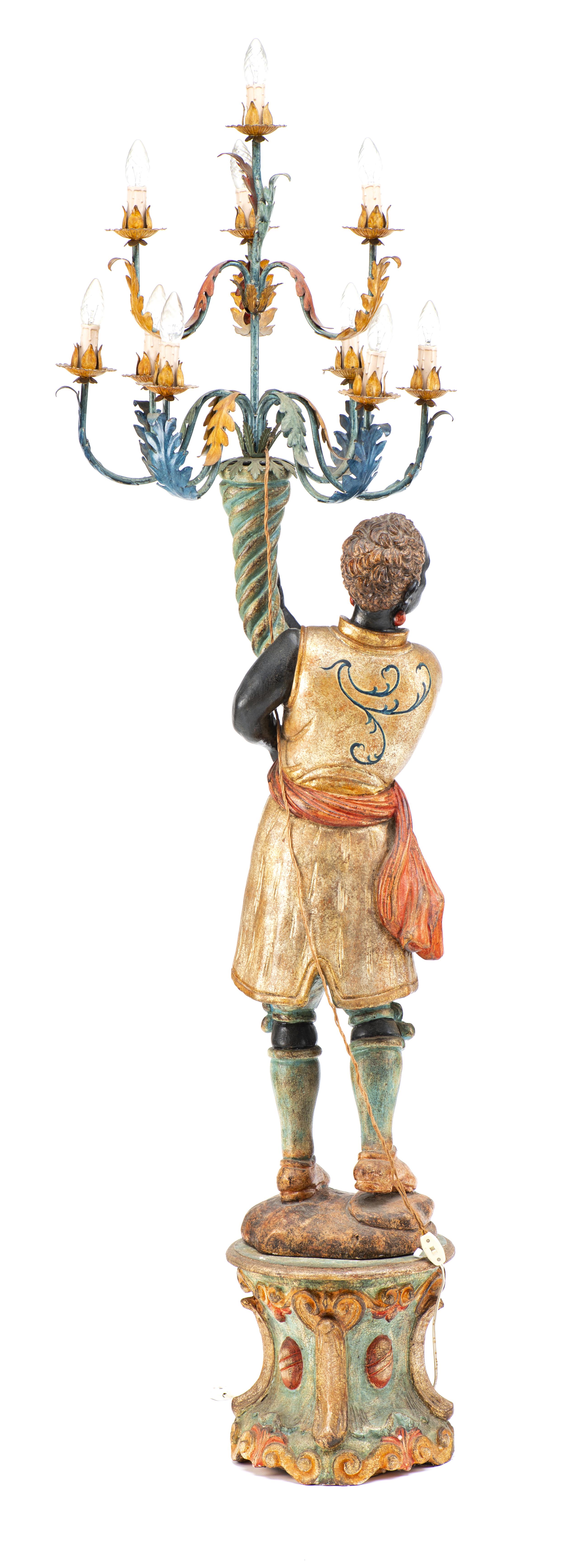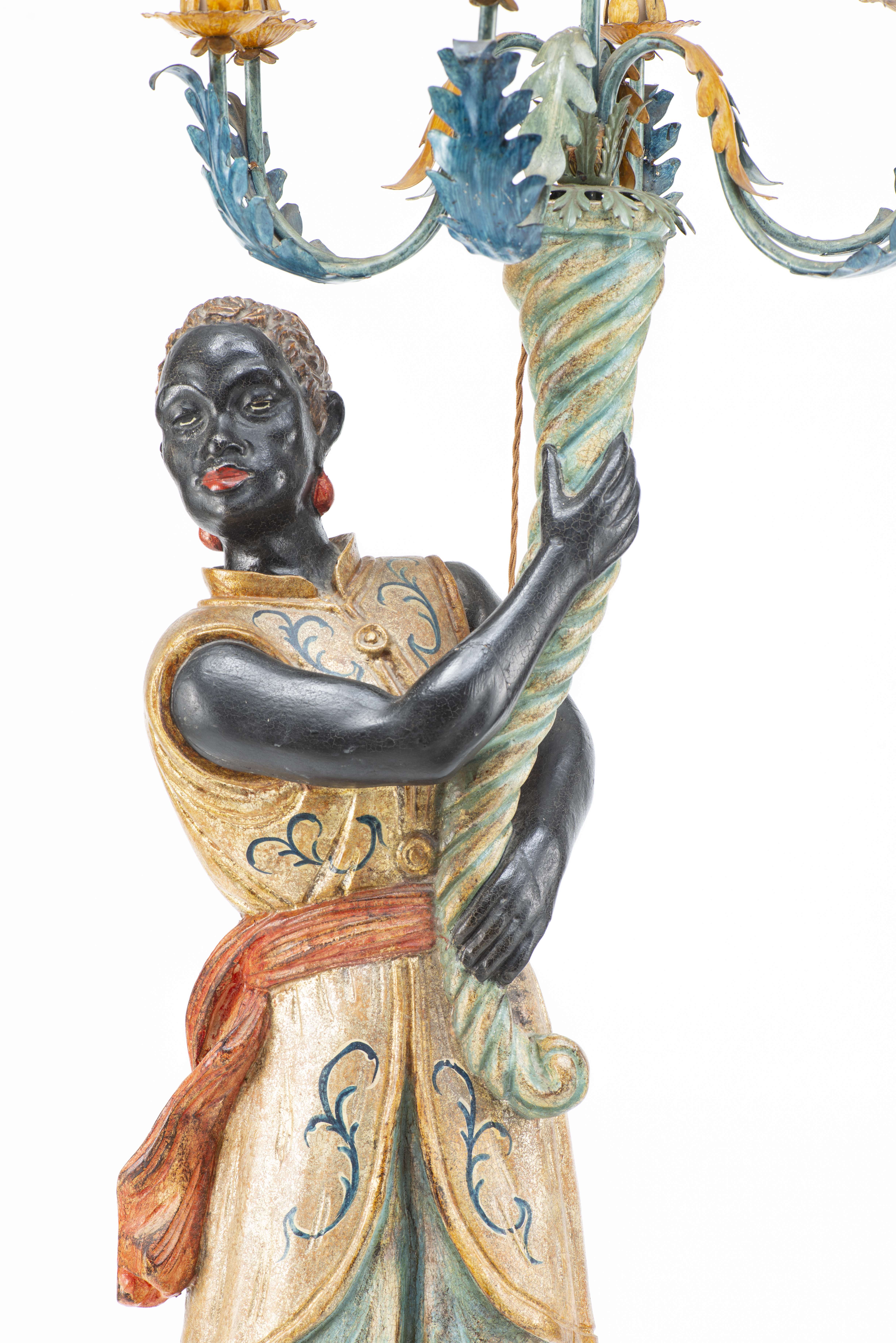 Girandole en forme de de Maure portant une corne d'abondance à 10 feux.