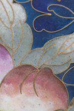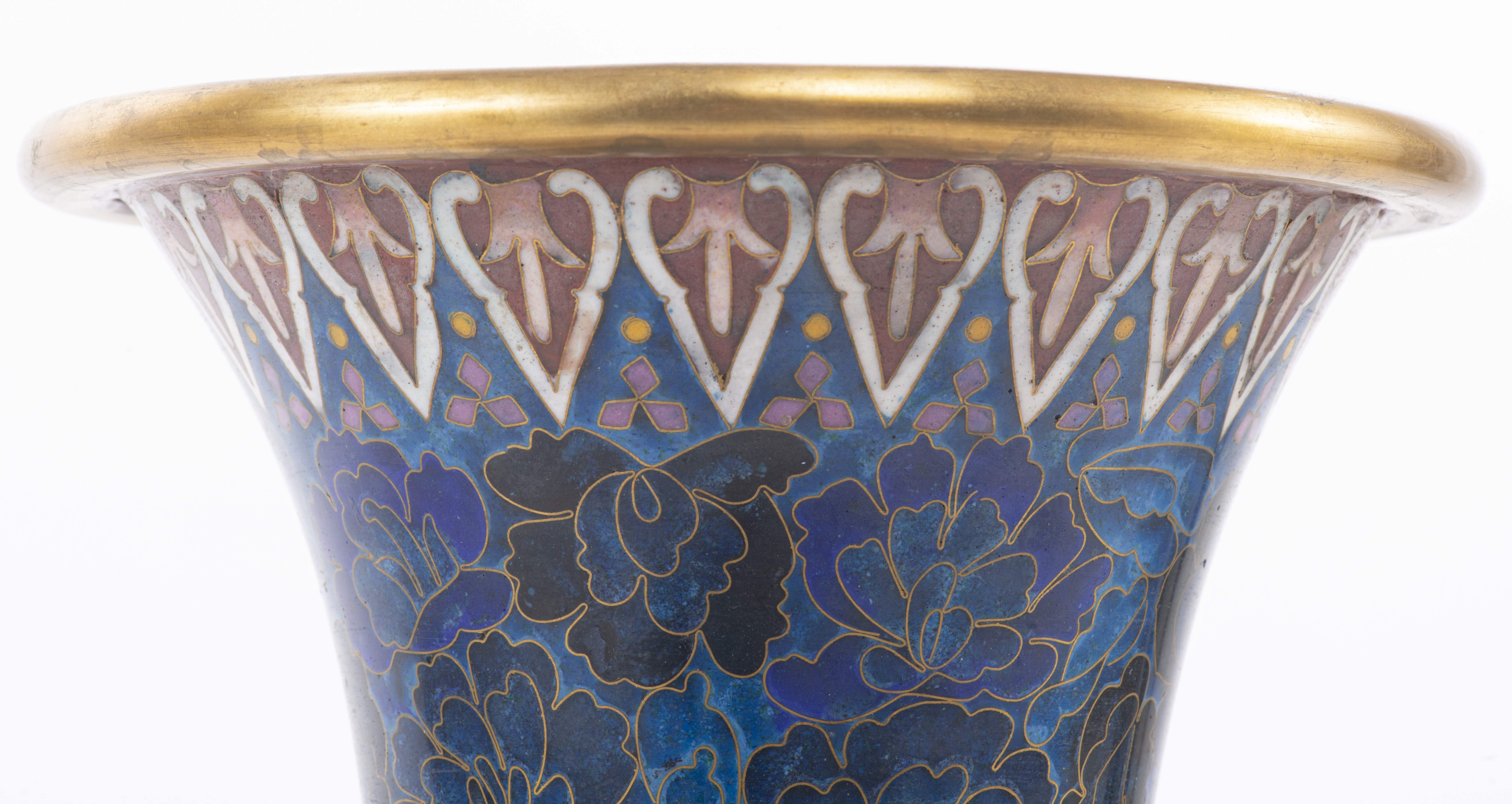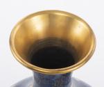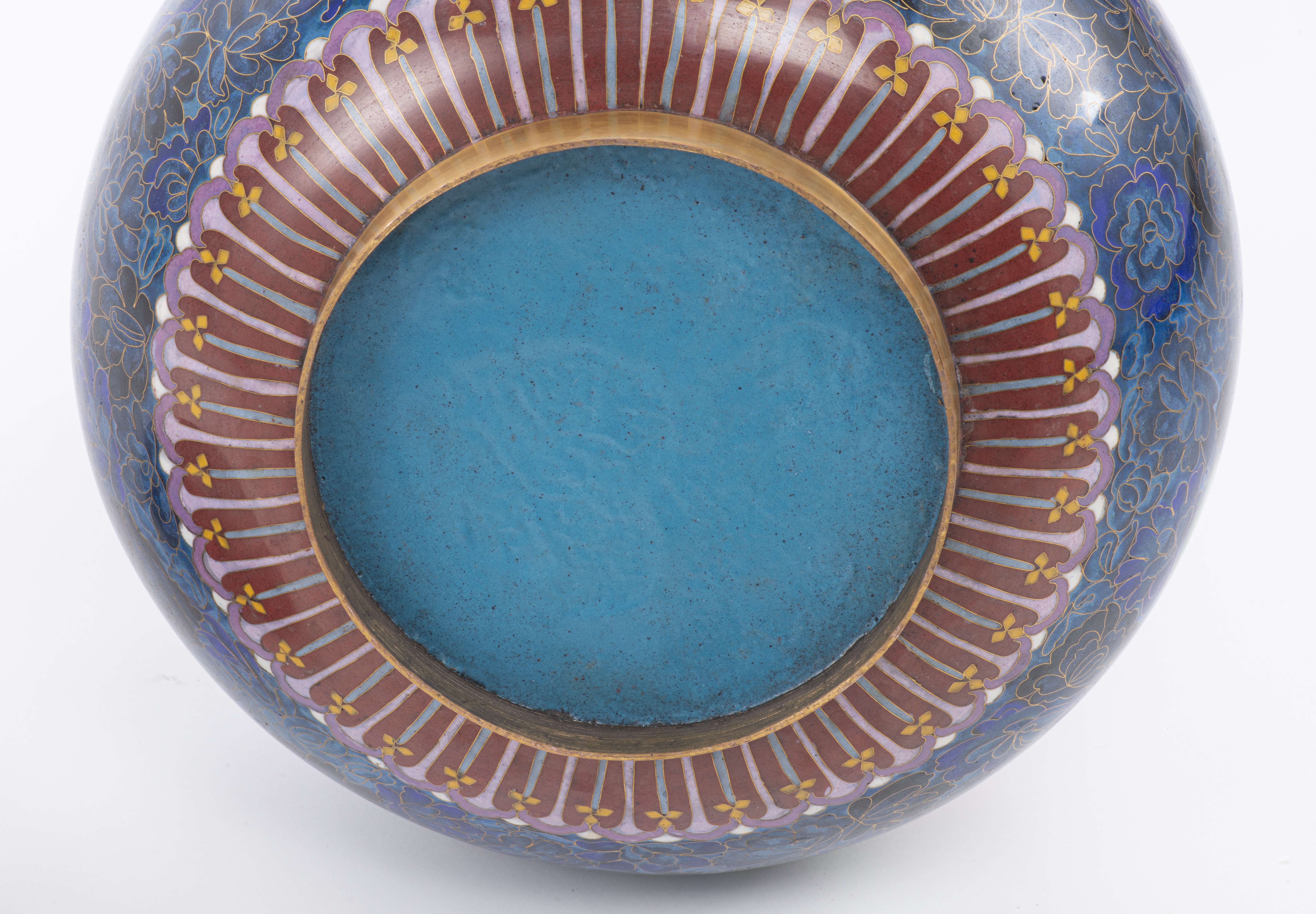 Grand vase en cloisonné sur fond bleu à décor de pivoines