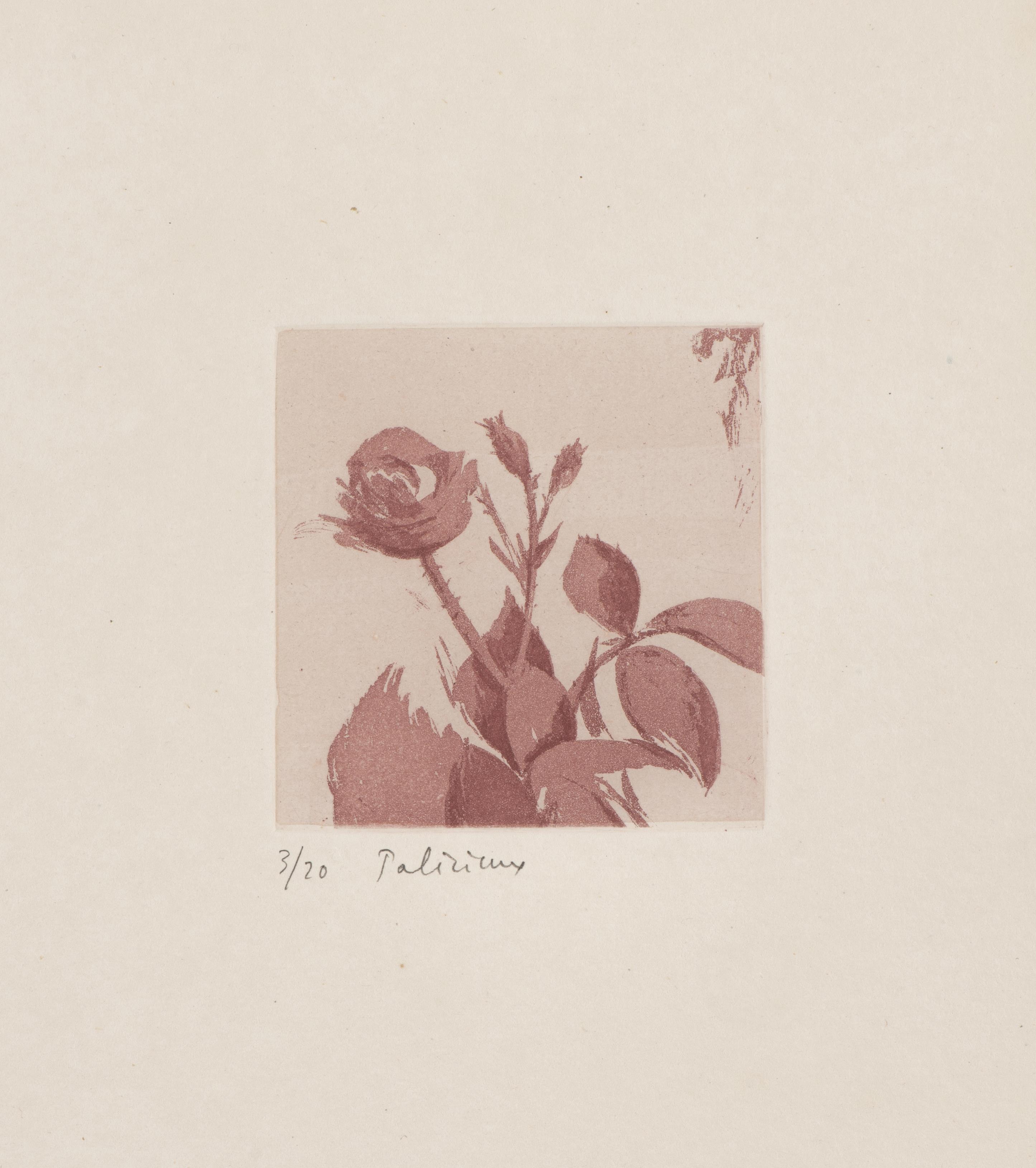 Gérard de PALEZIEUX (1919-2012), "Roses et feuilles", eau-forte sur papier, sbg et numéroté 3/20.