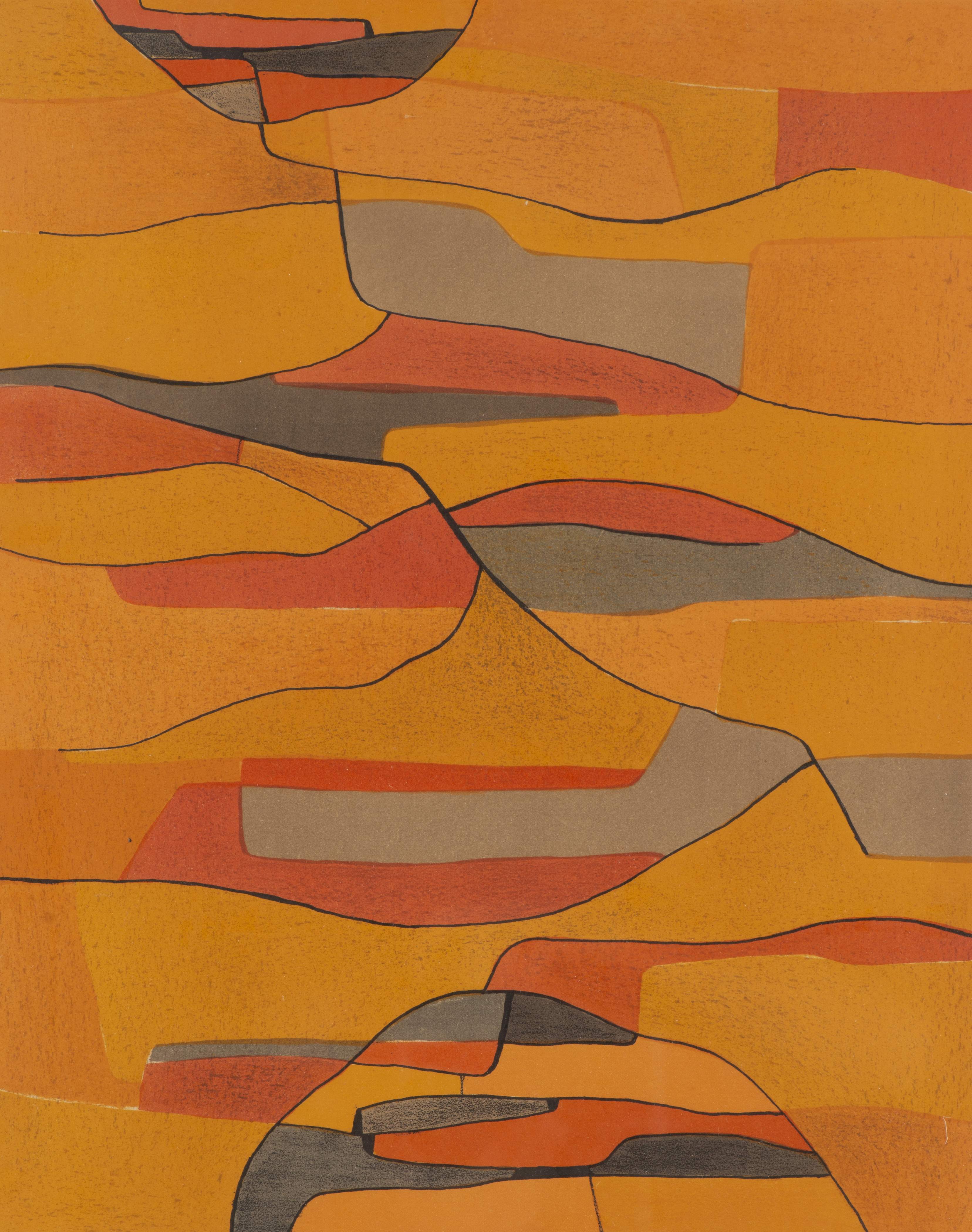 Gustave SINGIER (1909-1984) "Collines" lithographie couleurs, sbd et daté 1958. Num 155/175 en bg.