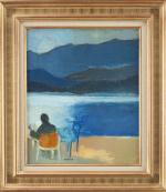 Guy BARDONE (1927-2015) "Le liseur - Karpathos", huile sur toile, signé en bas à gauche et daté au dos 1982.