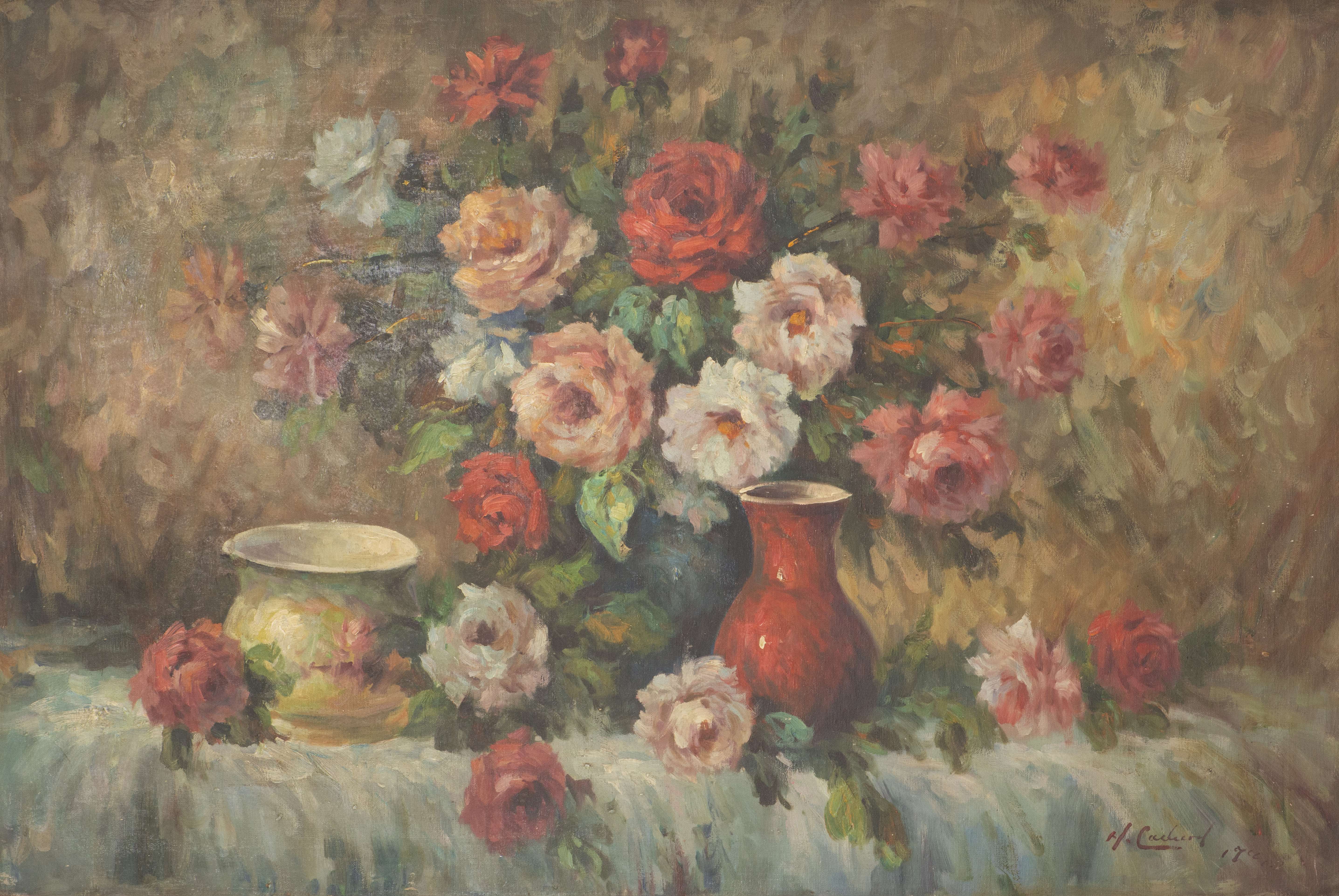 H. CACHARD (XXe) "Roses", huile sur toile
