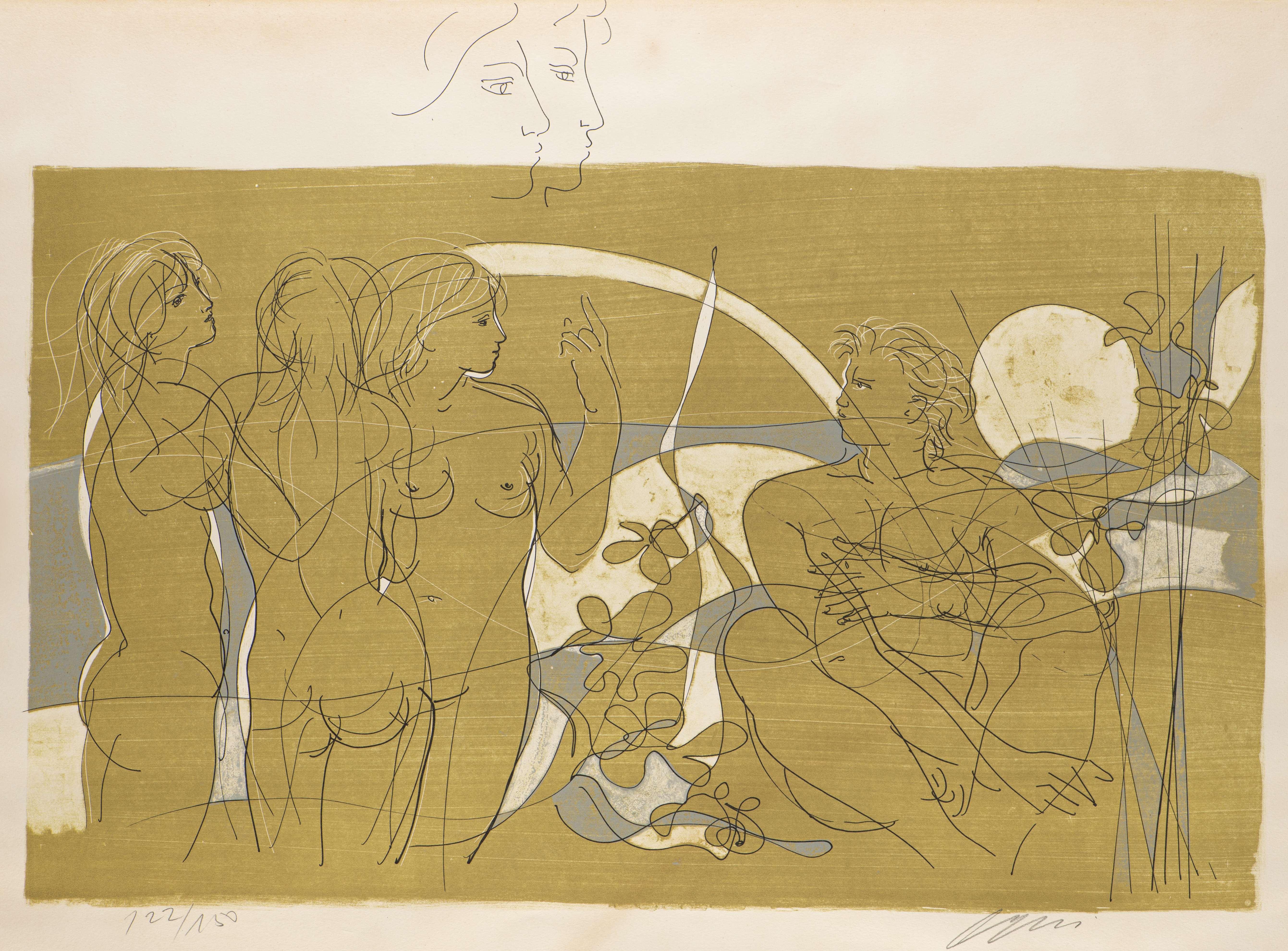 Hans ERNI (1909-2015), "Trois femmes et un homme", Lithographie