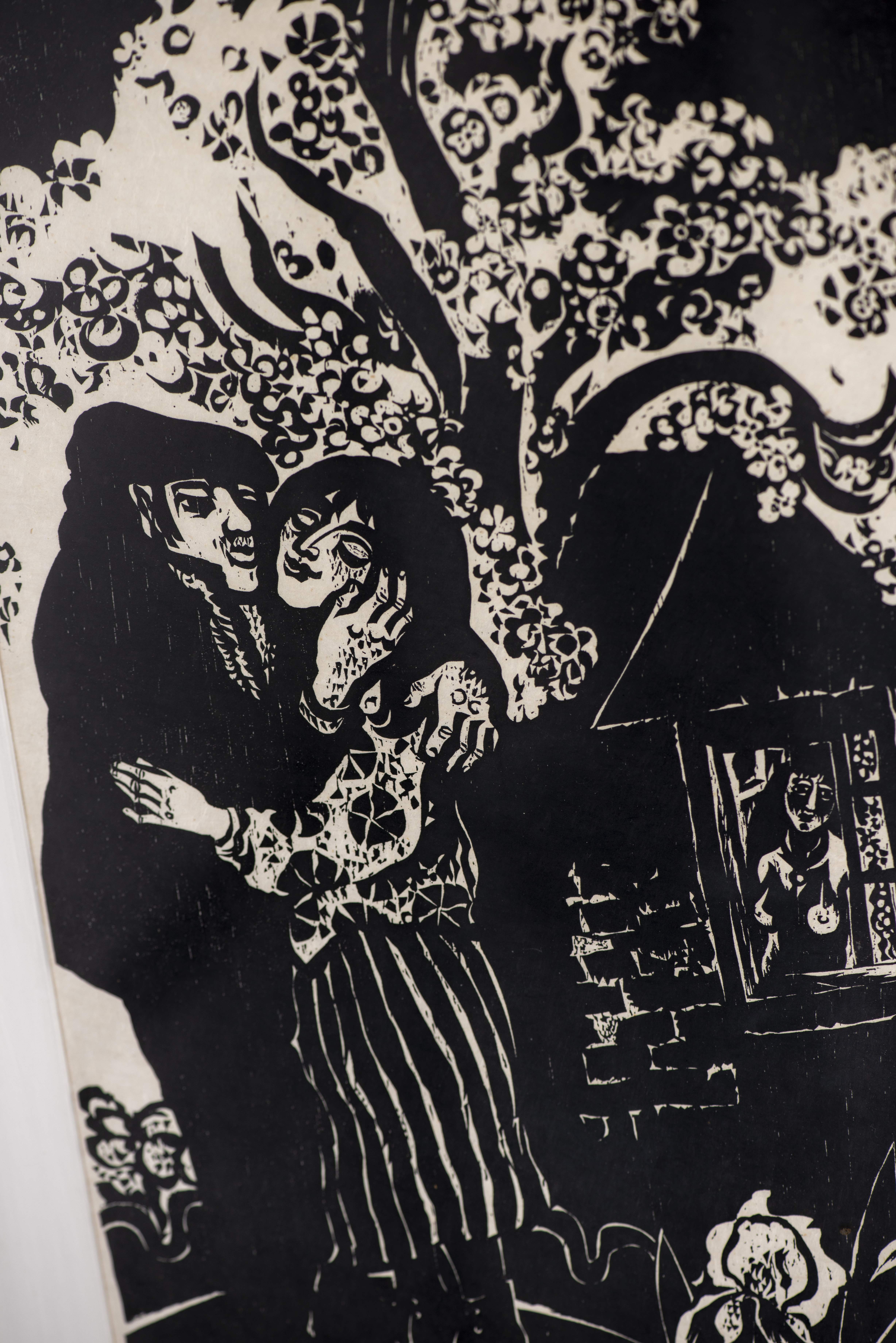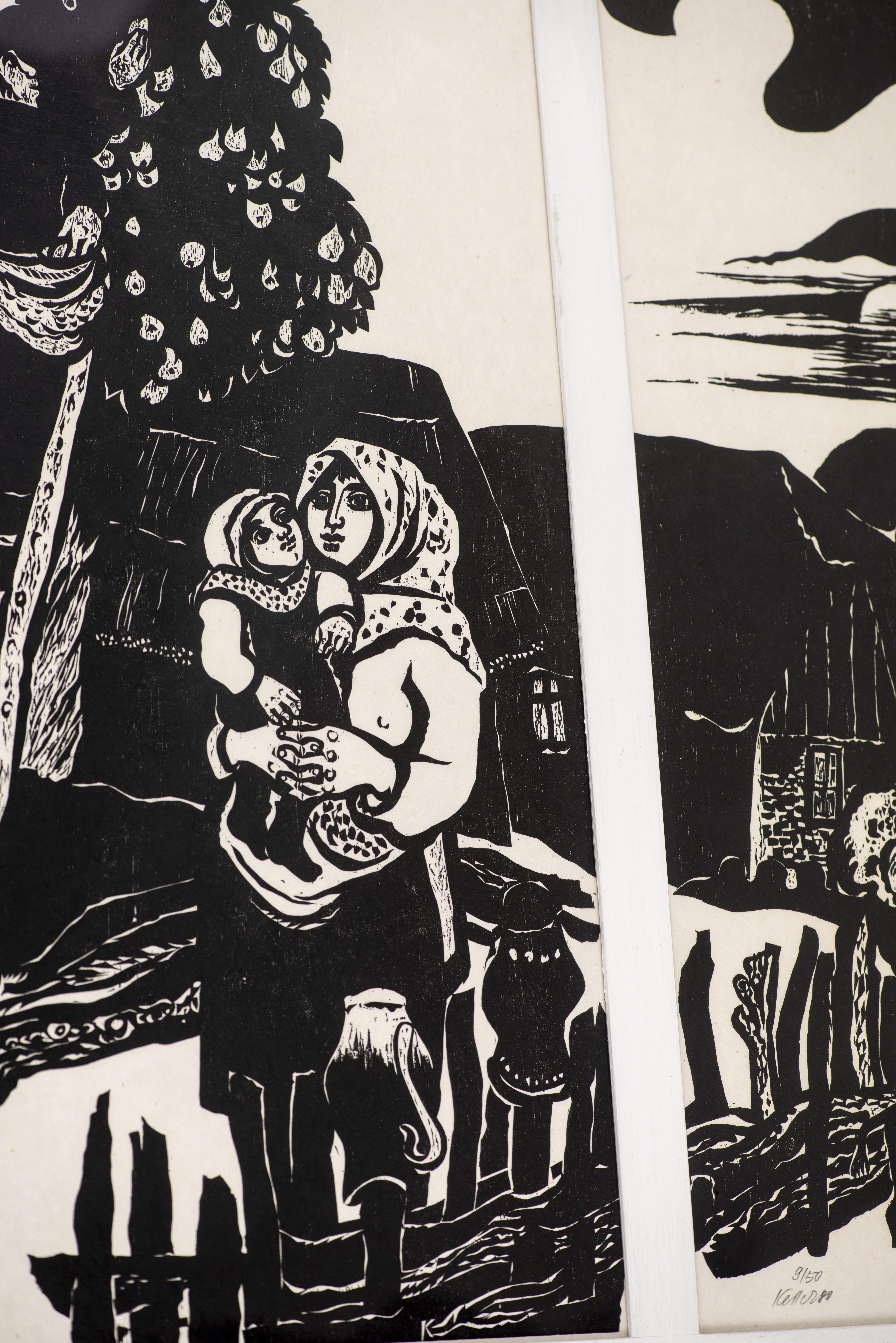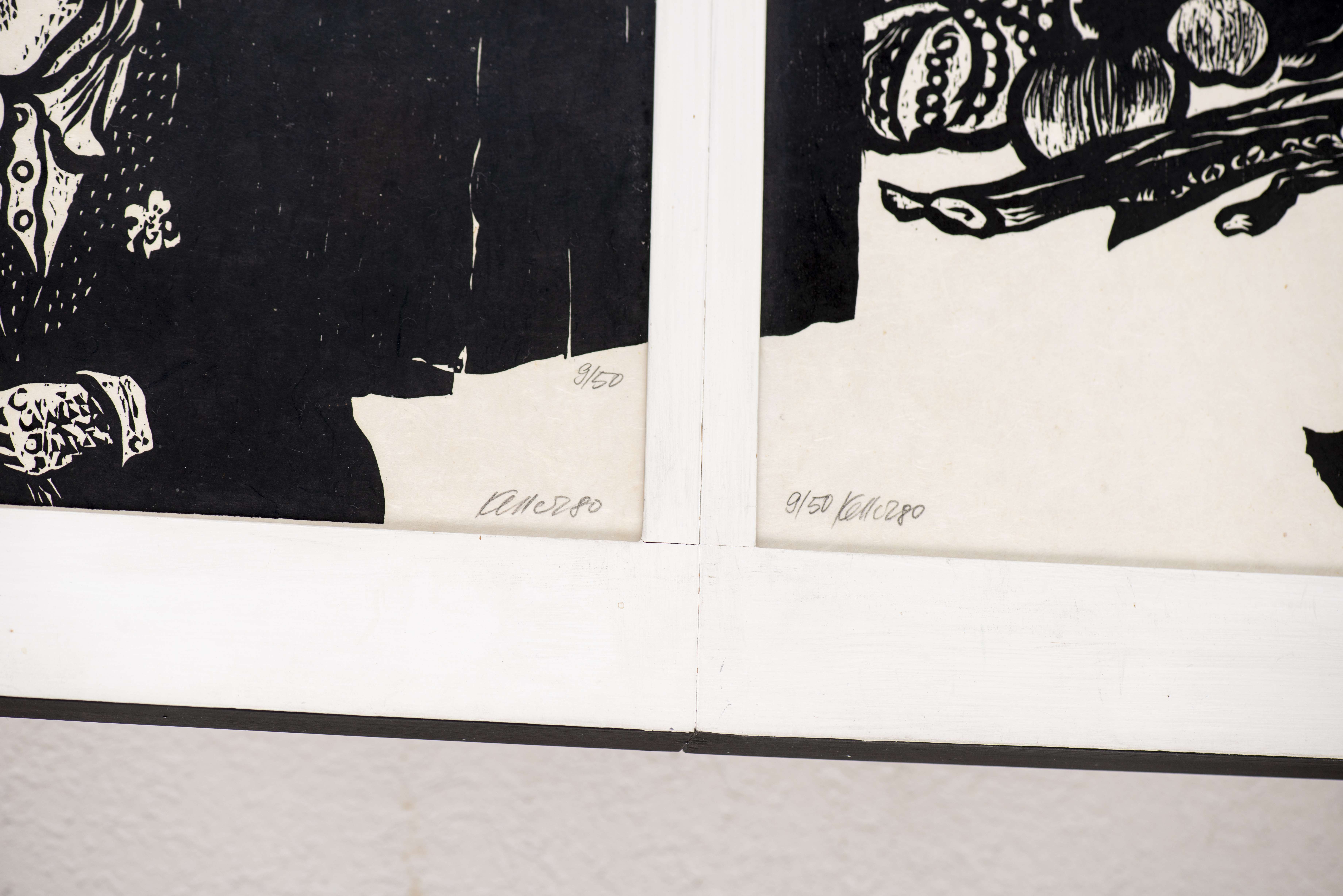 Xylographie en noir sur papier de riz, sbg et daté 80 num 9/50.